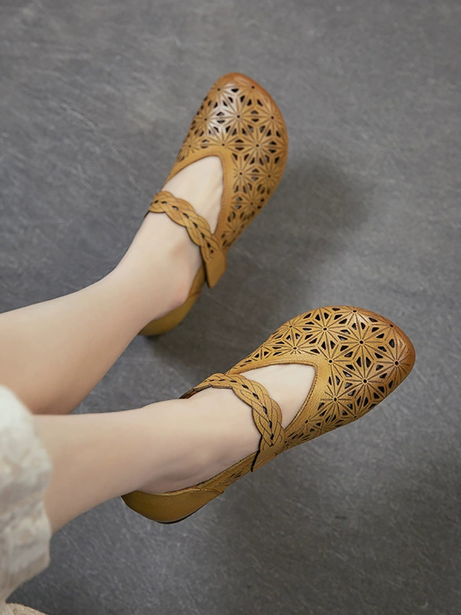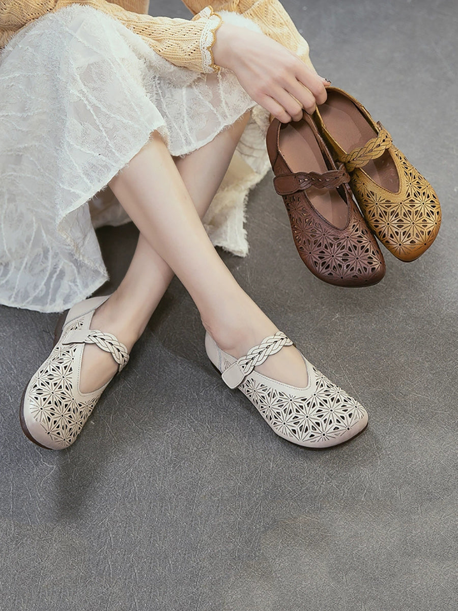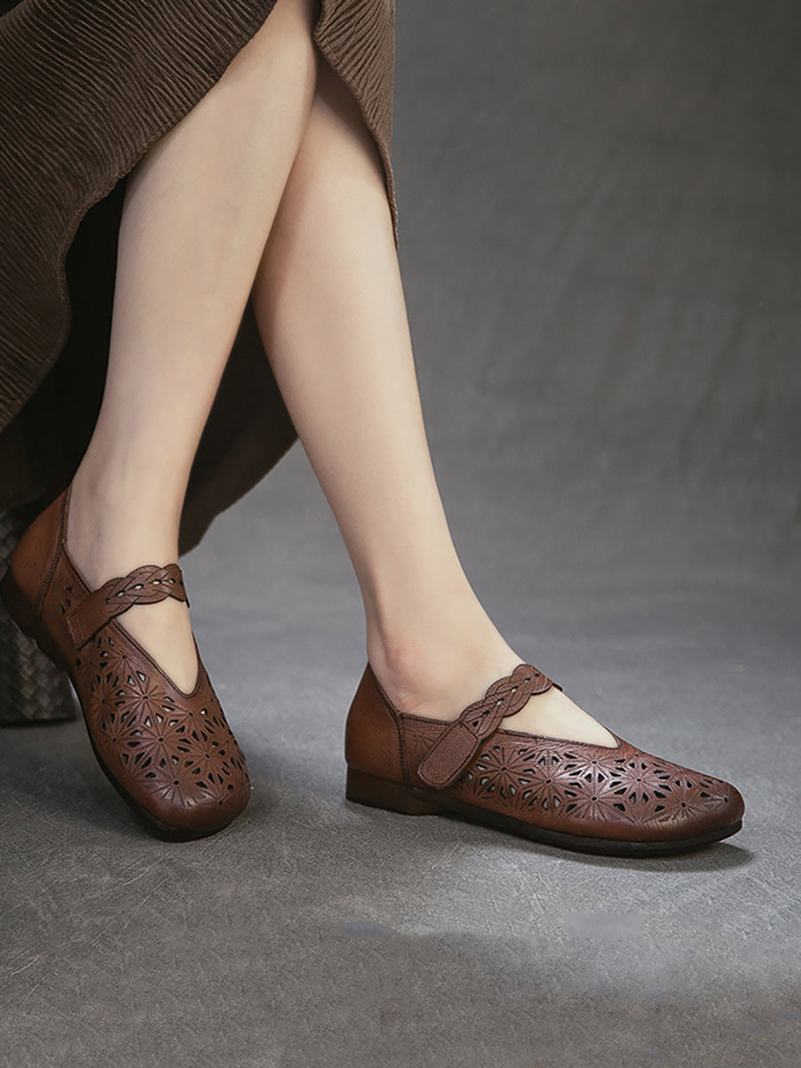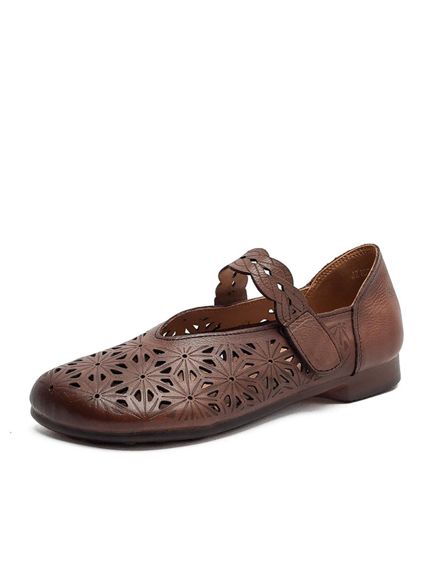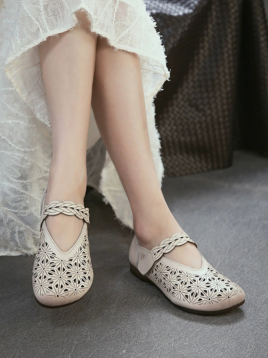 Kvinders sandaler i ægte læder med udhulede lavhælede sandaler