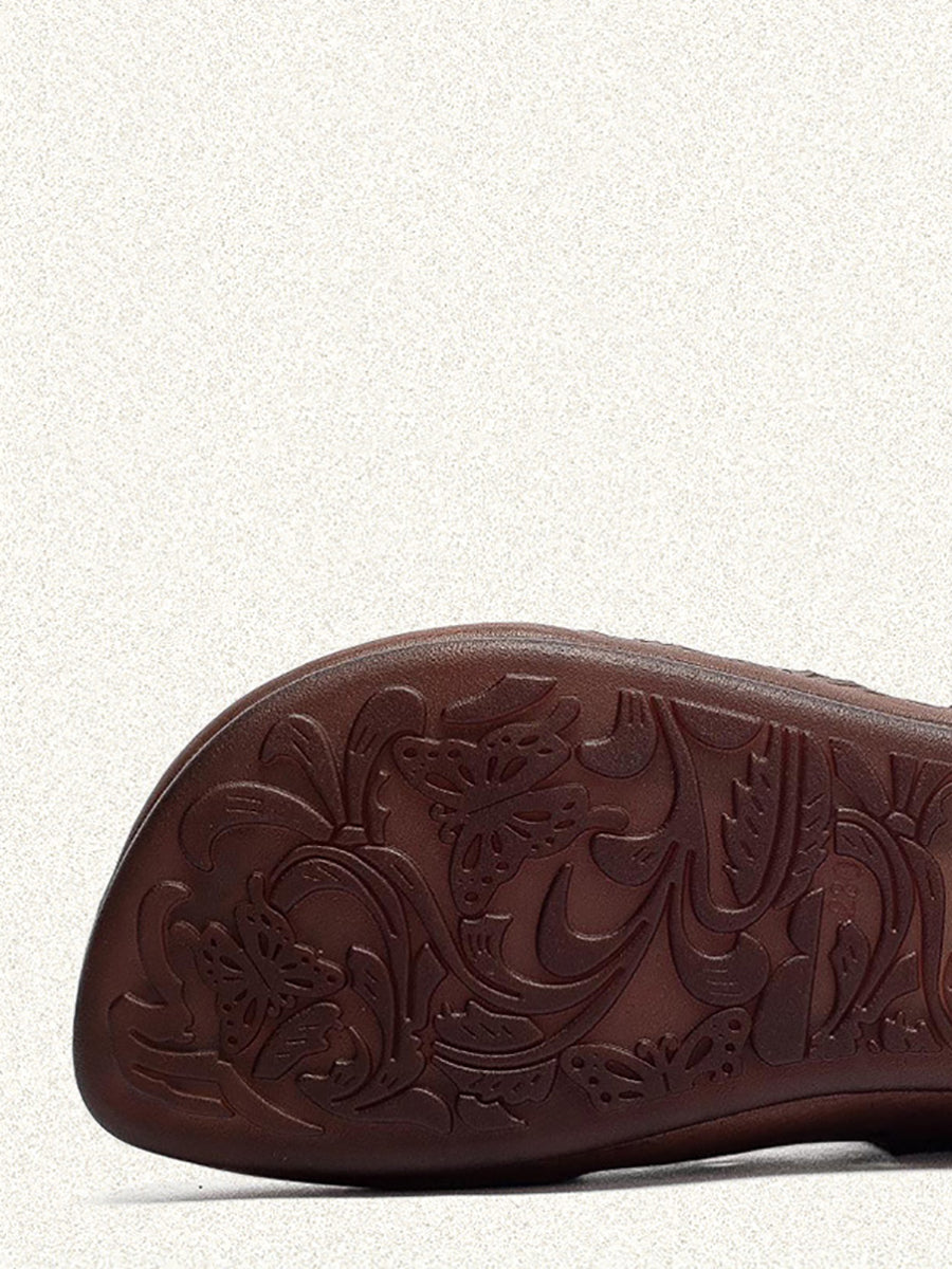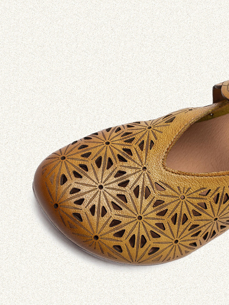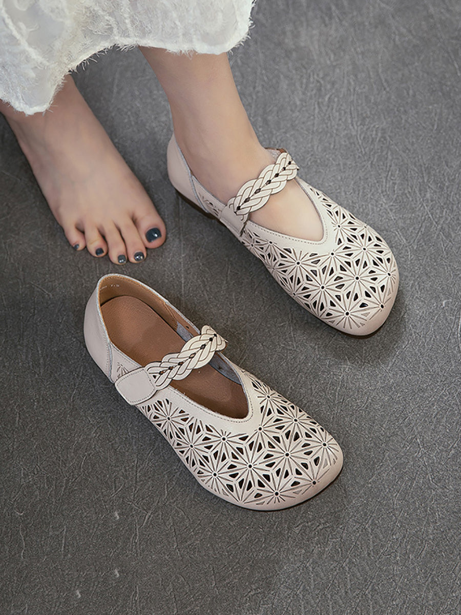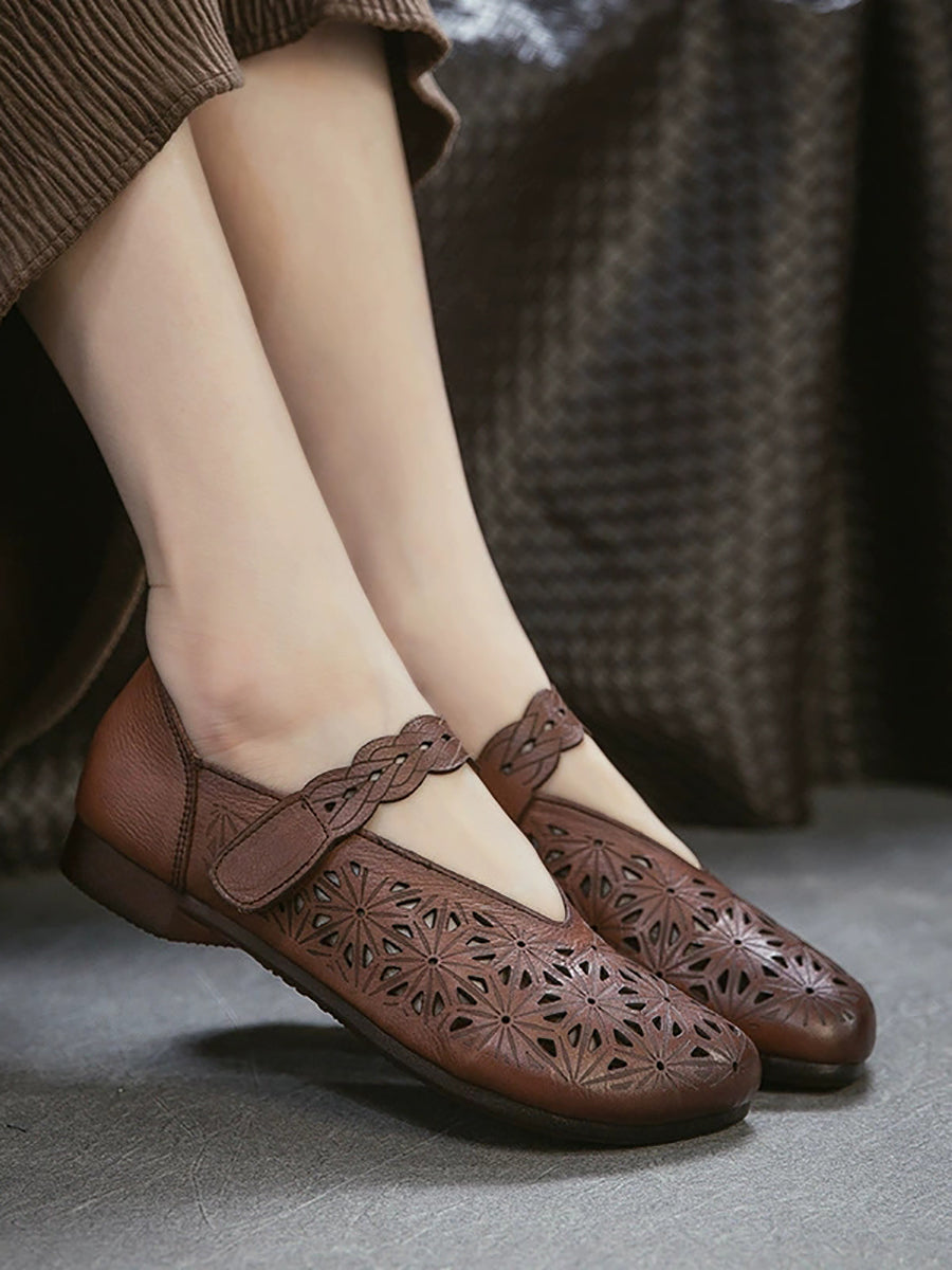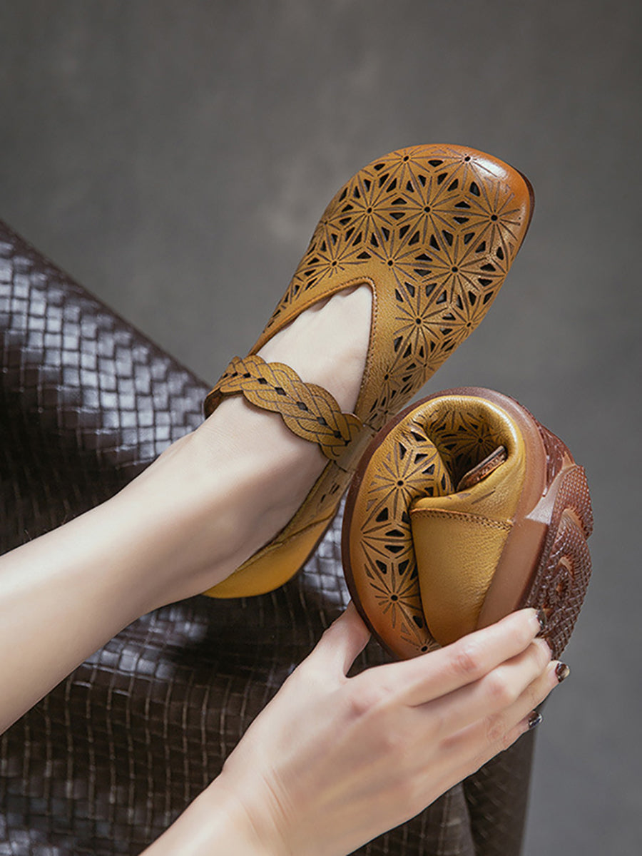 Kvinders sandaler i ægte læder med udhulede lavhælede sandaler