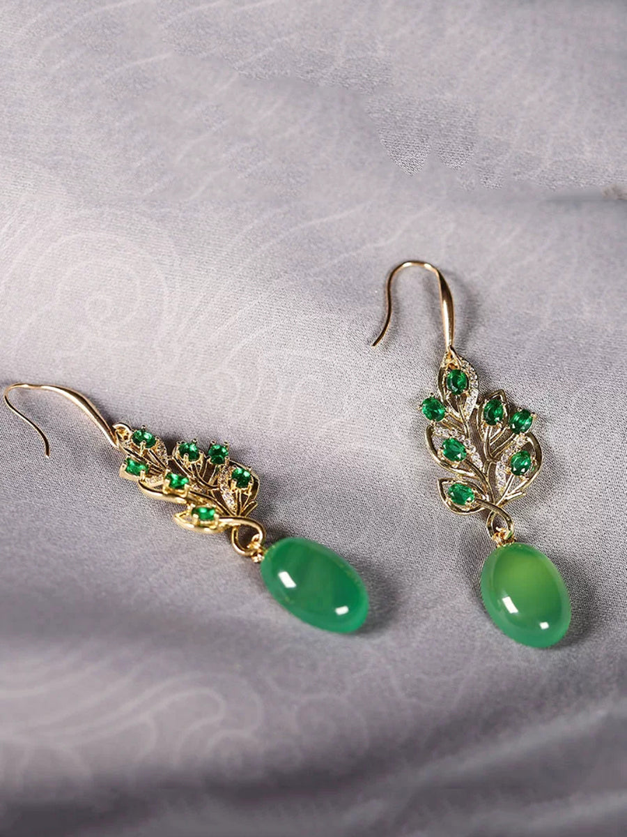 Øreringe i 925 sølv med grønne agater til kvinder