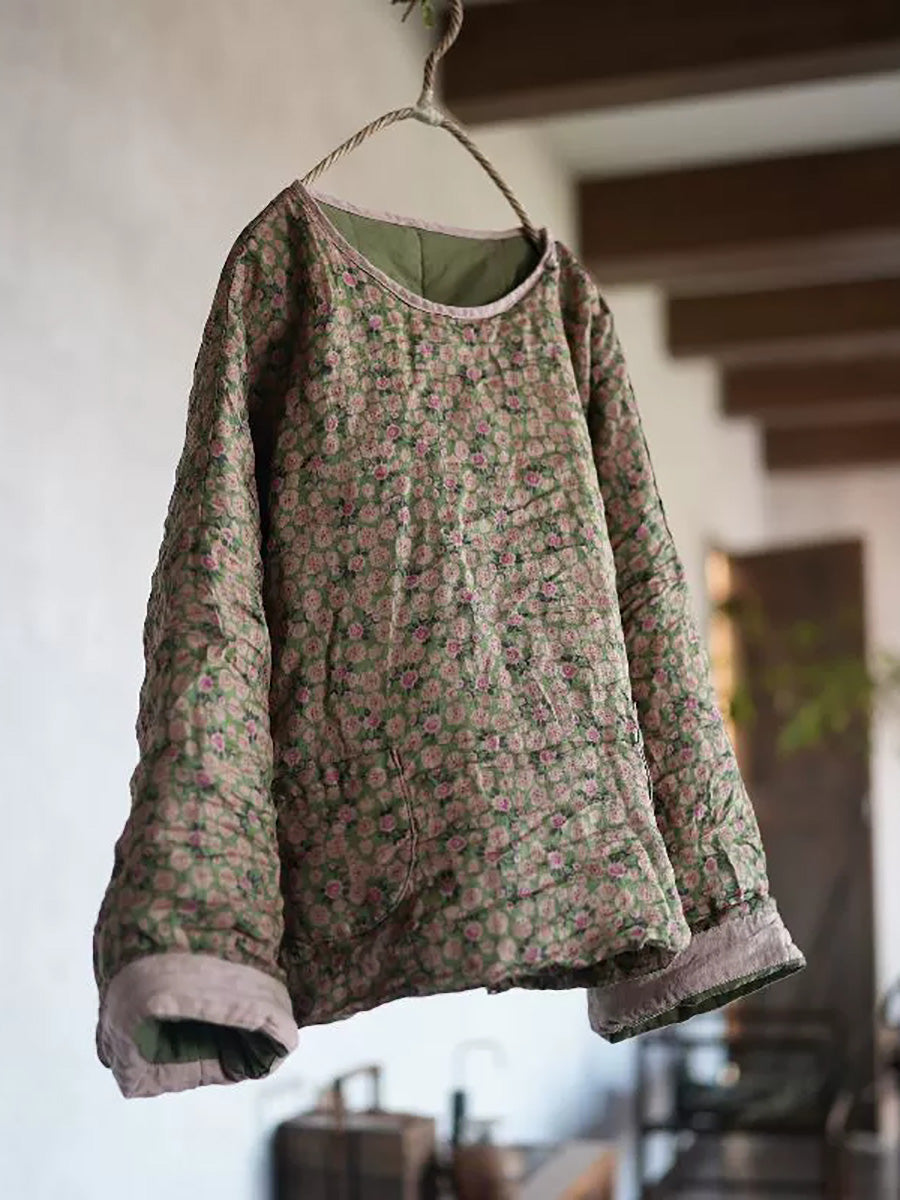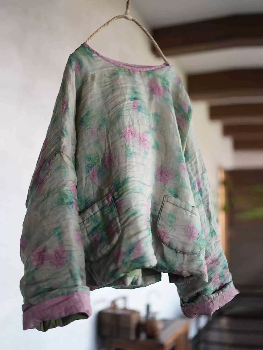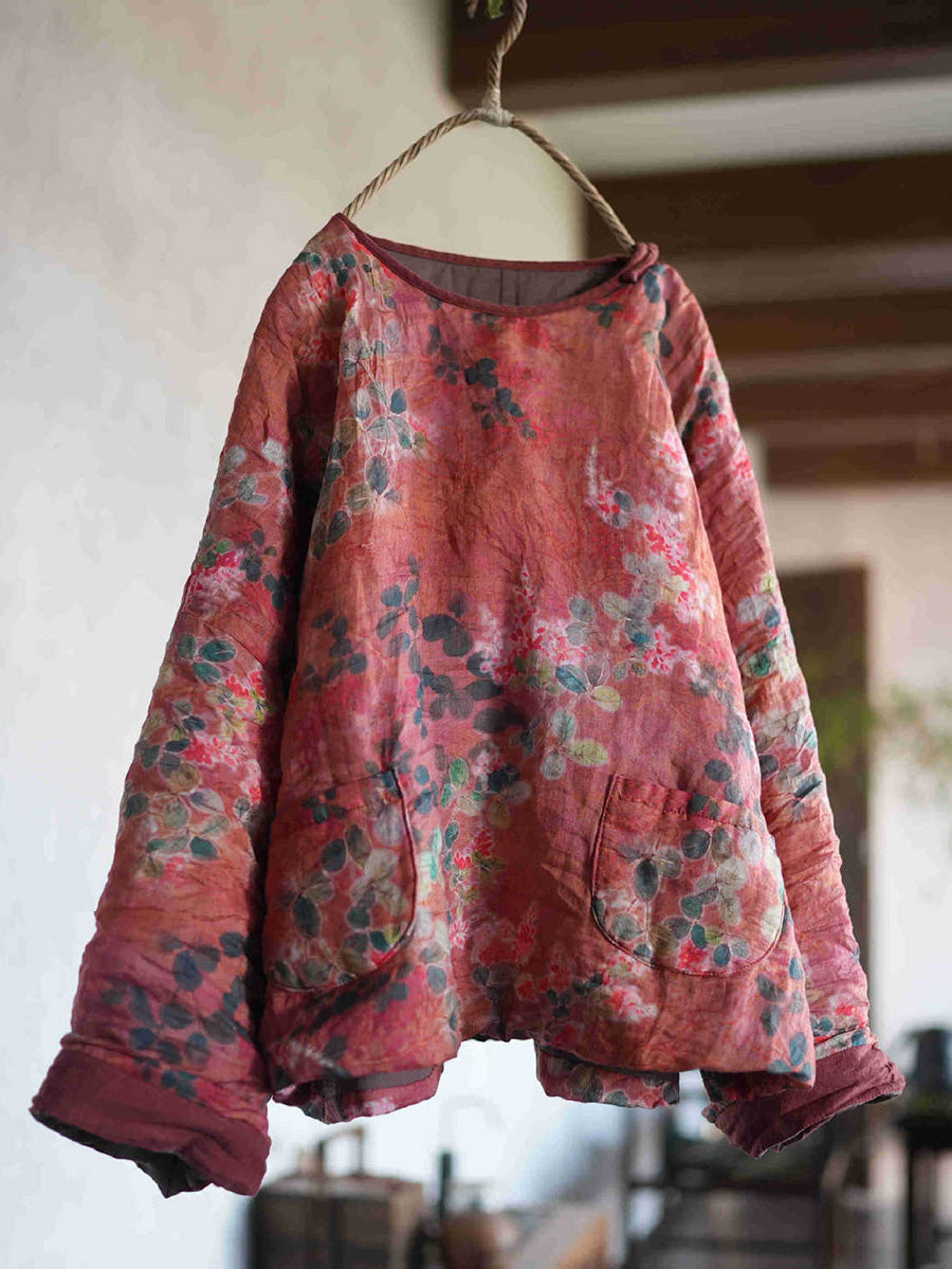Kvinder Retro Blomster Ramie O-hals Polstret Frakke