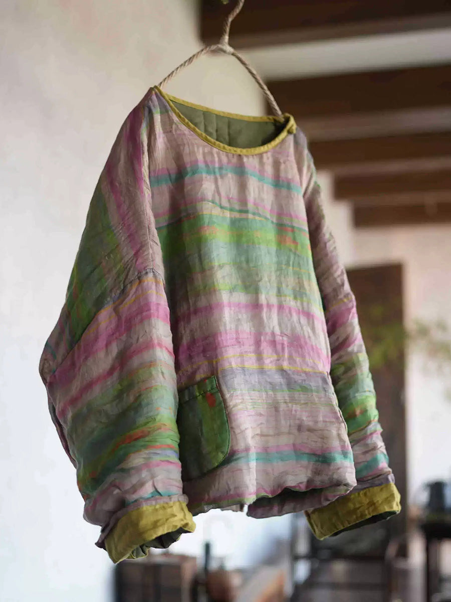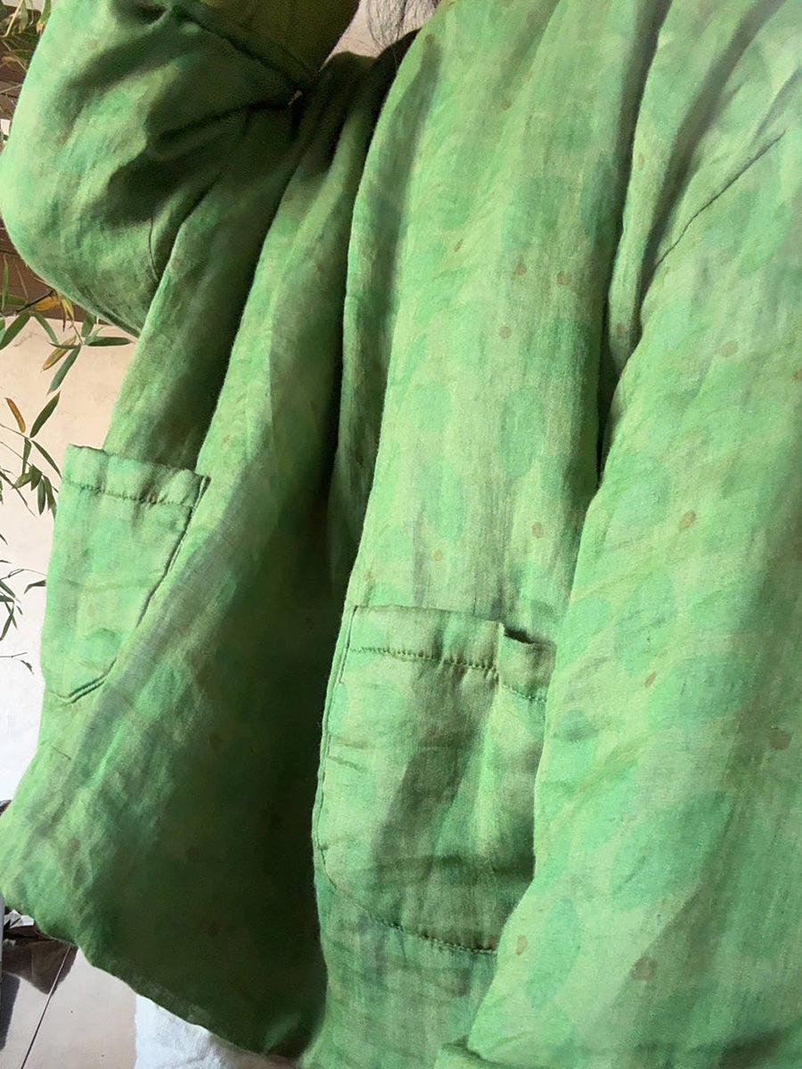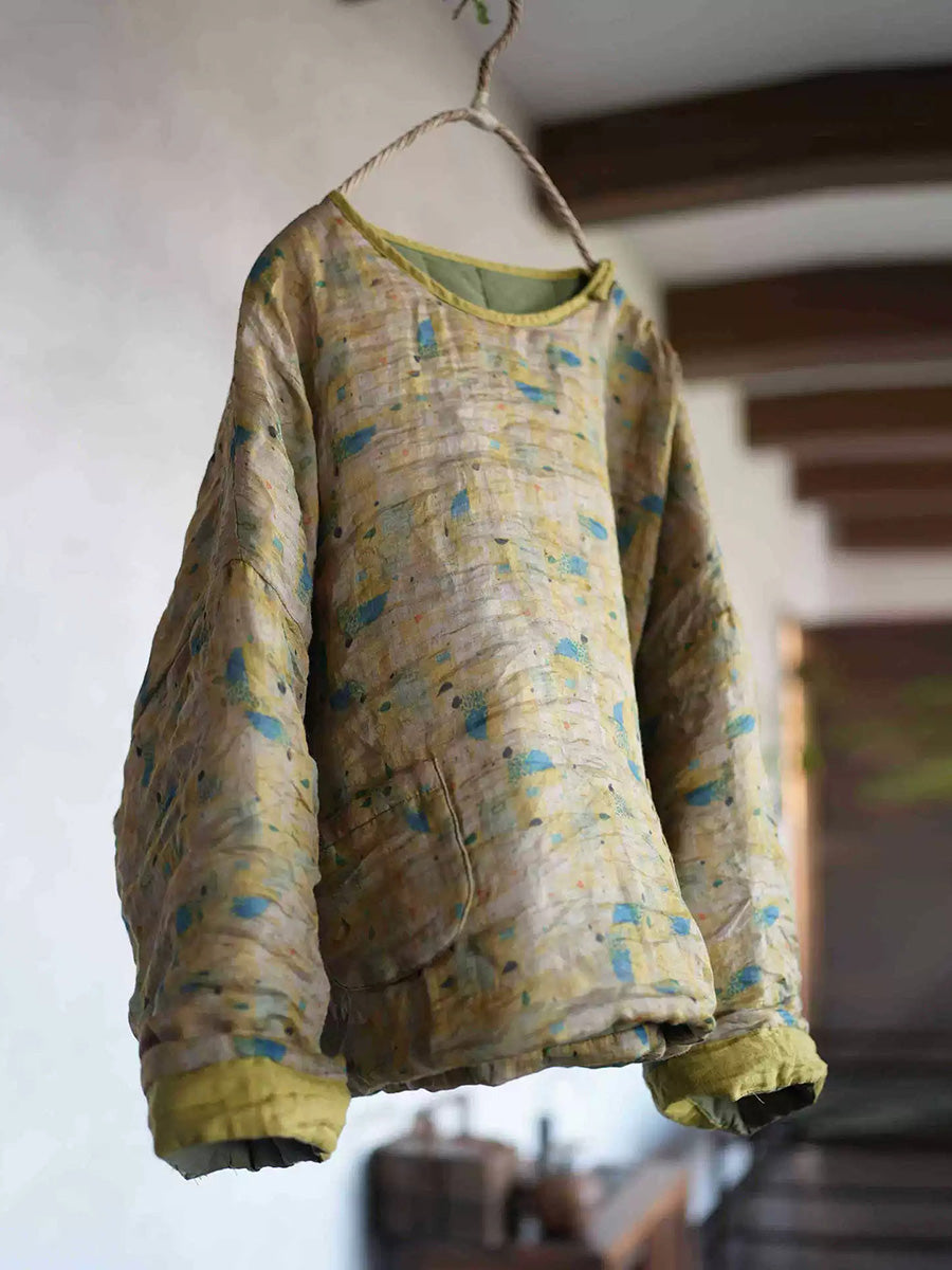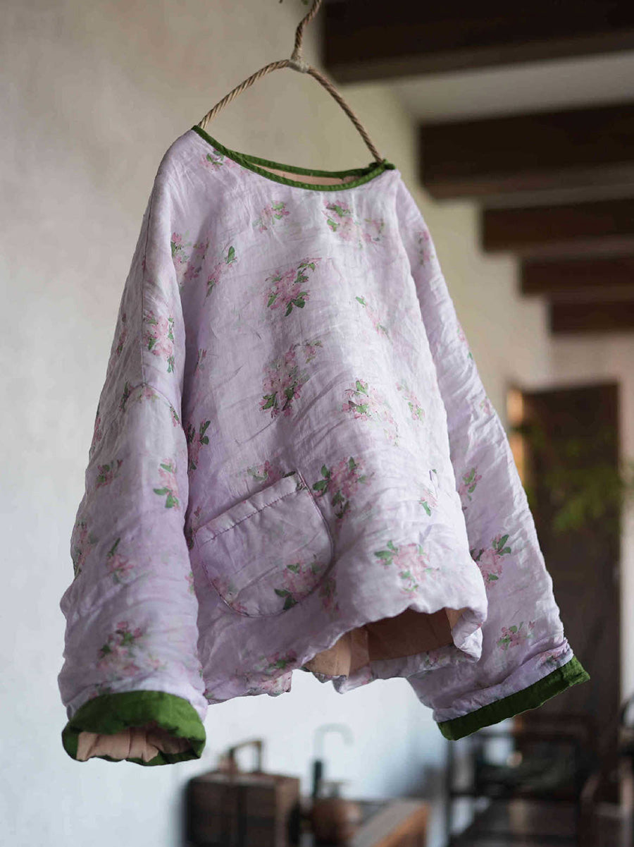 Kvinder Retro Blomster Ramie O-hals Polstret Frakke