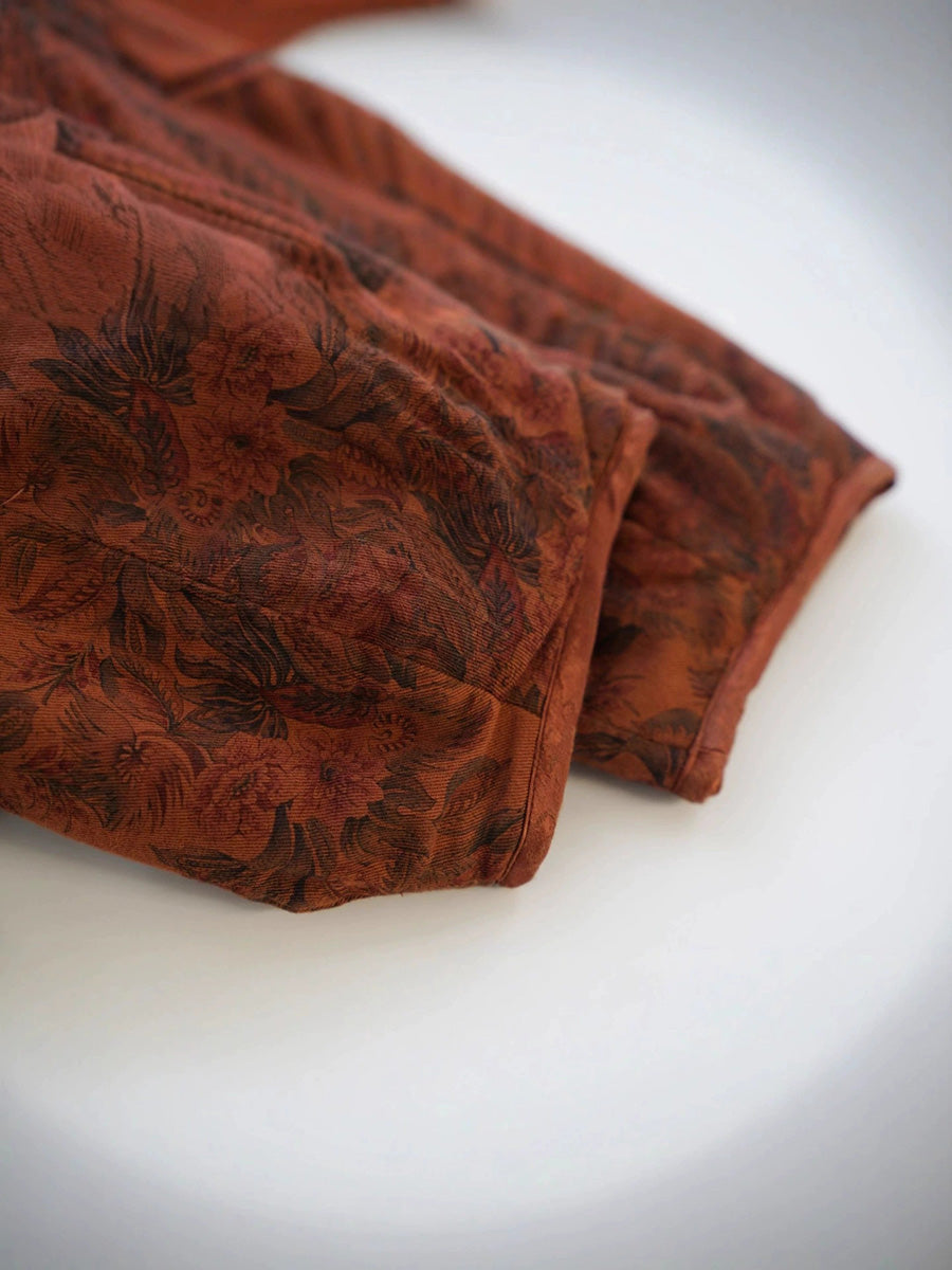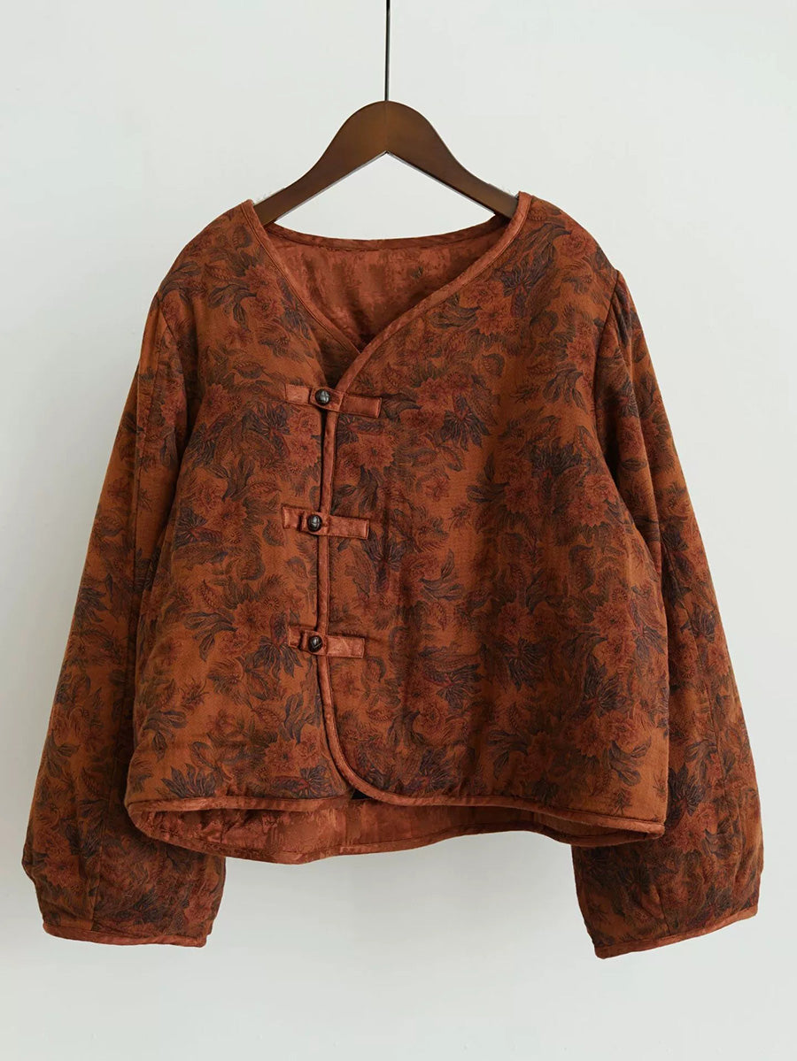 Kvinder Retro Blomster 100% Bomuld V-hals Polstret Frakke