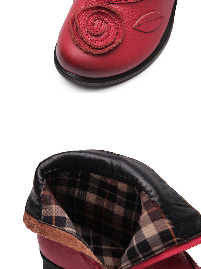 Kvinder Retro Flower Læder Solid Mid-Heel Støvler