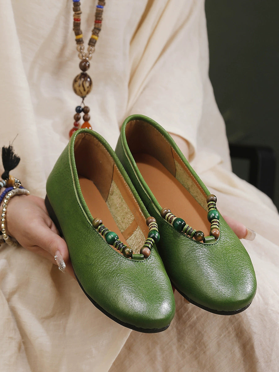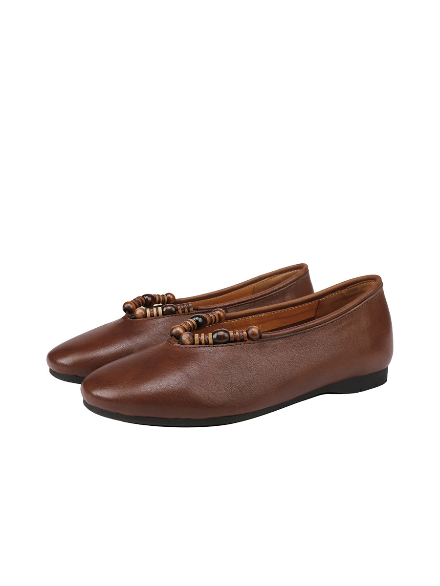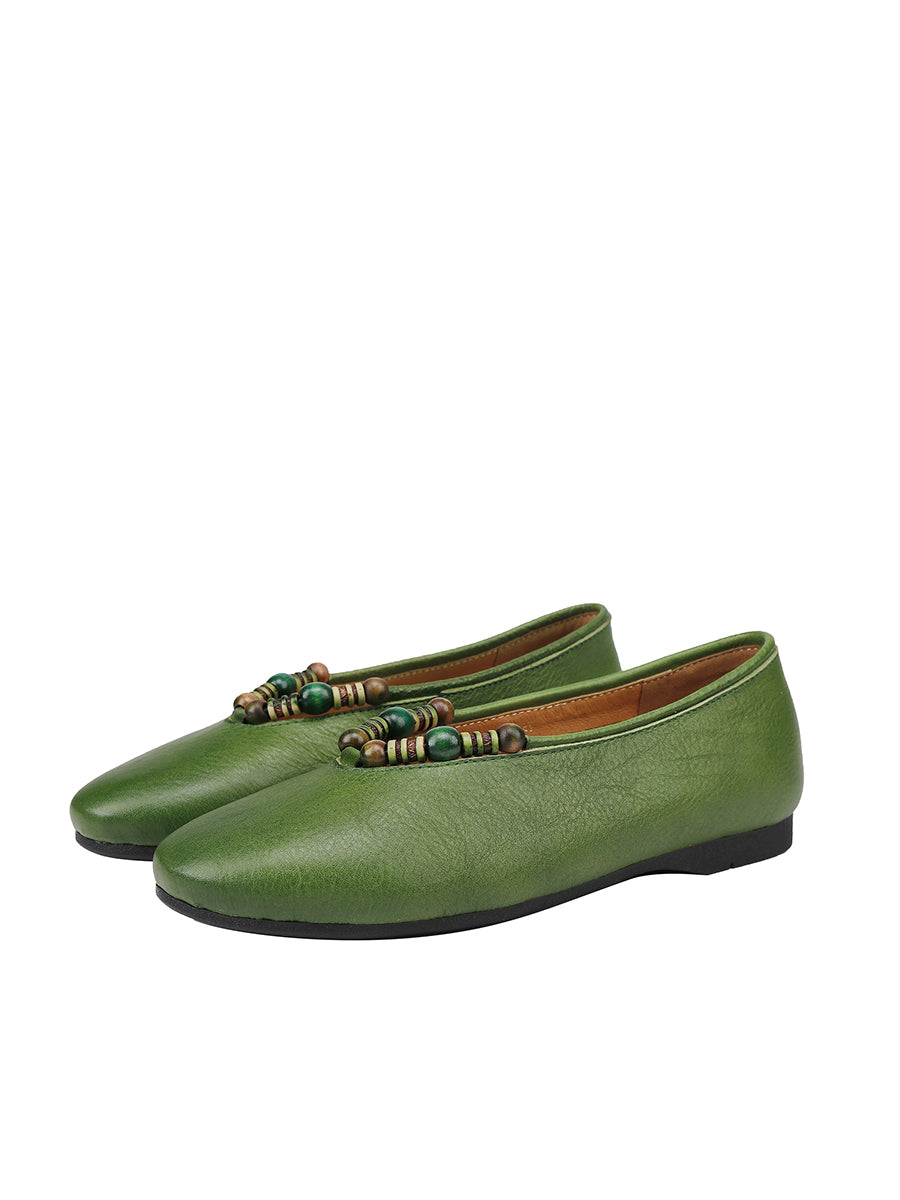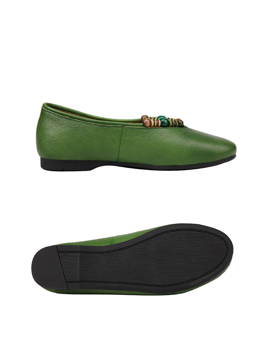 Kvinder Retro Ægte Læder Perler Flade Sko