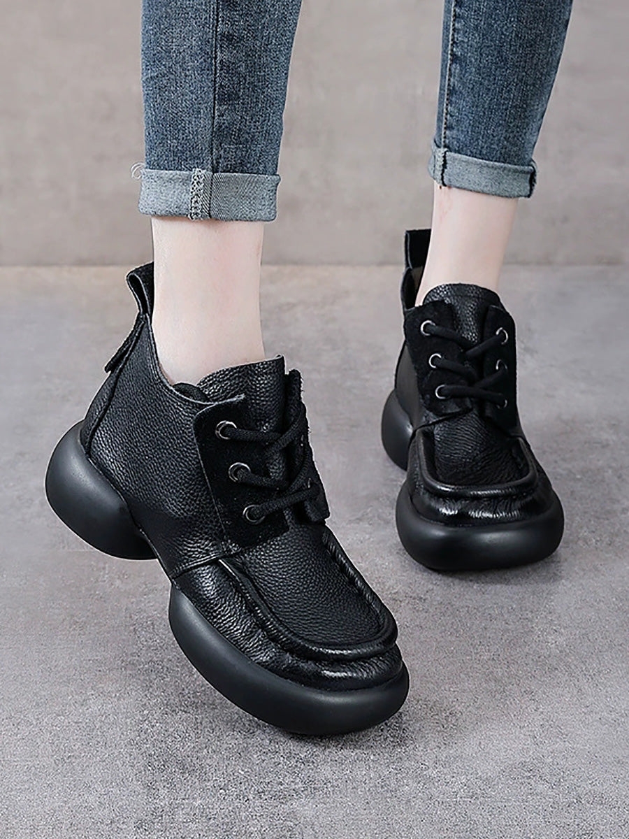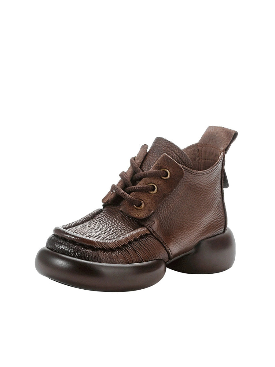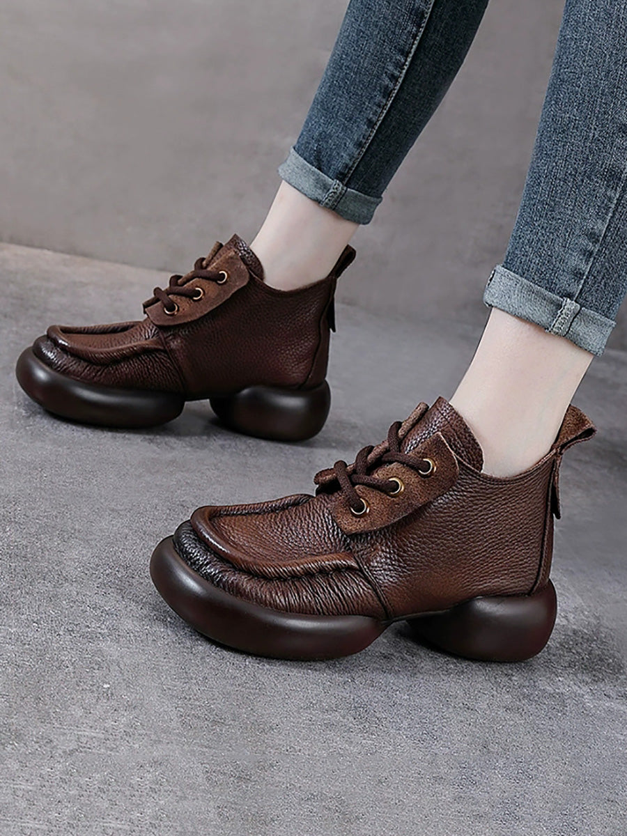 Kvinder Retro Ægte Læder Platform Ankelstøvler