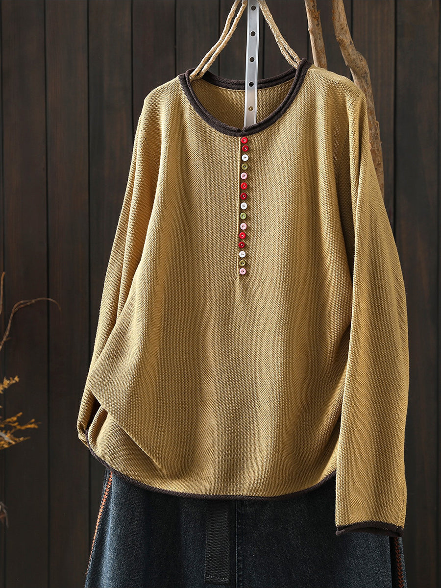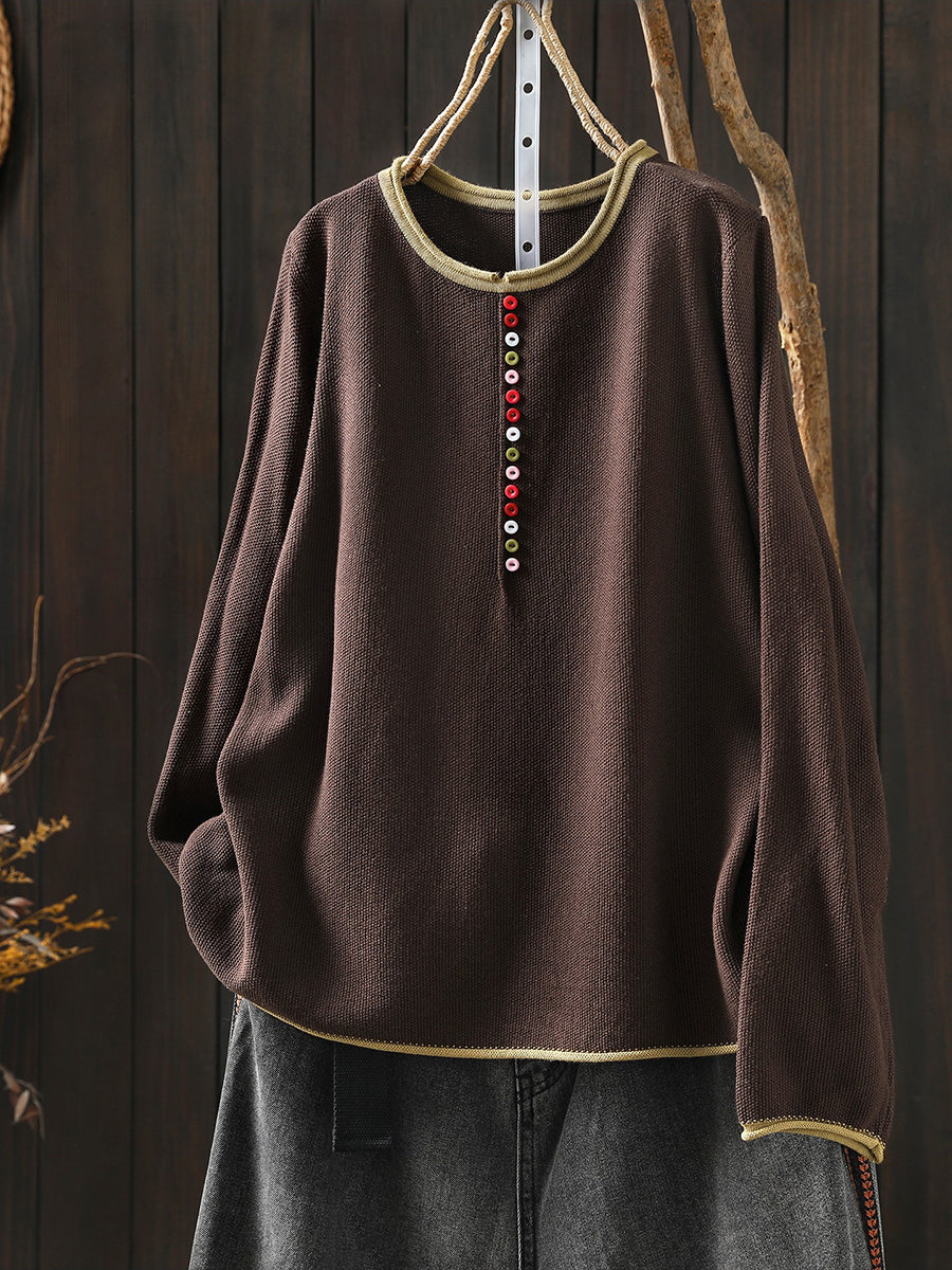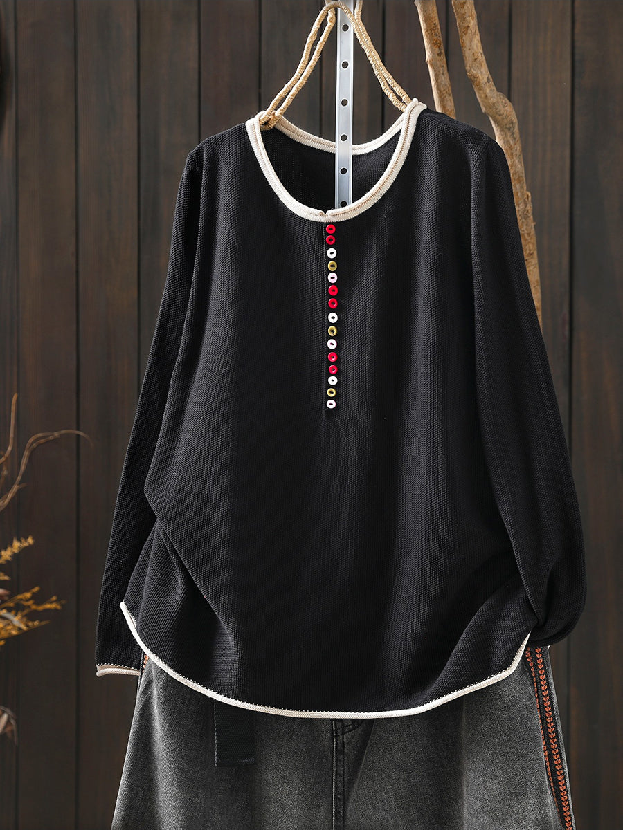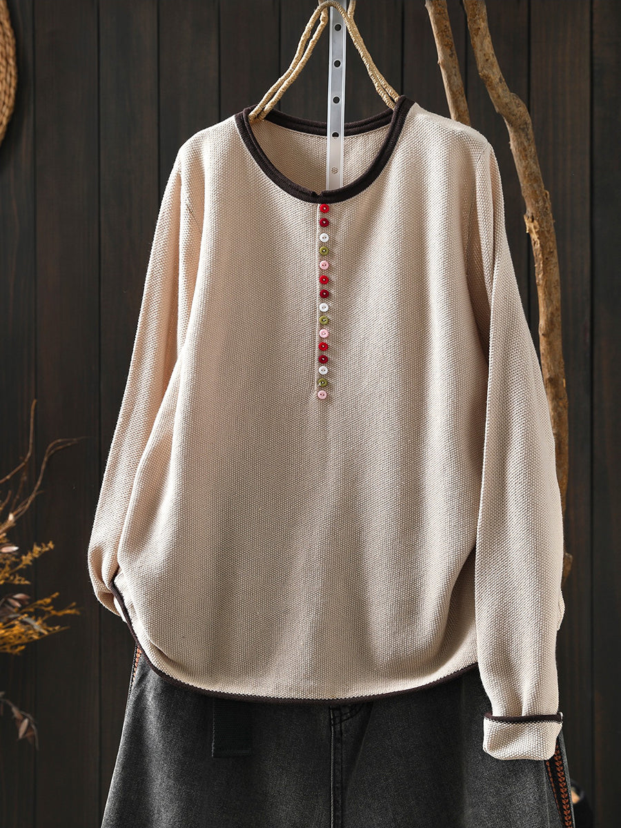 Kvinders forårsbluse med kunstnerisk farveblok og O-hals