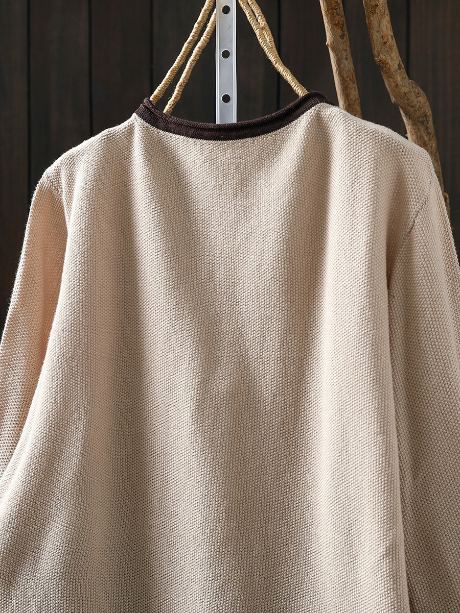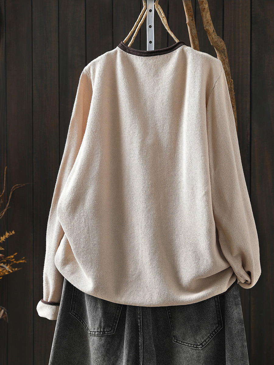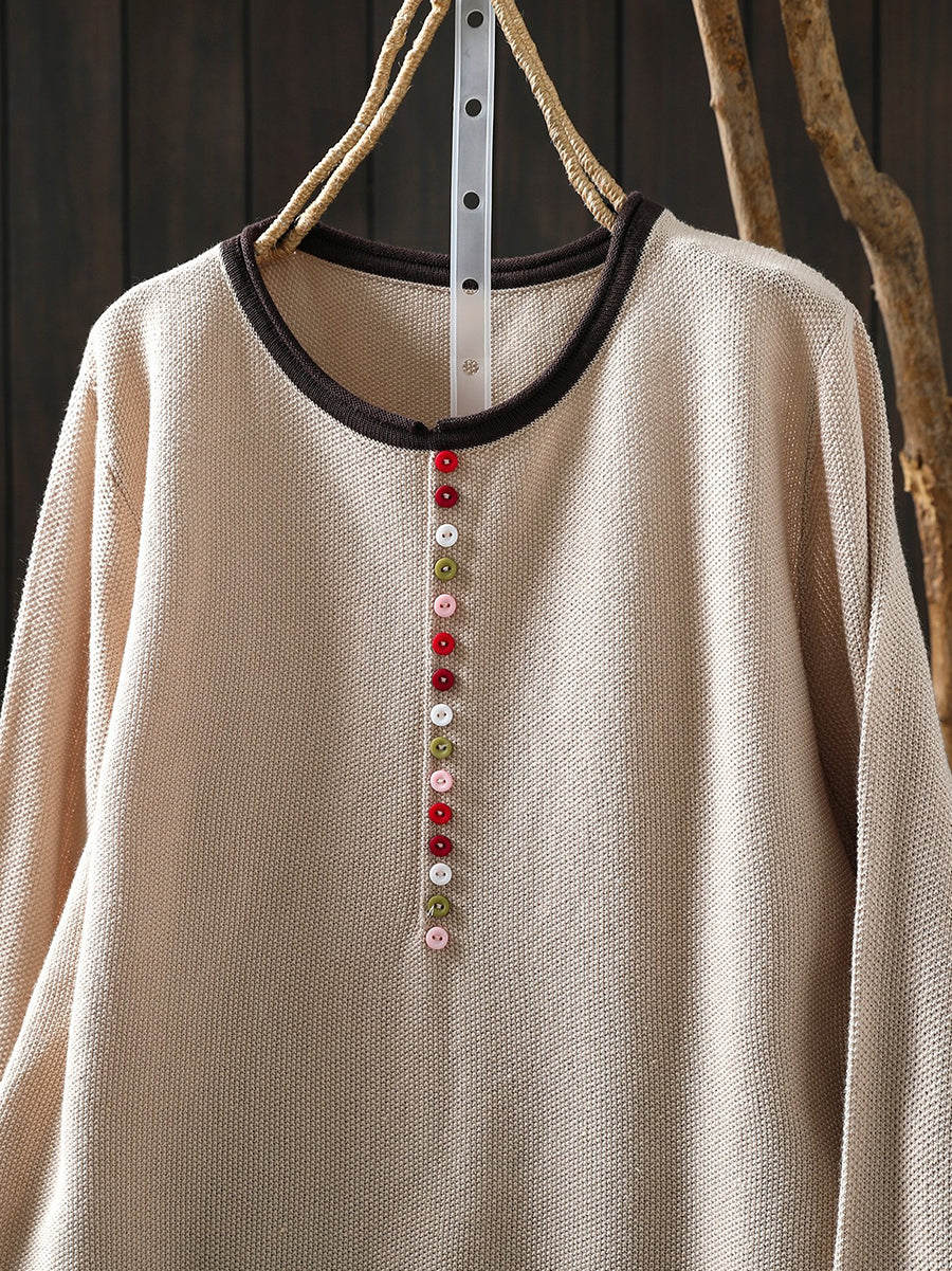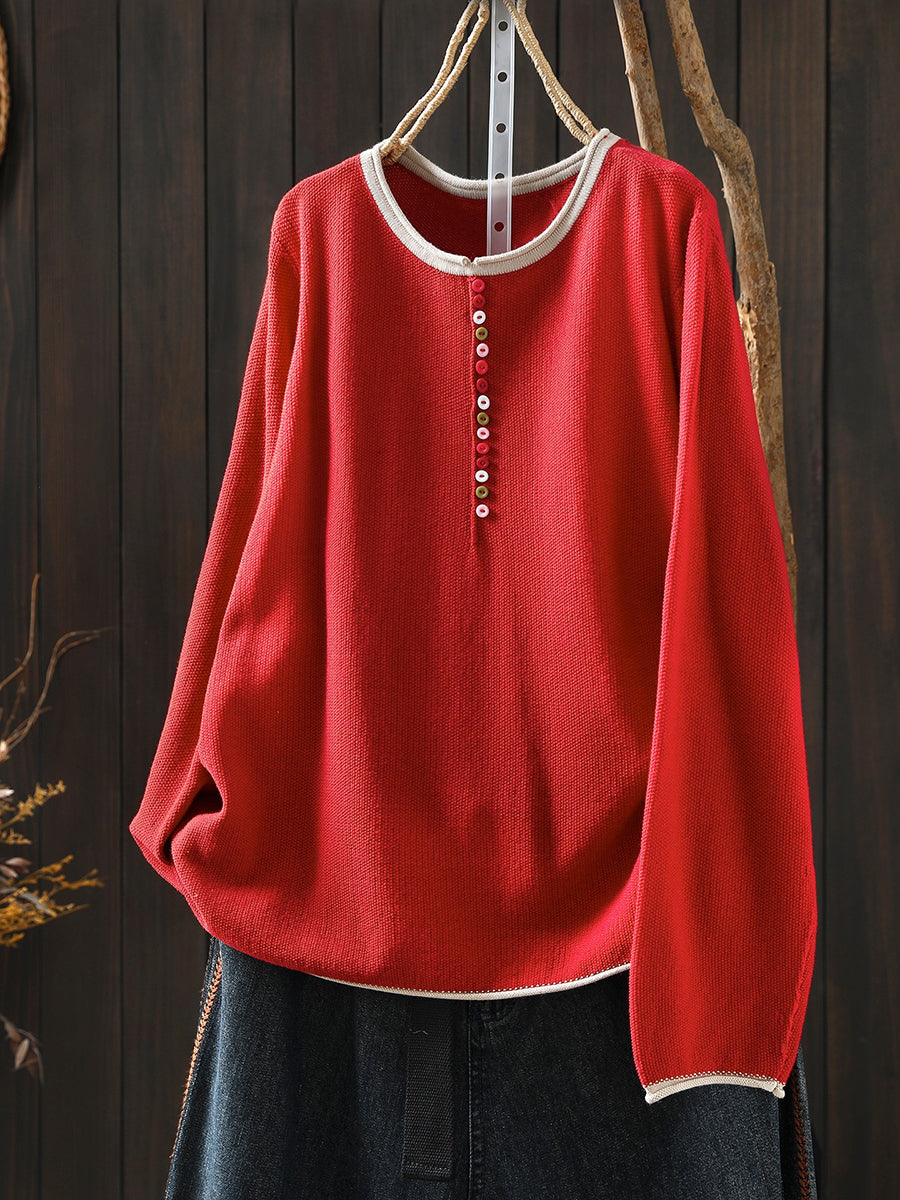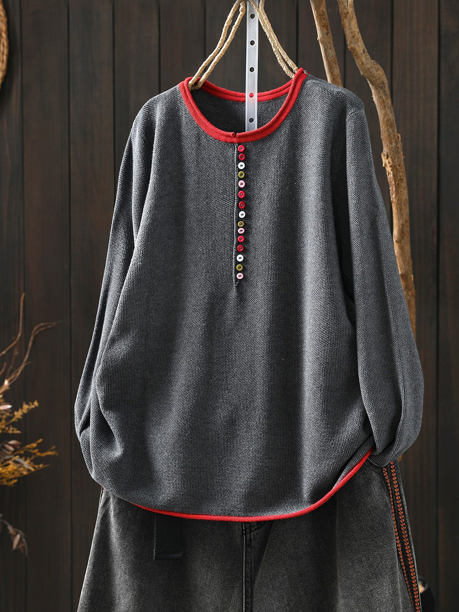 Kvinders forårsbluse med kunstnerisk farveblok og O-hals