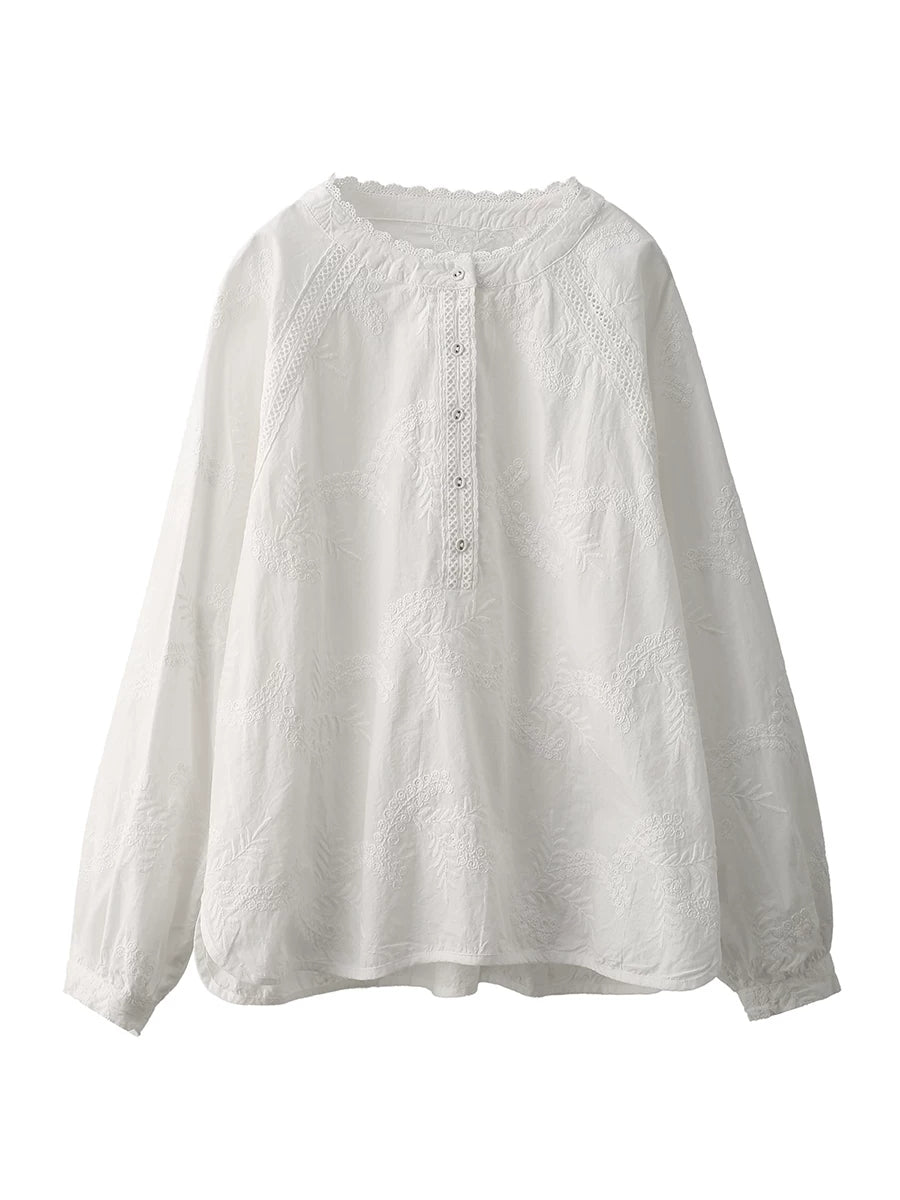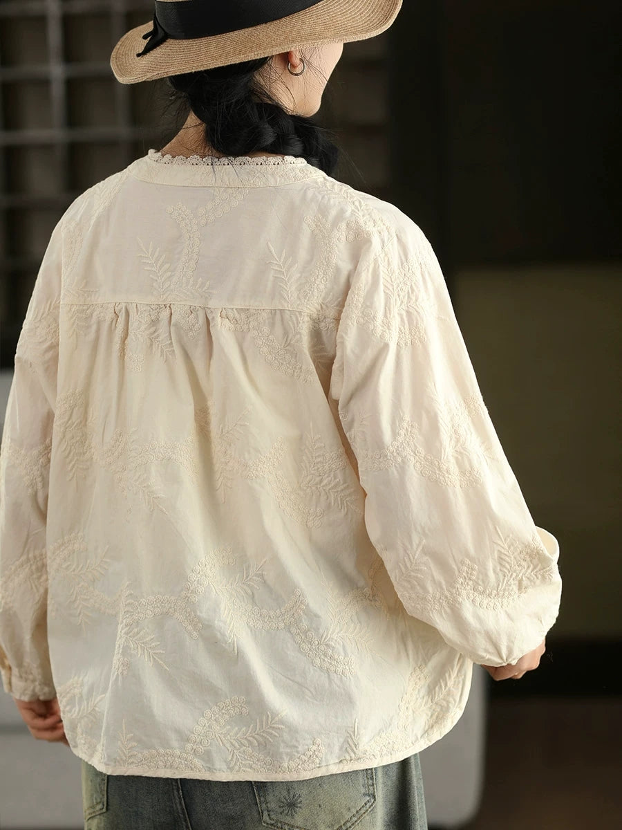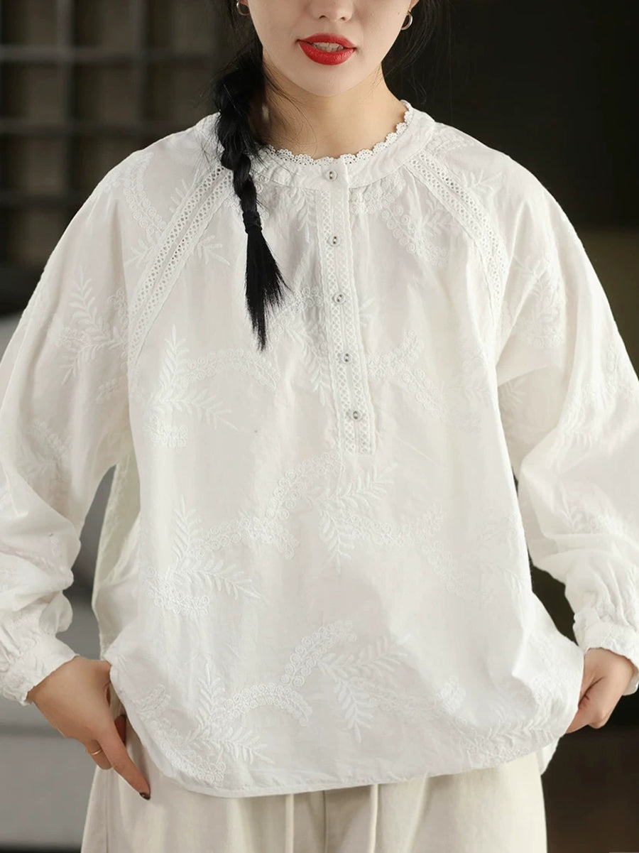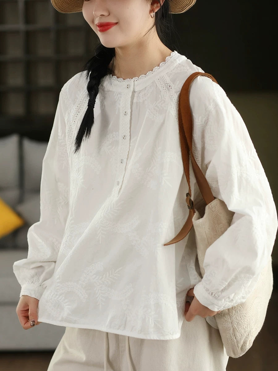 Dame forårsskjorte med kunstnerisk broderi i 100% bomuld