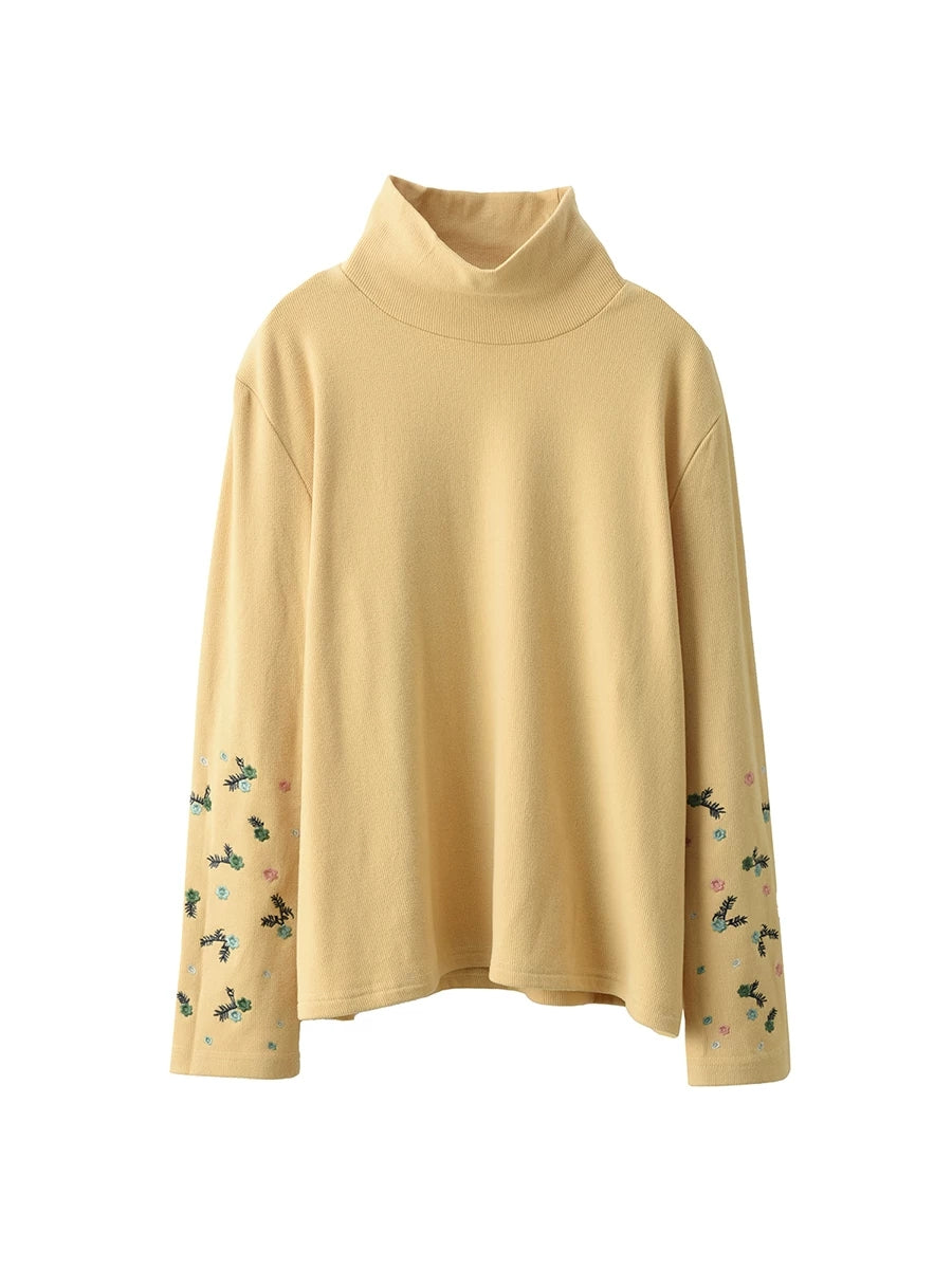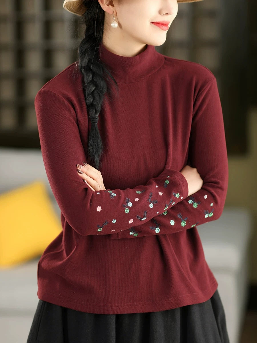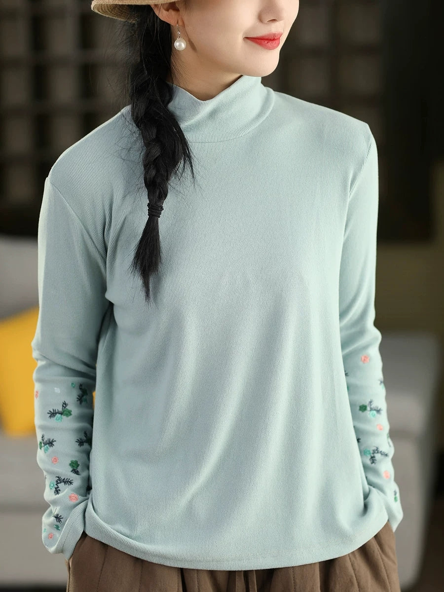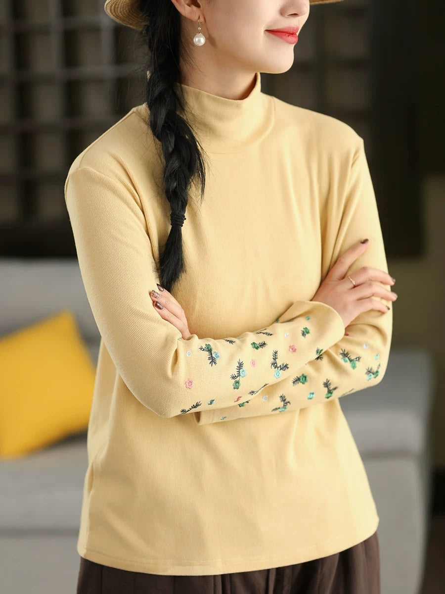 Kvinder Forårsbluse med kunstnerisk broderi og rullekrave
