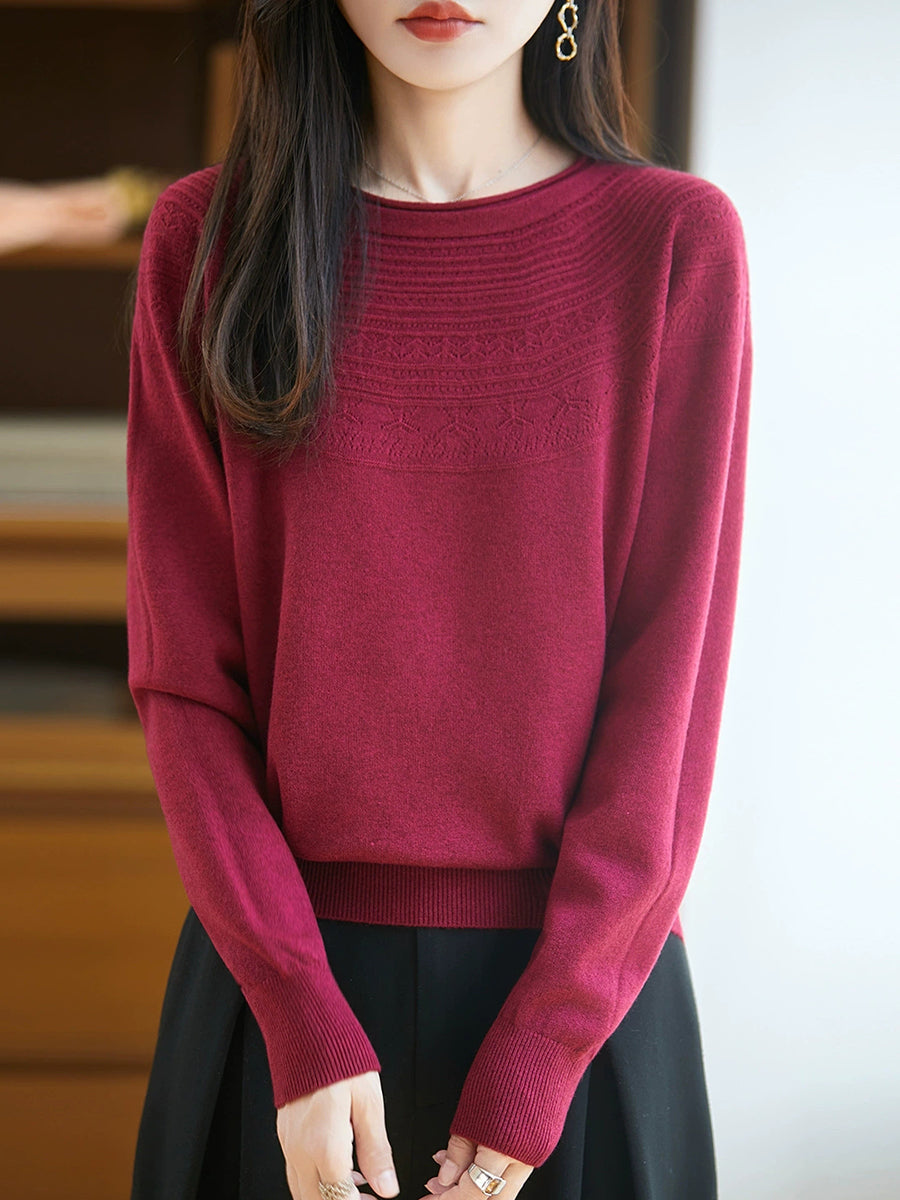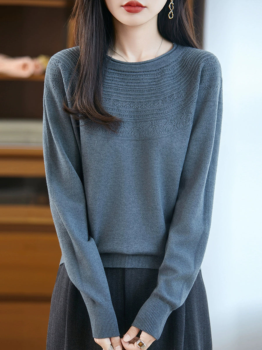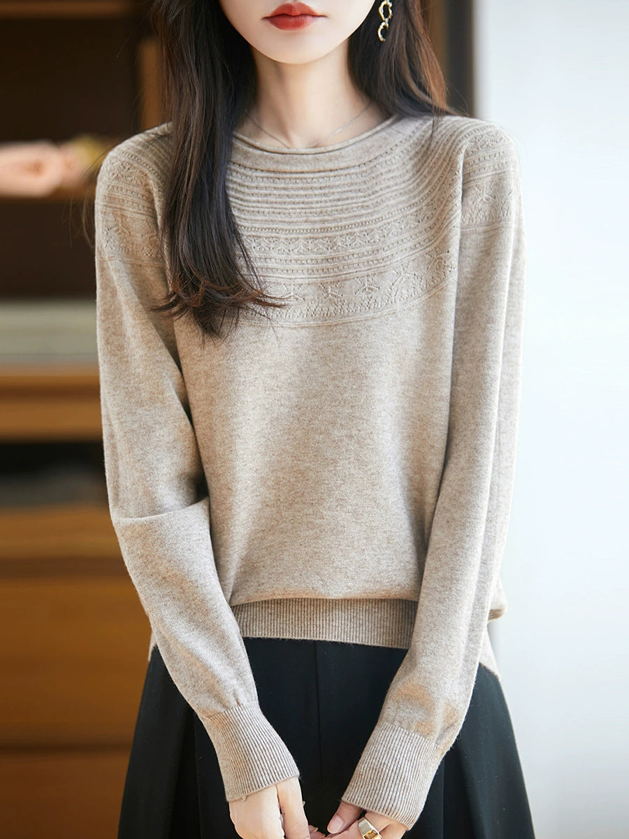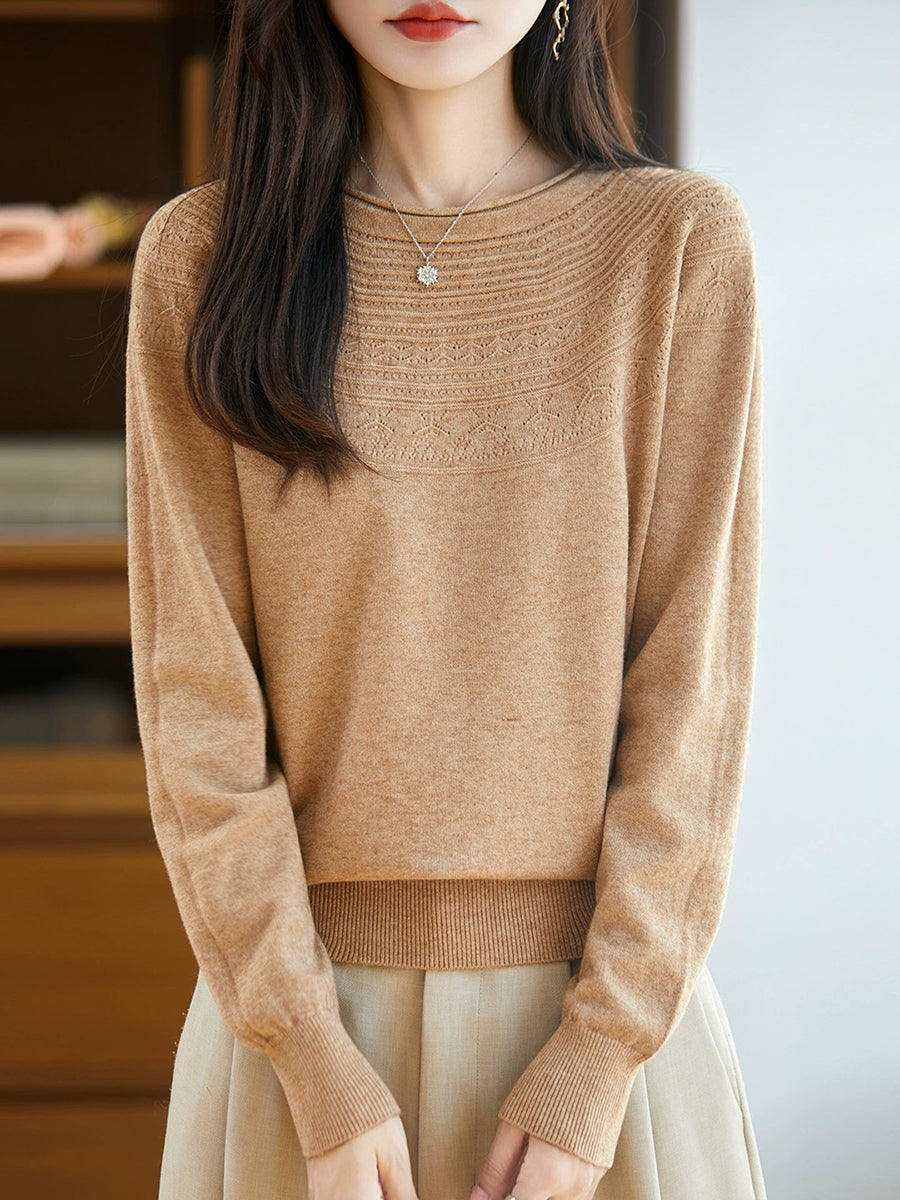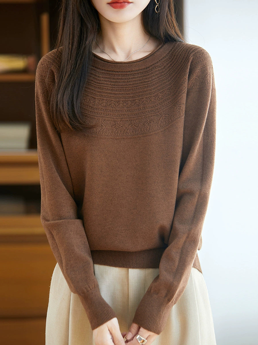 Kunstnerisk strikket O-hals O-hals sweater til kvinder