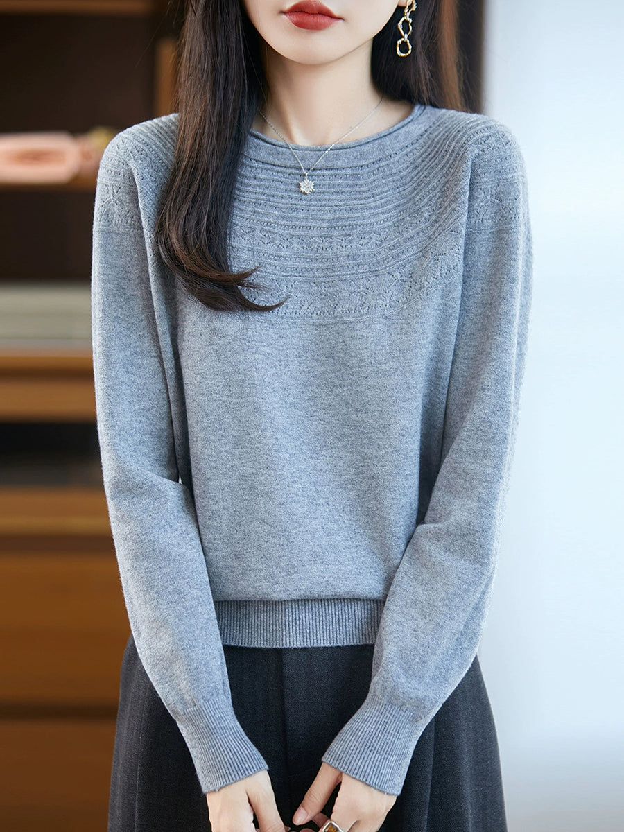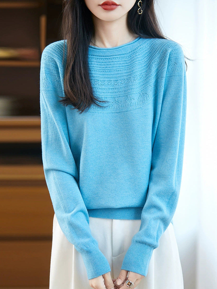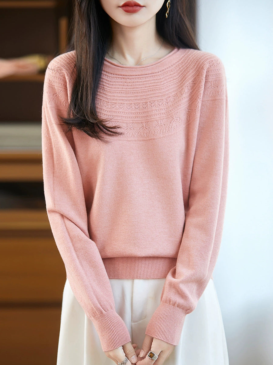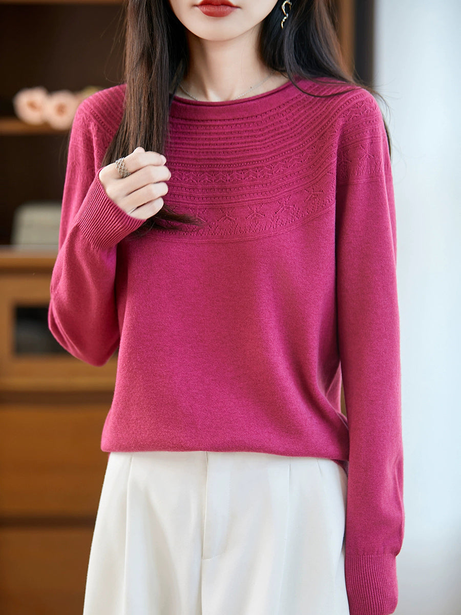 Kunstnerisk strikket O-hals O-hals sweater til kvinder