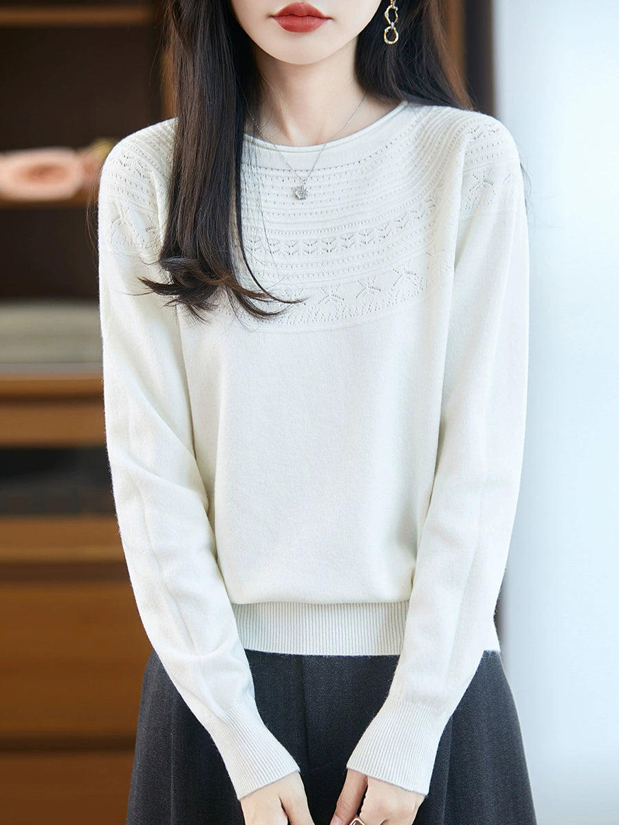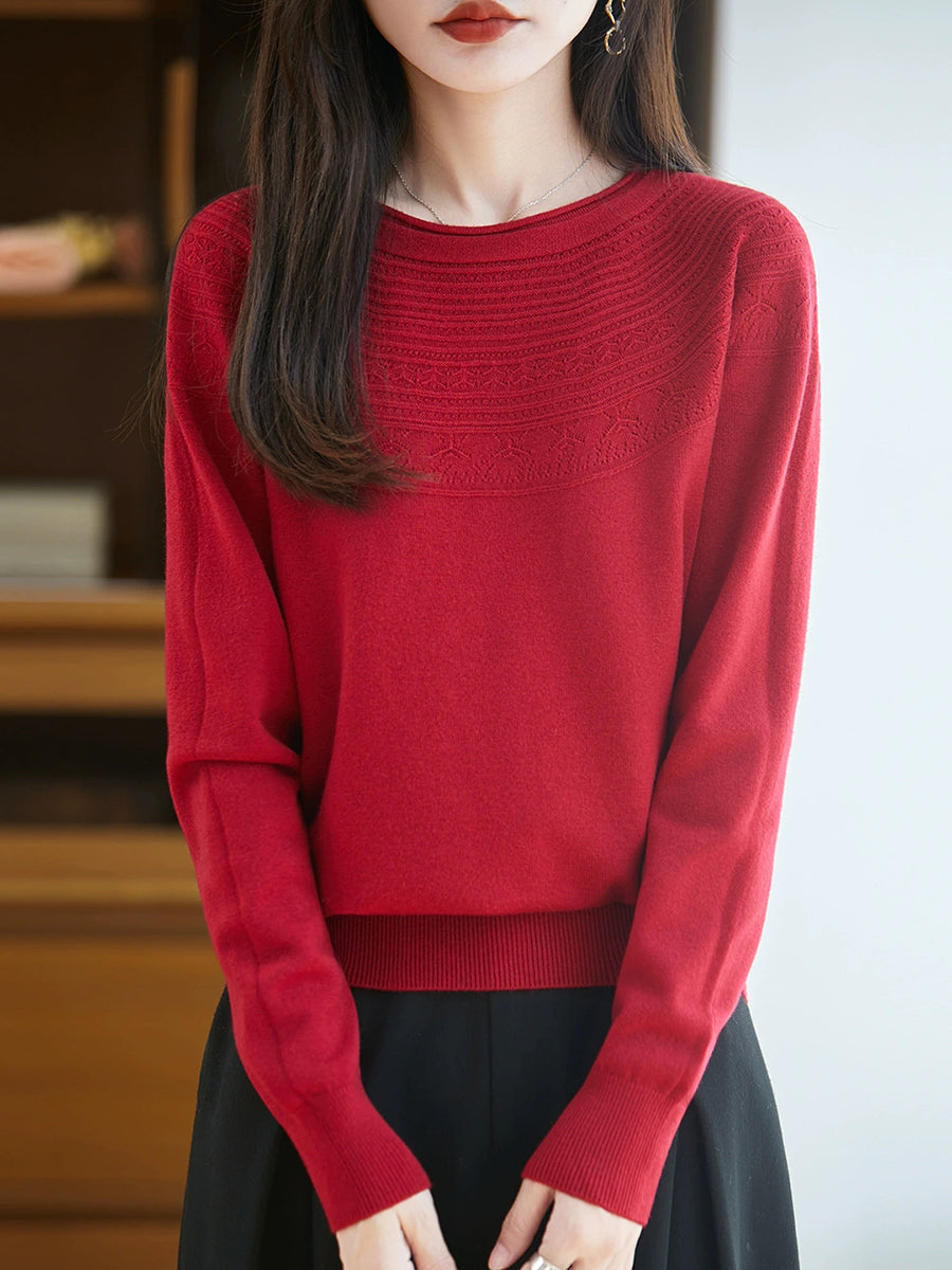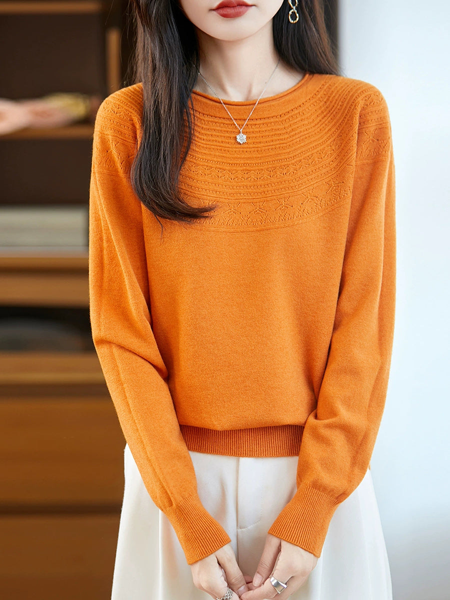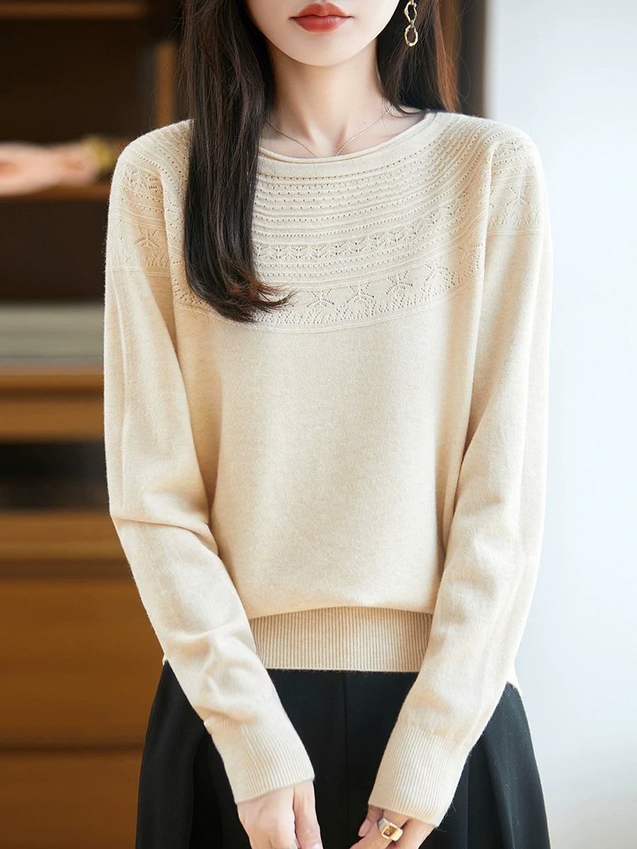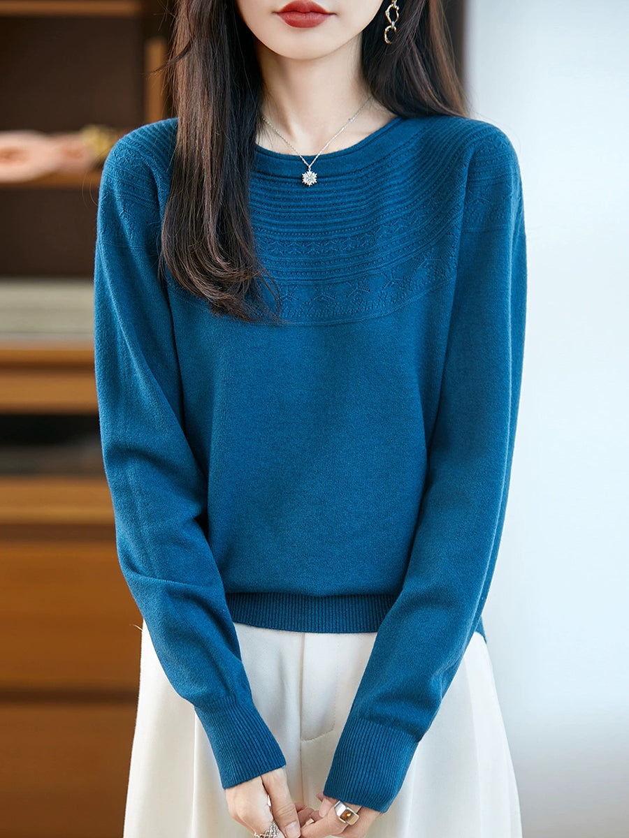 Kunstnerisk strikket O-hals O-hals sweater til kvinder
