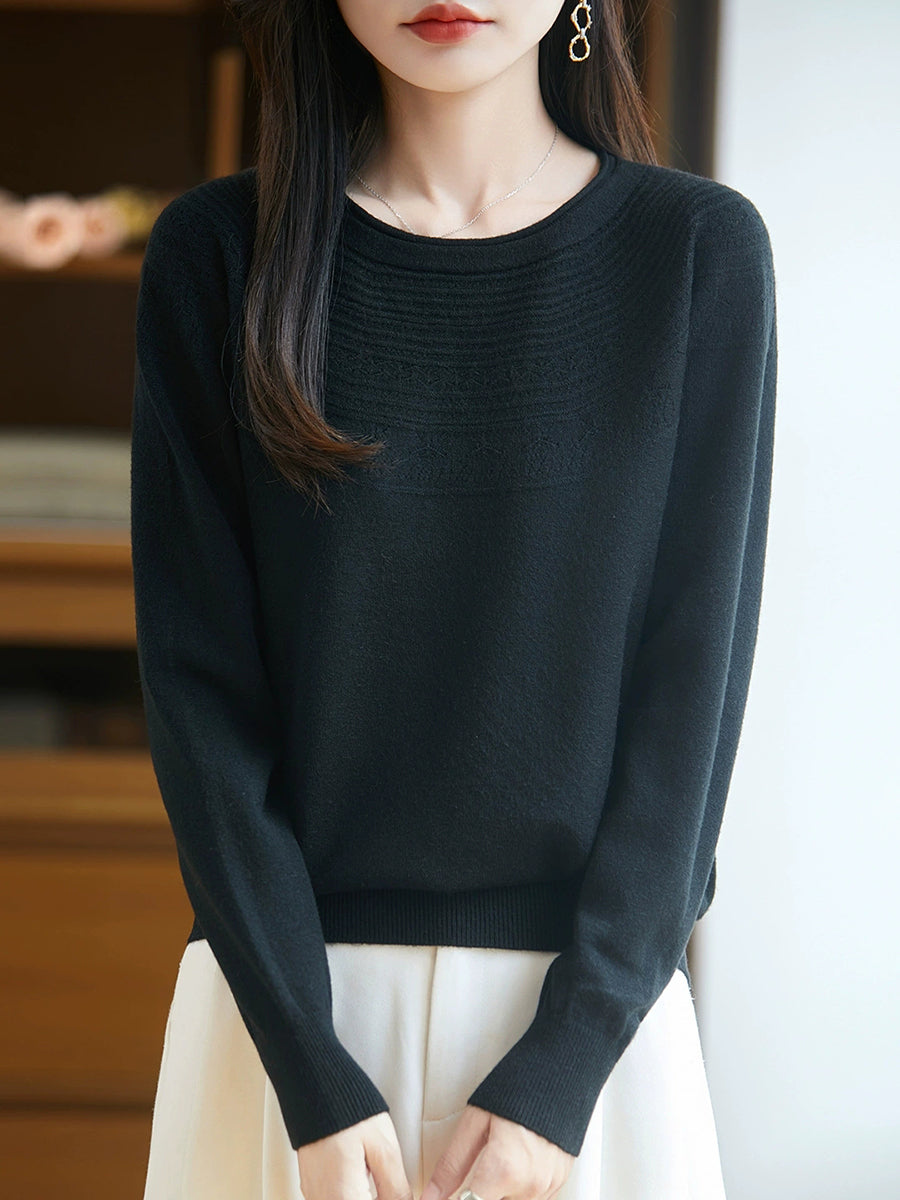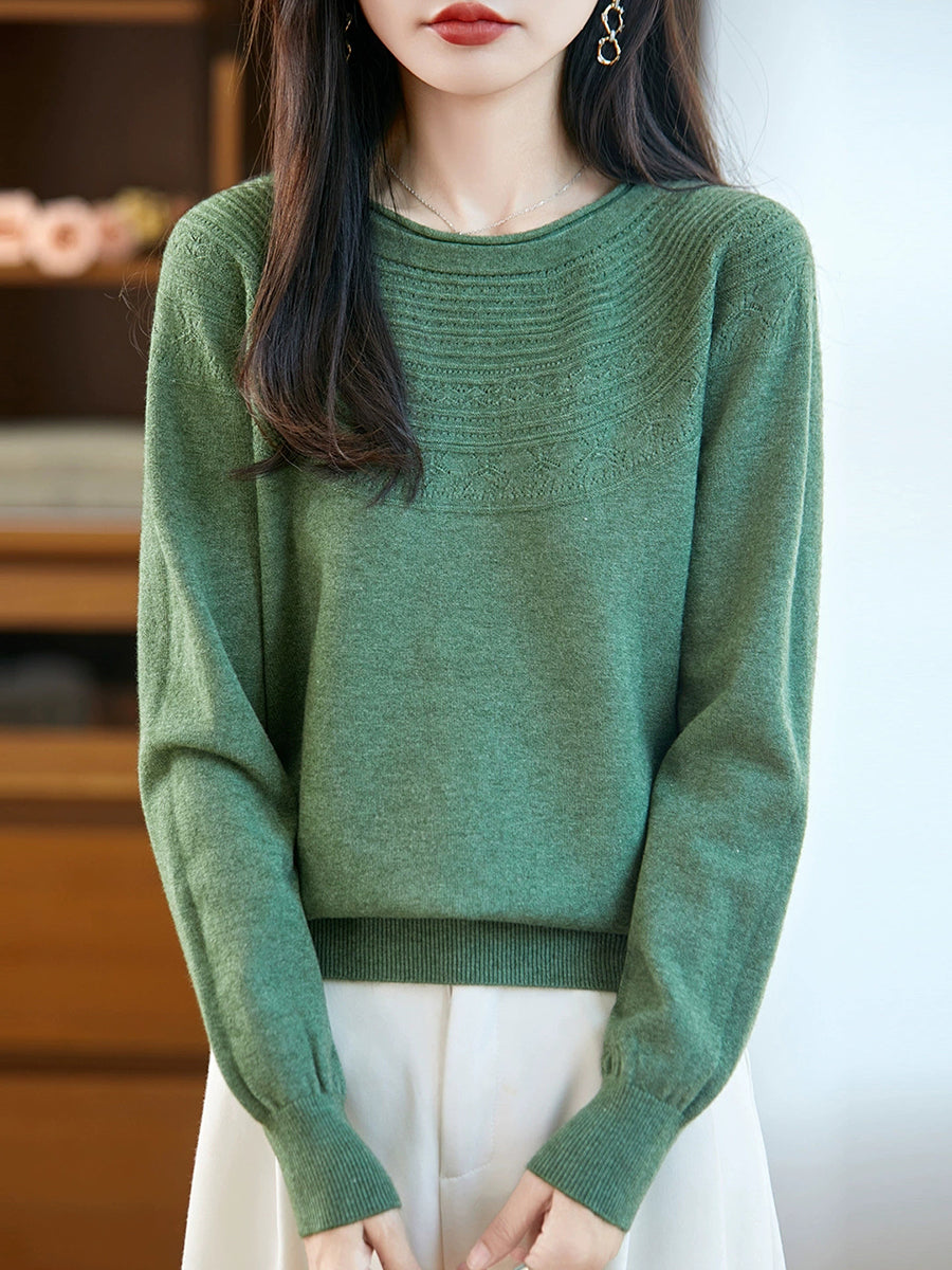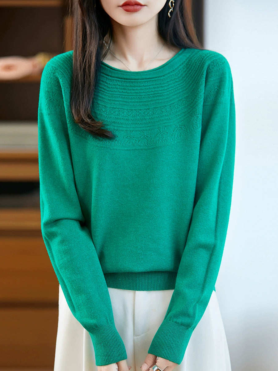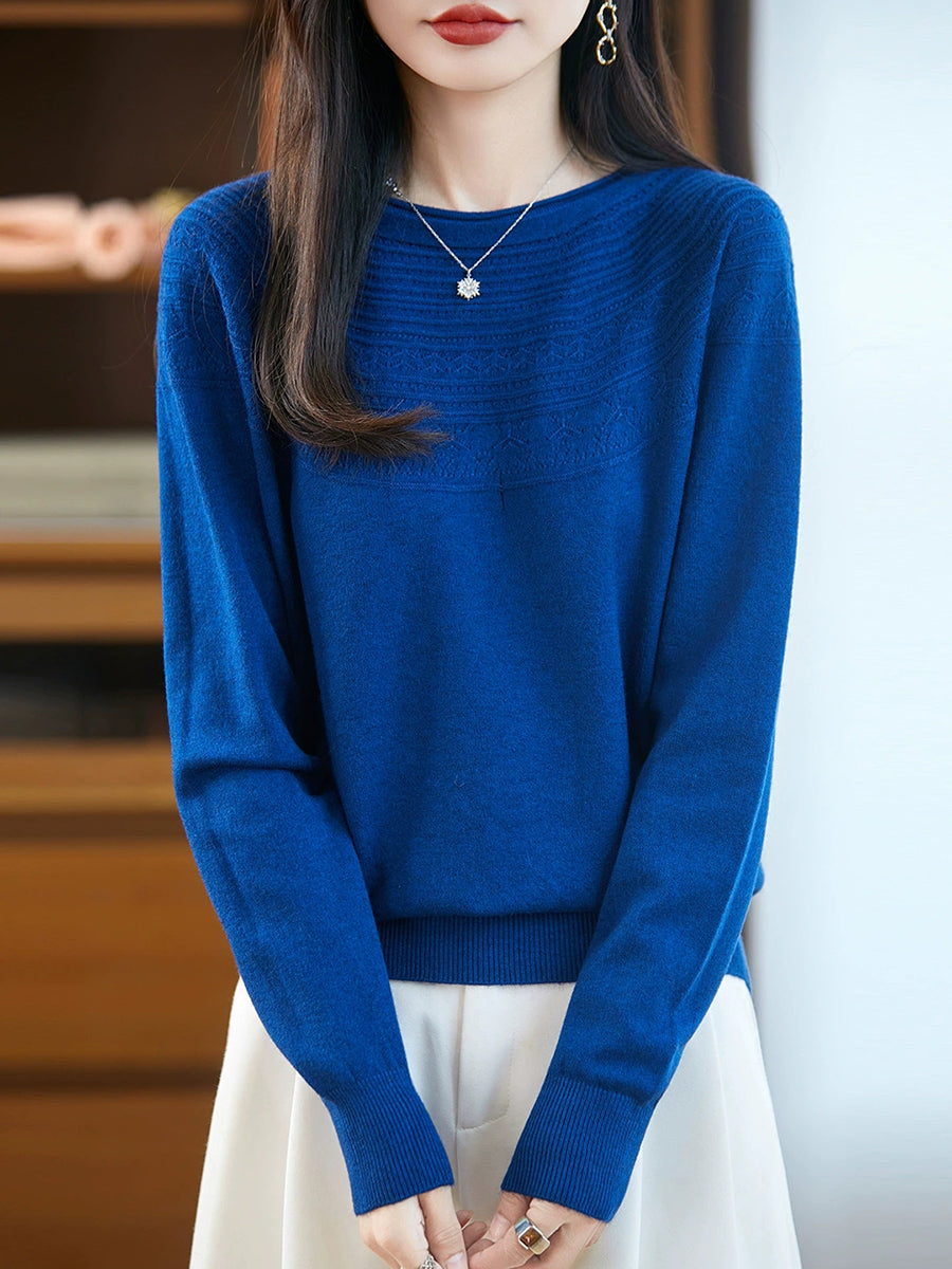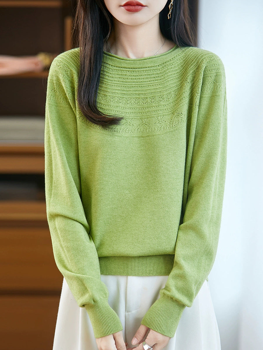 Kunstnerisk strikket O-hals O-hals sweater til kvinder