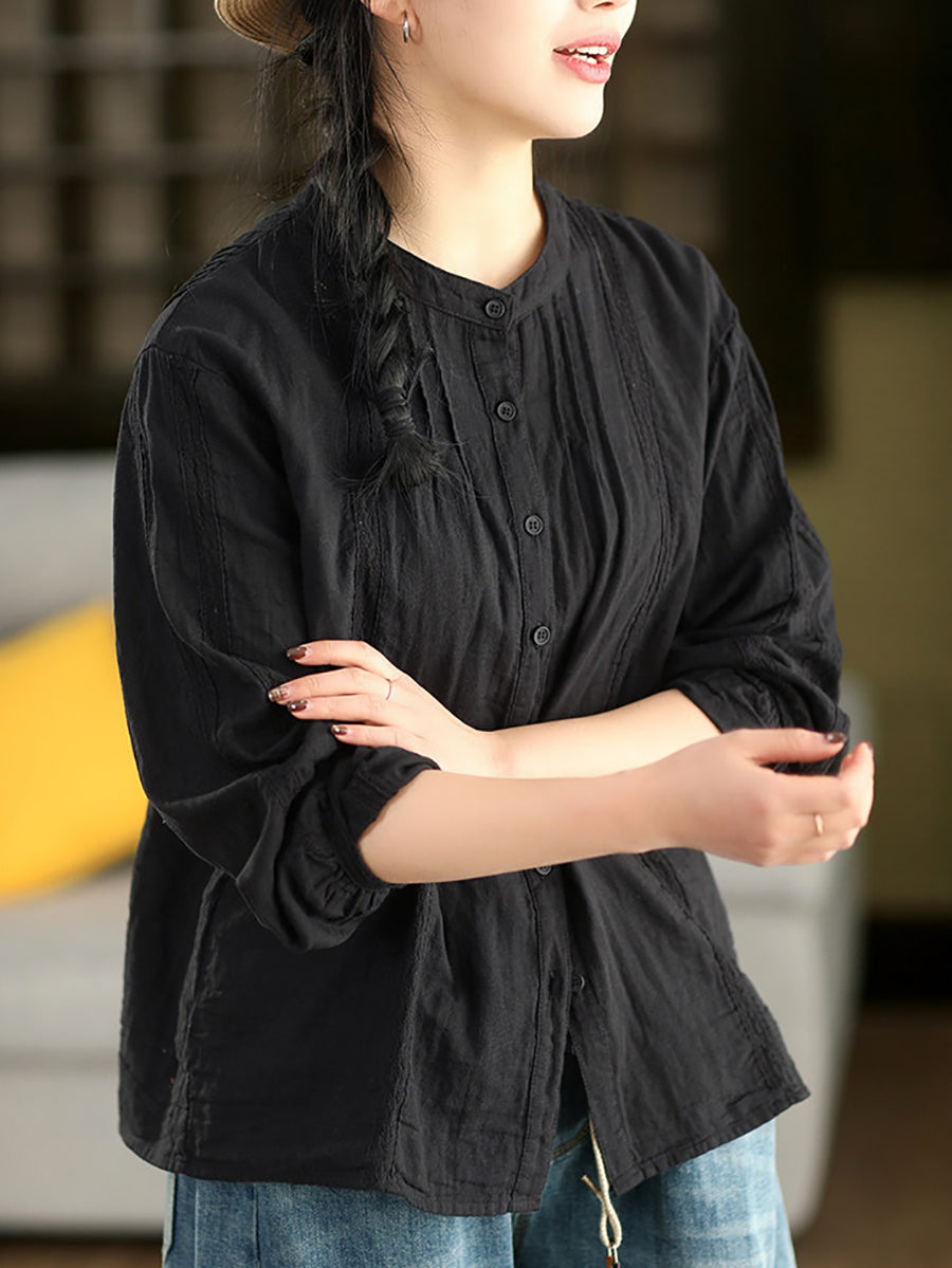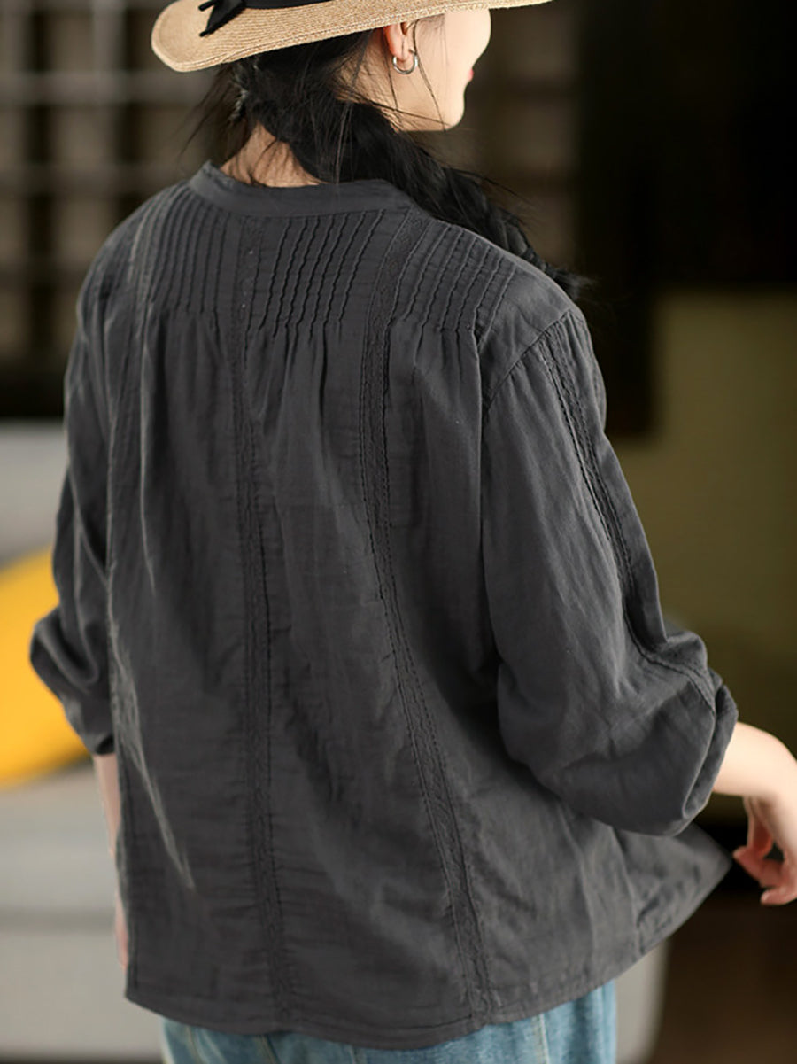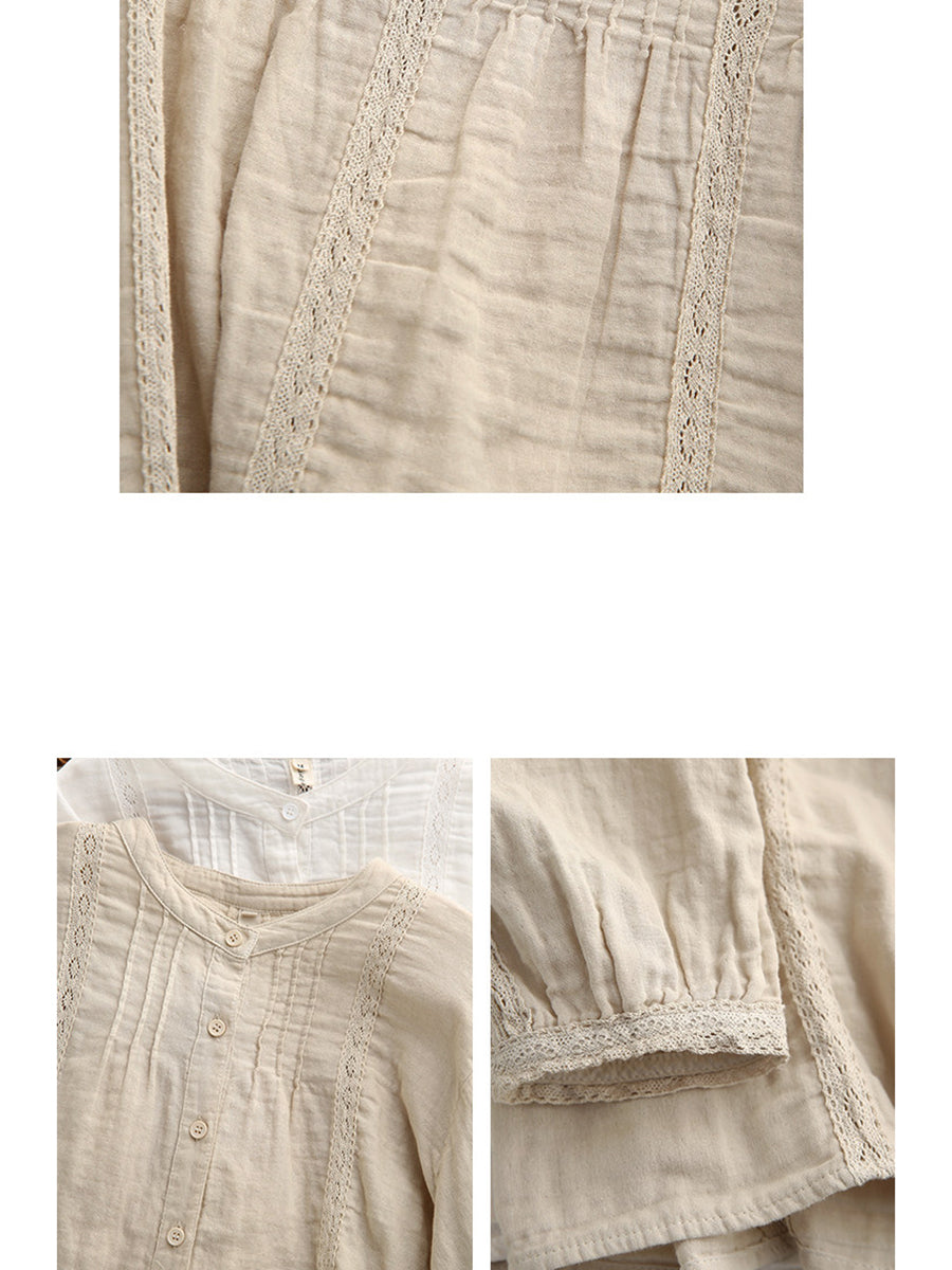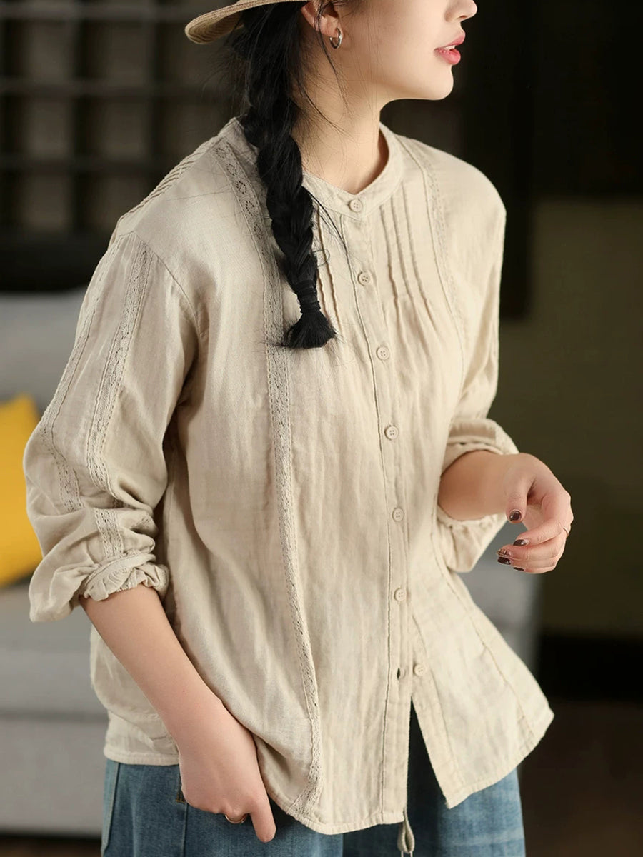 Dame forårsskjorte med kunstnerisk blondemønster og splejsning af 100% bomuld