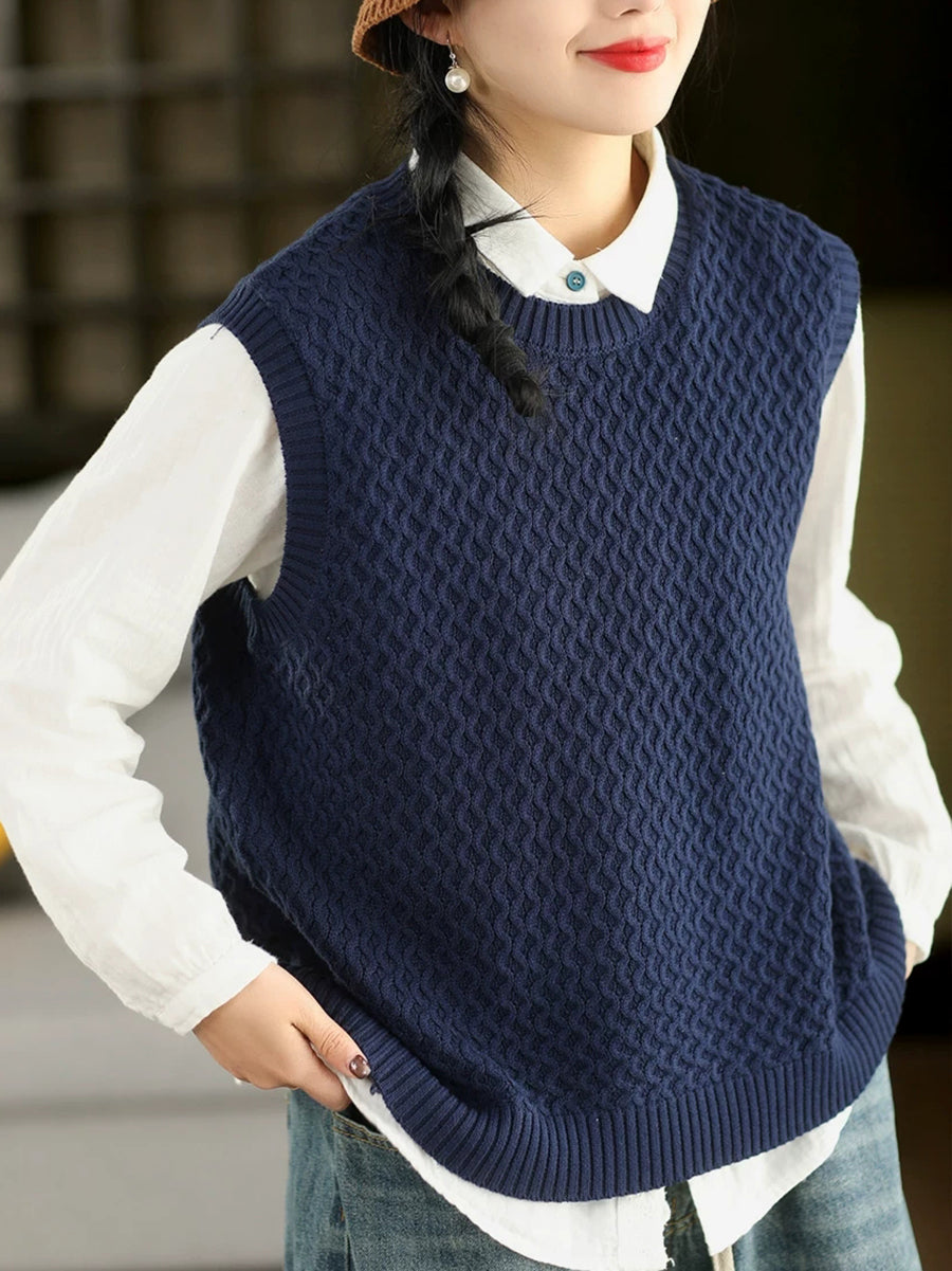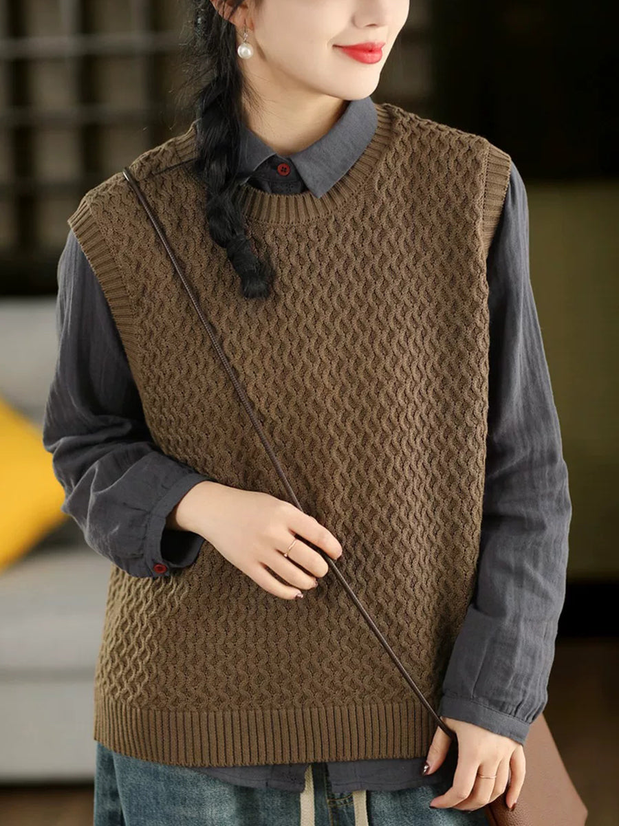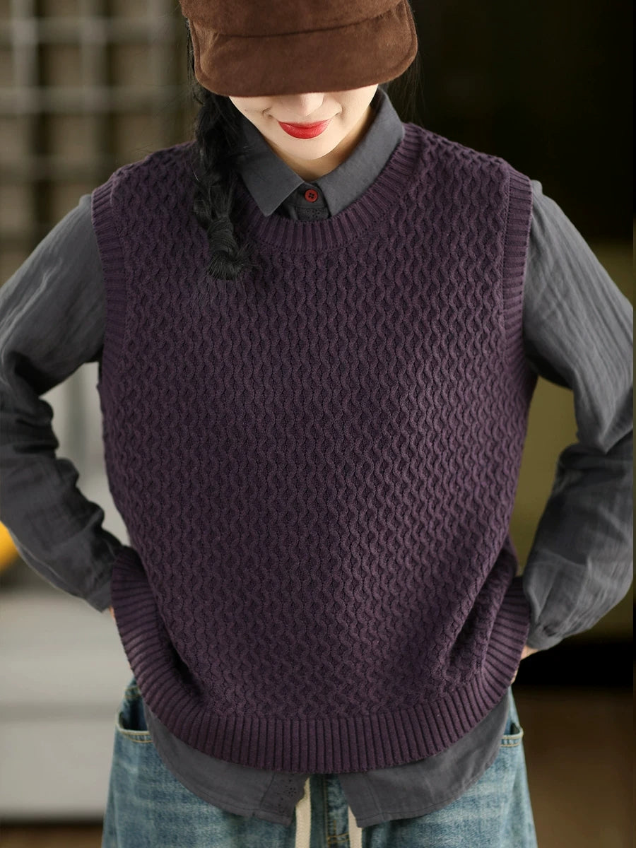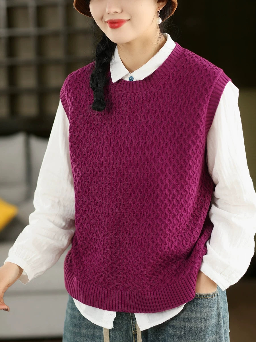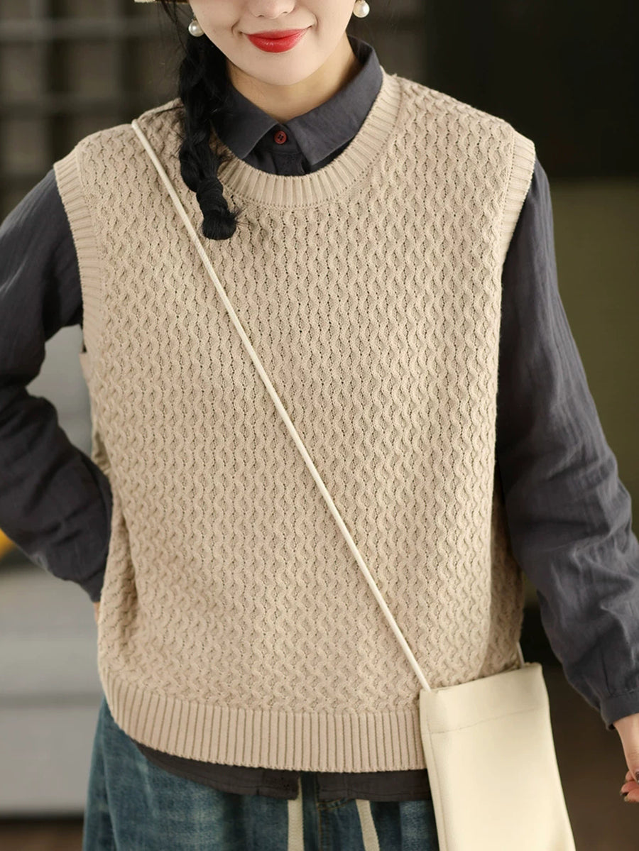 Kvinders forårskunstnerisk O-hals ren farve strikket vest