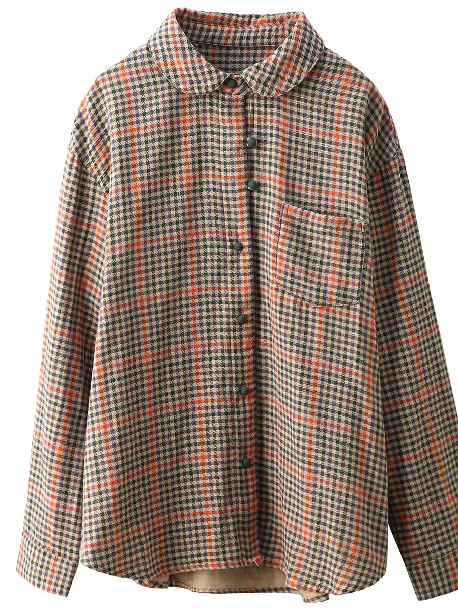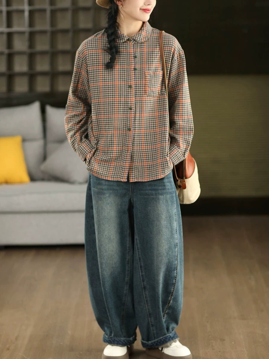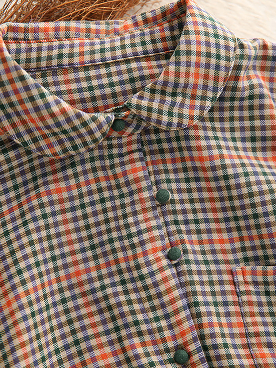 Dame forårsskjorte med kunstnerisk ternet krave og 100% bomuld
