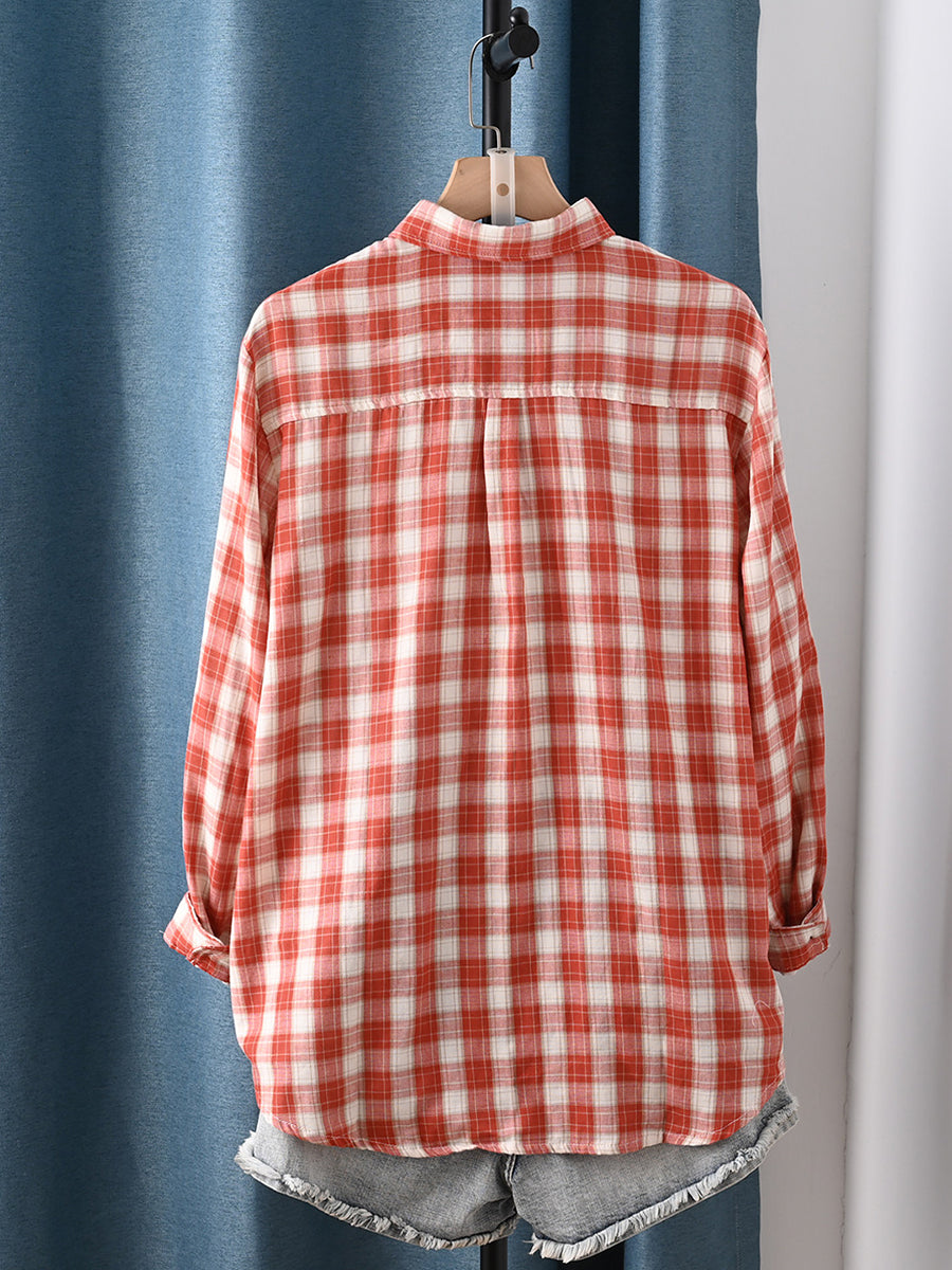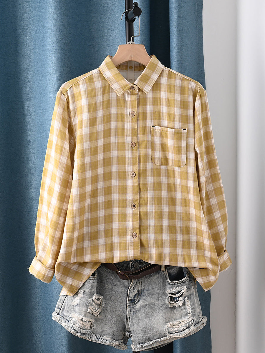 Dame forårsskjorte med kunstnerisk ternet krave og 100% bomuld