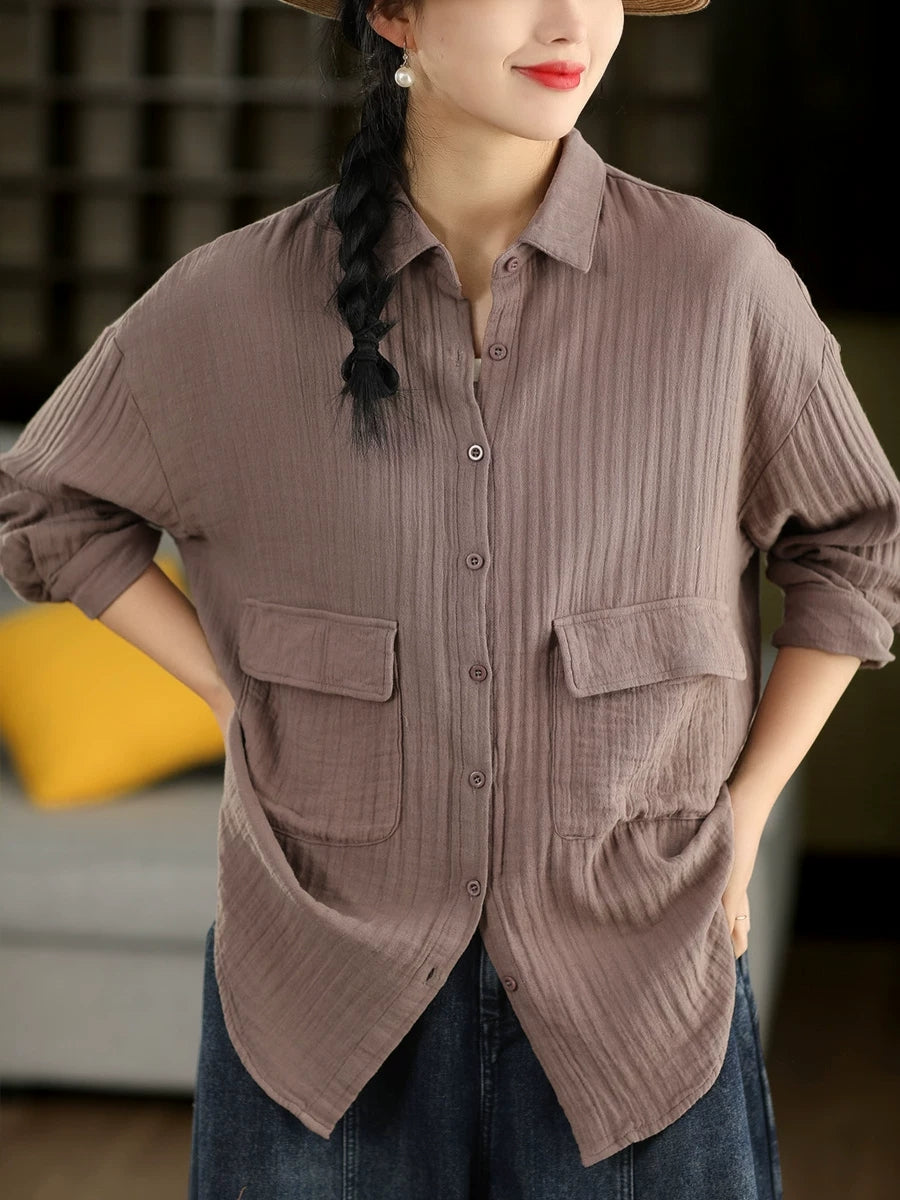 Dame forårsskjorte i kunstnerisk stil i ren farve, 100% bomuld