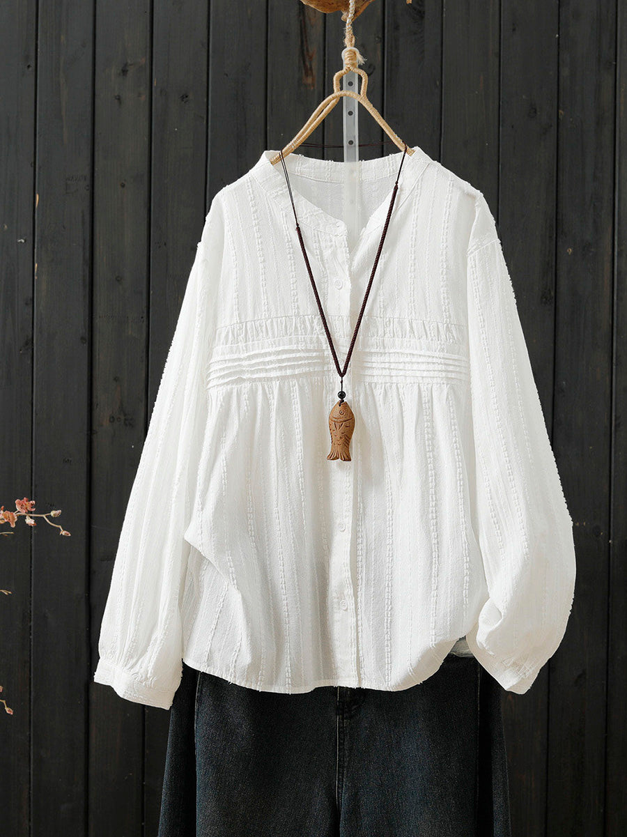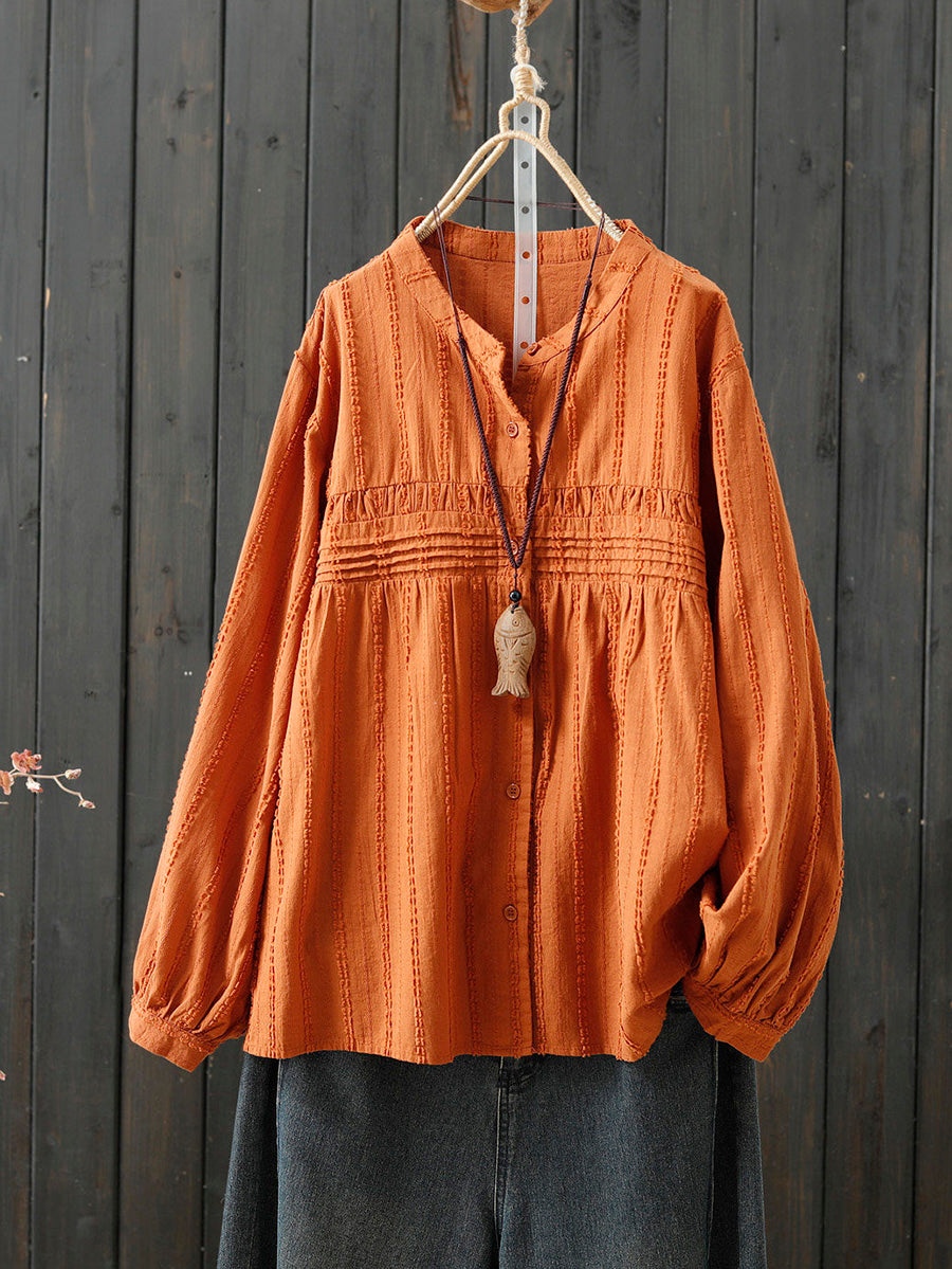Dame forårsskjorte i kunstnerisk stil i ren farve, 100% bomuld
