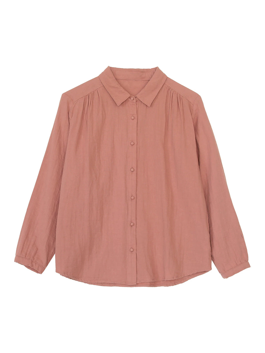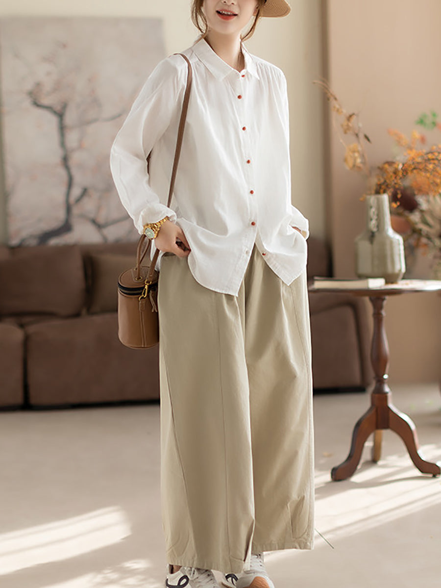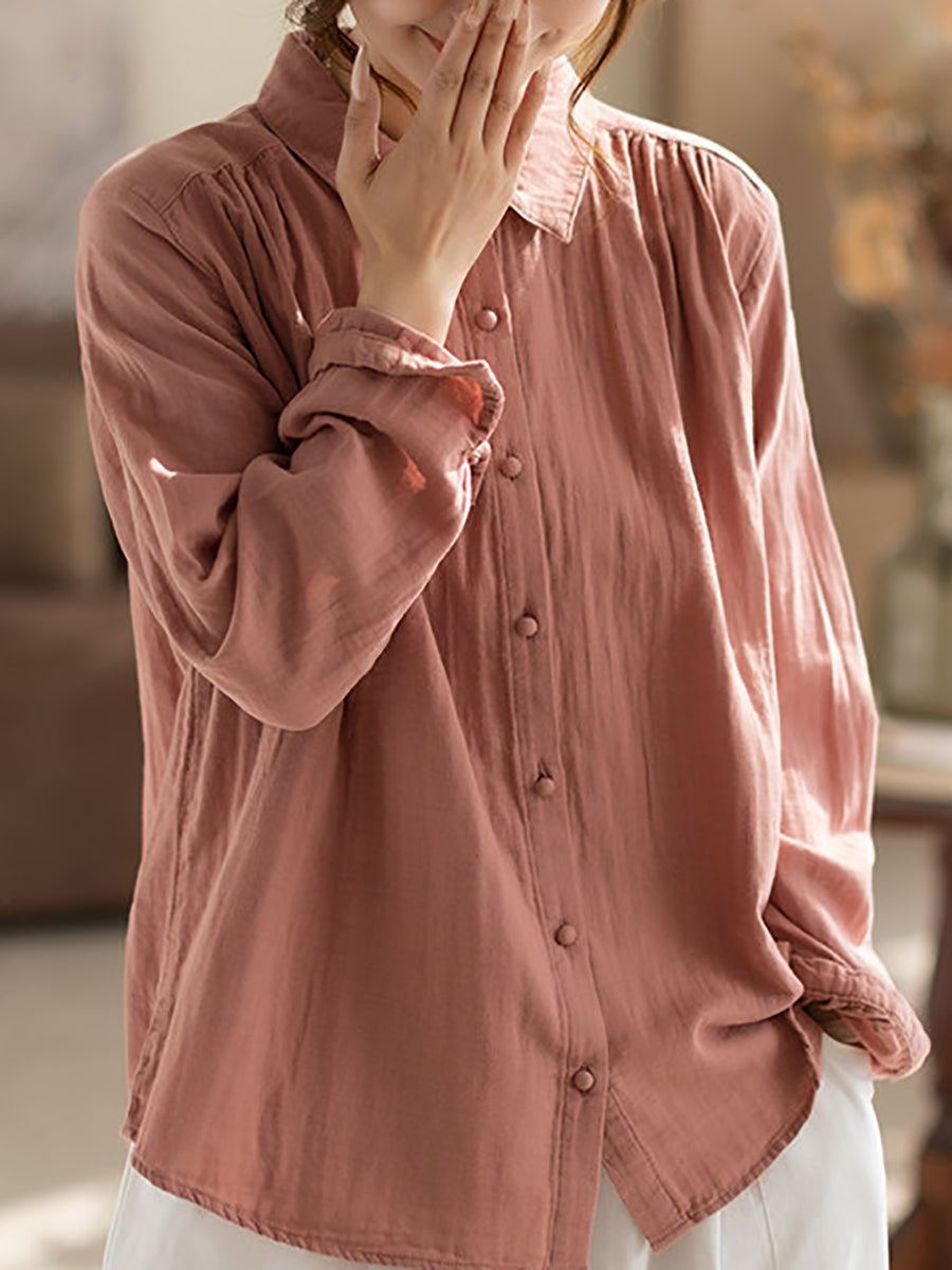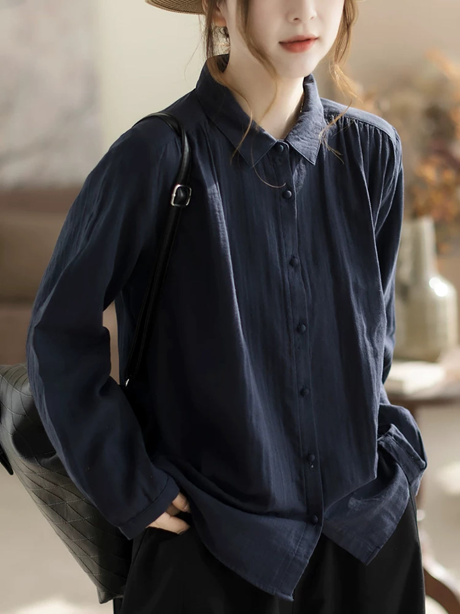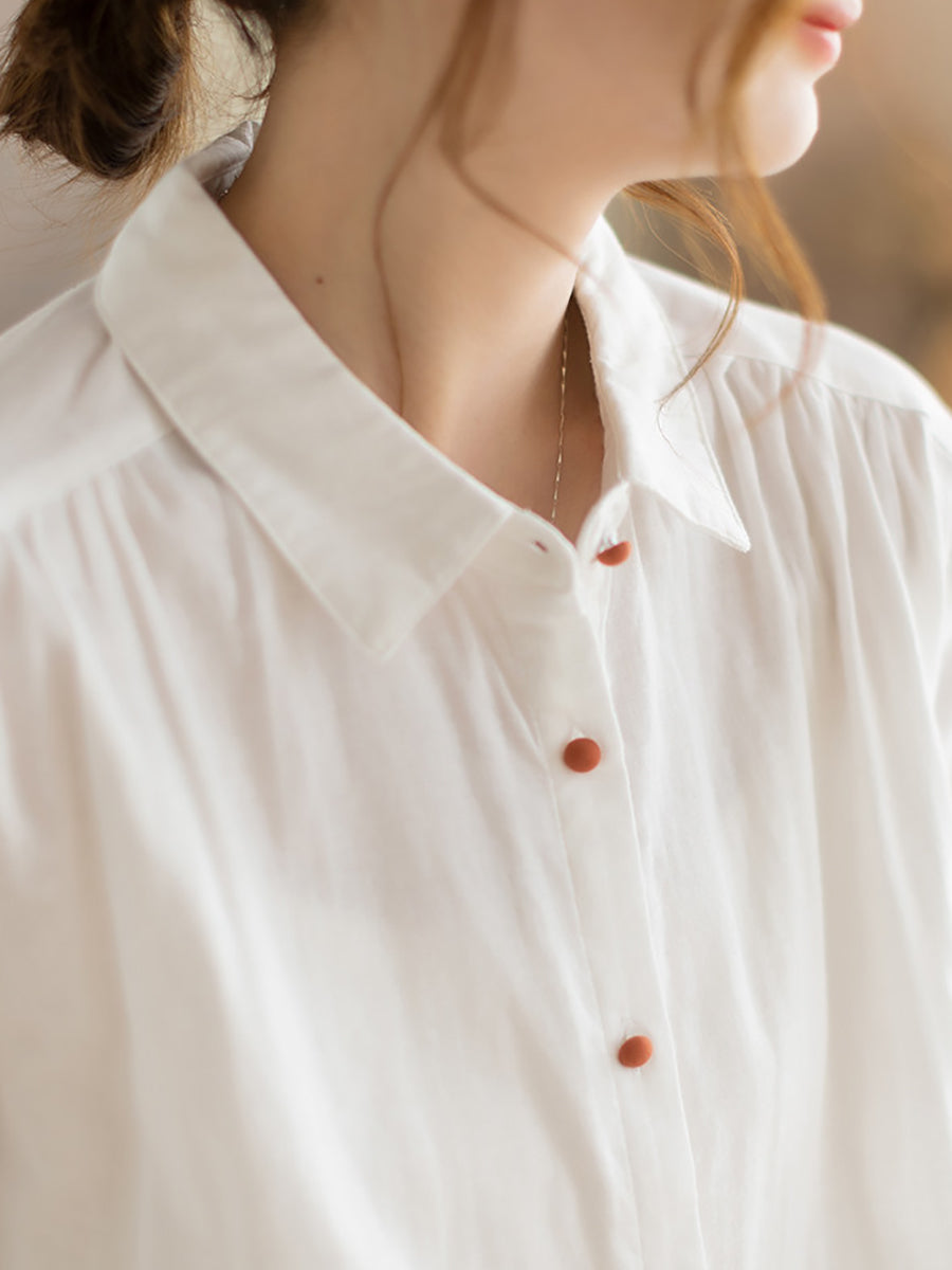 Dame forårsskjorte med kunstnerisk, ren farve og 100% bomuldskrave