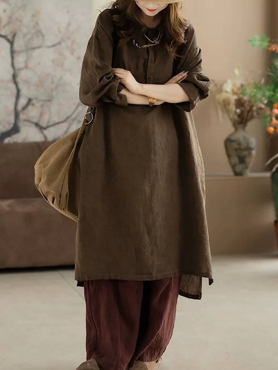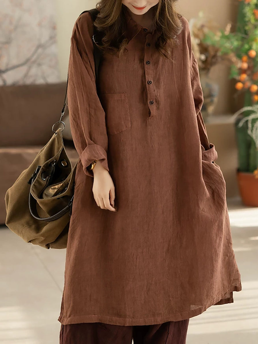 Kunstnerisk kjole til kvinder i 100% linned i ren farve