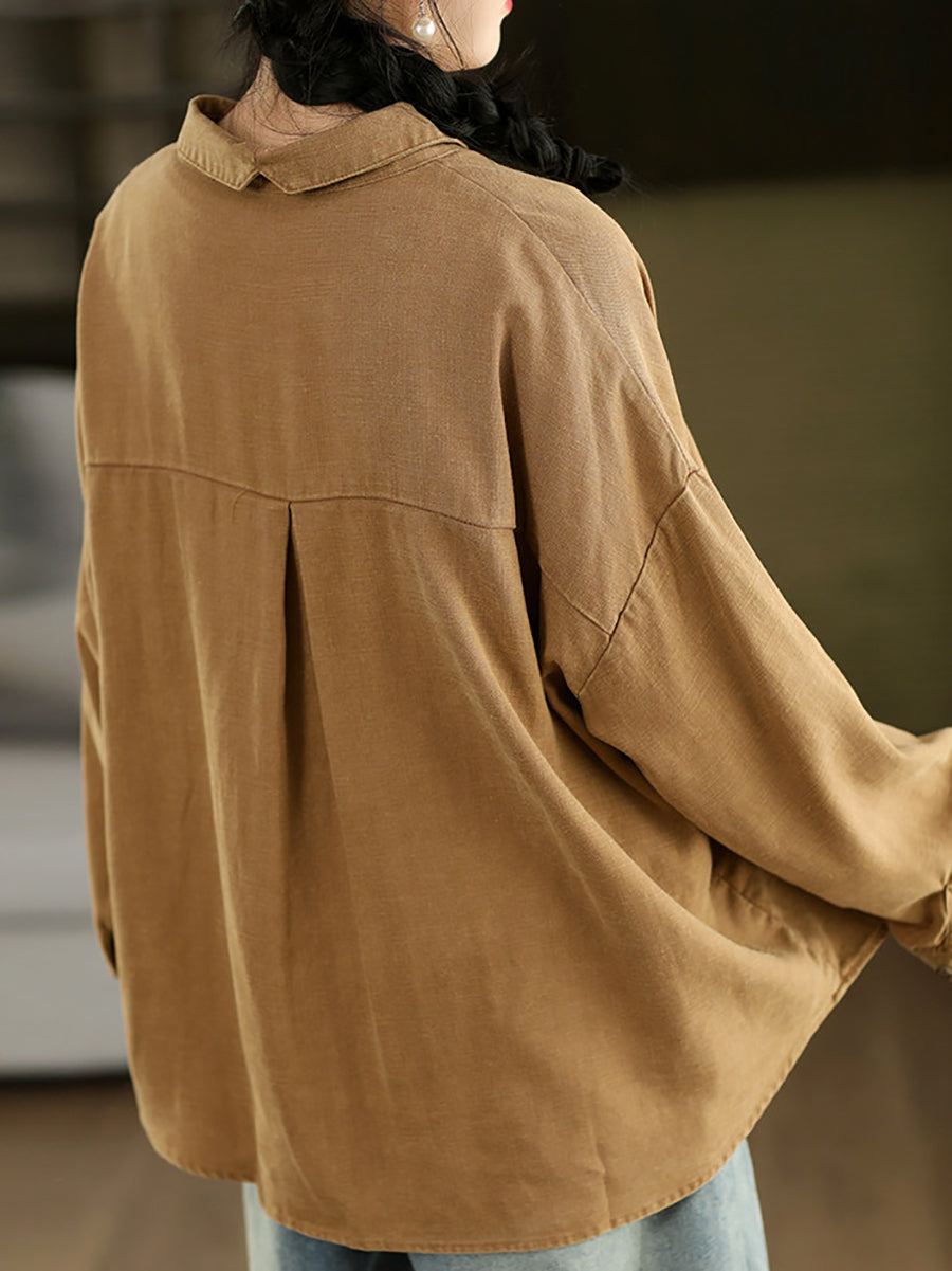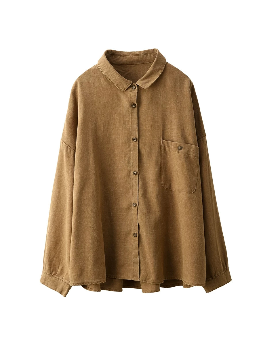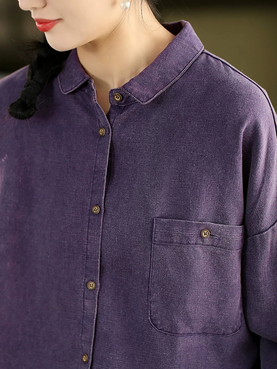 Dame forårsskjorte i kunstnerisk, ren farve, 100% hør