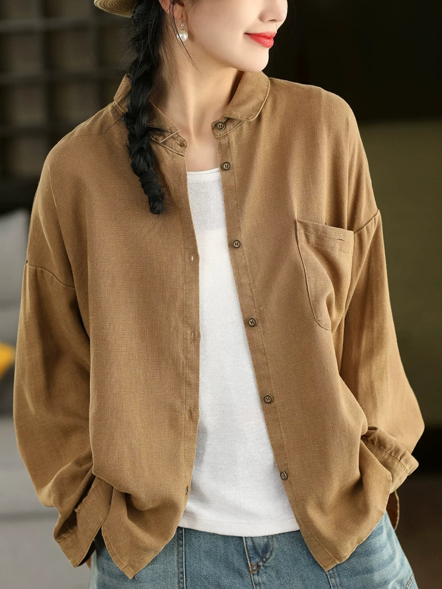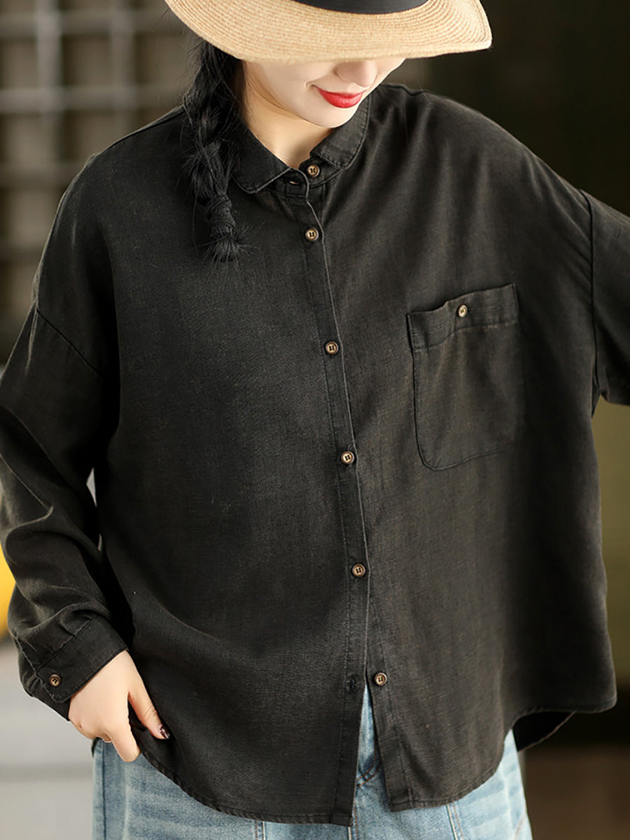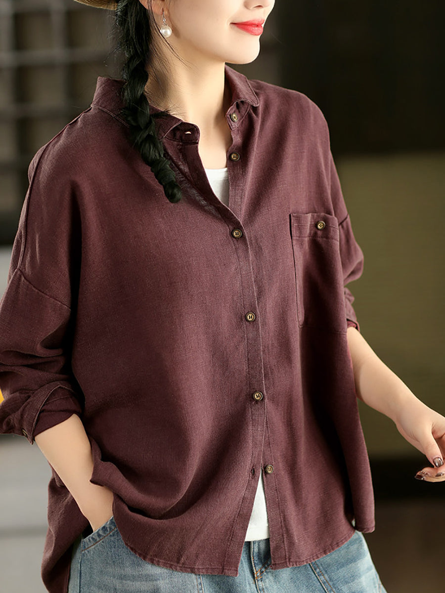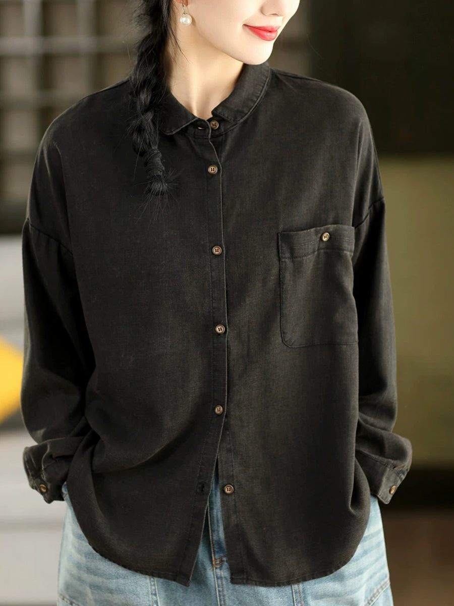 Dame forårsskjorte i kunstnerisk, ren farve, 100% hør