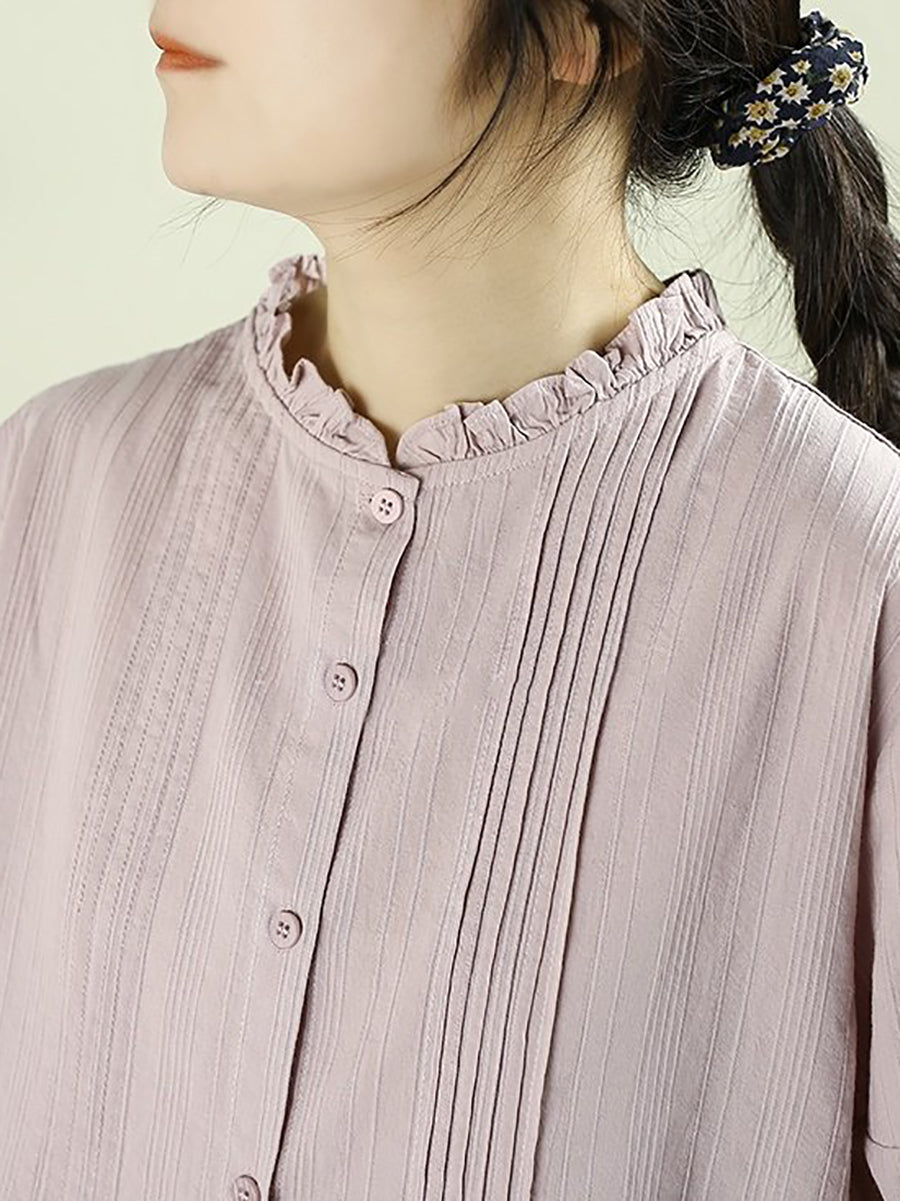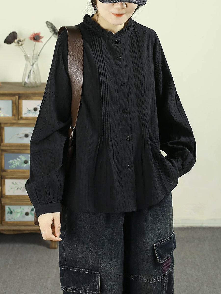 Kvinders forårsskjorte med kunstnerisk, ren farve og shimmerkrave