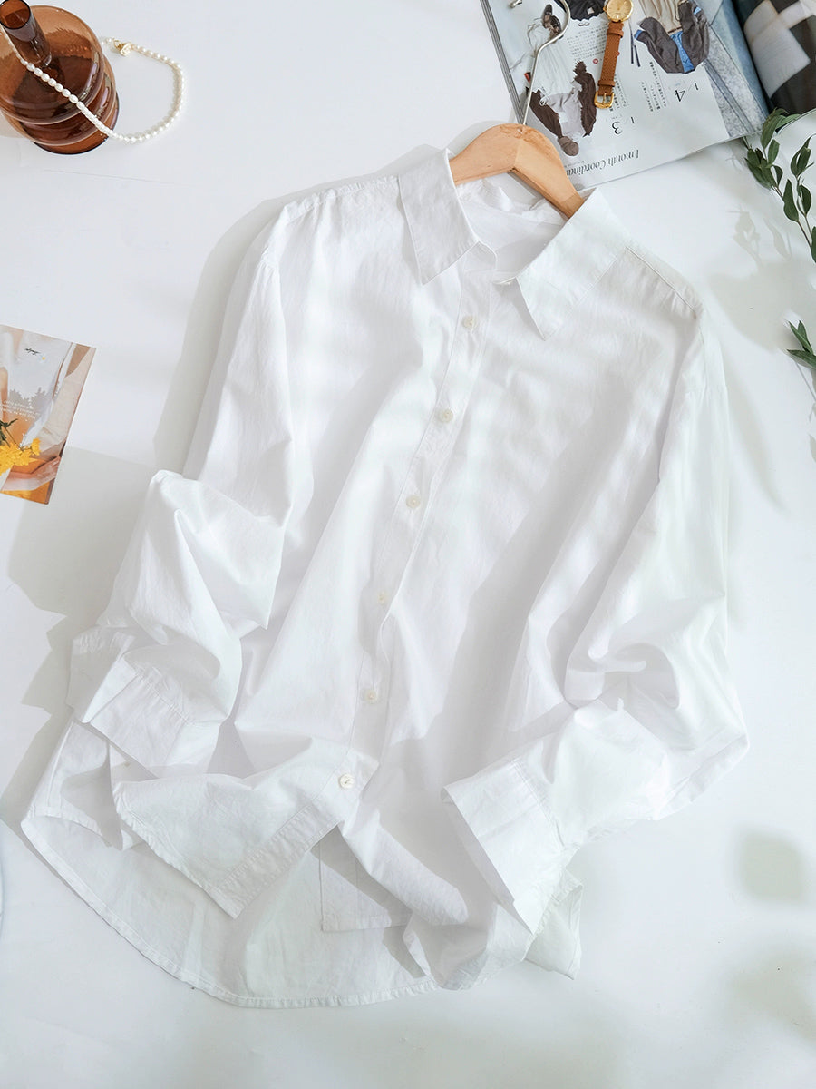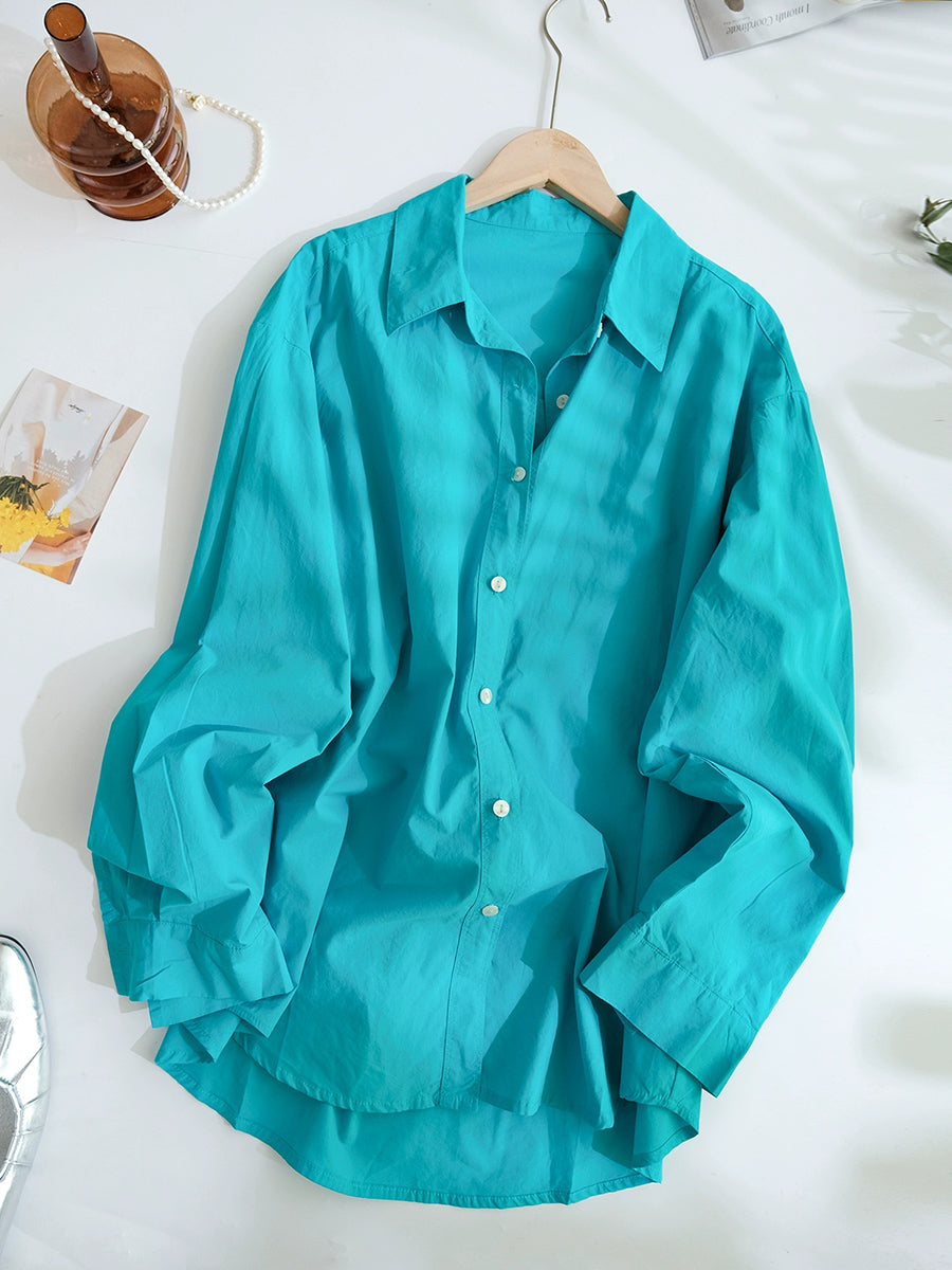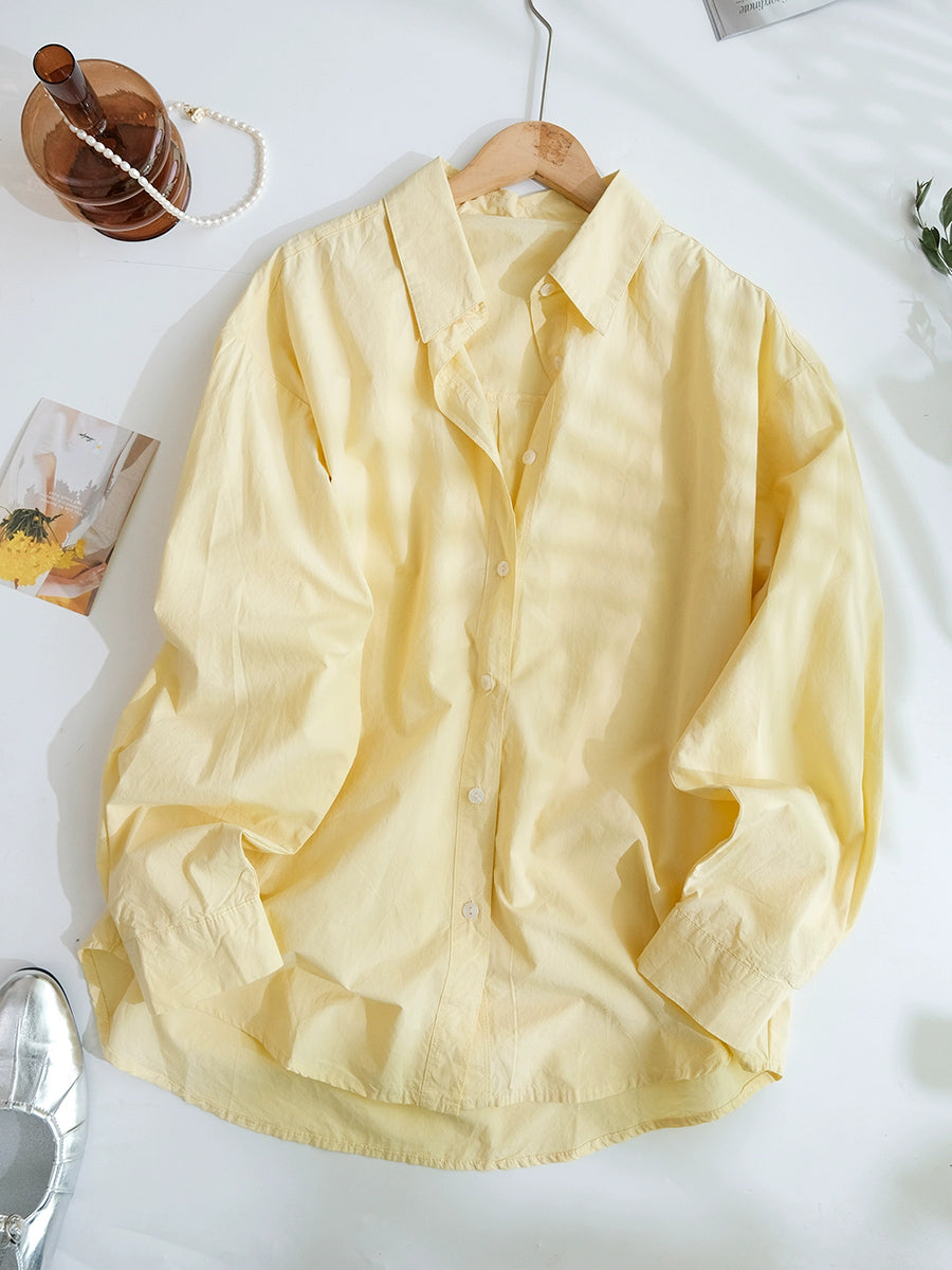 Forårsskjorte til kvinder i afslappet stil i ren farve, 100% bomuld