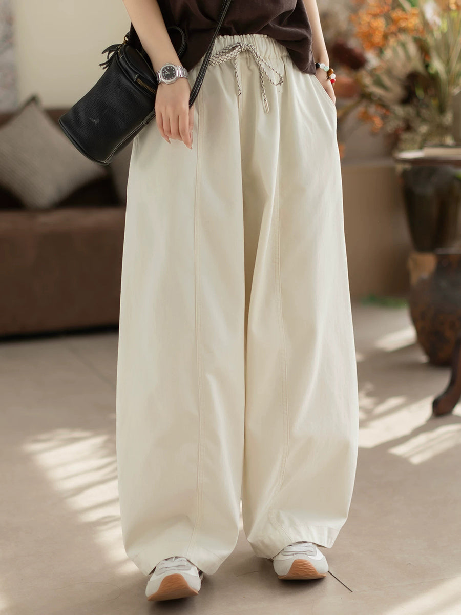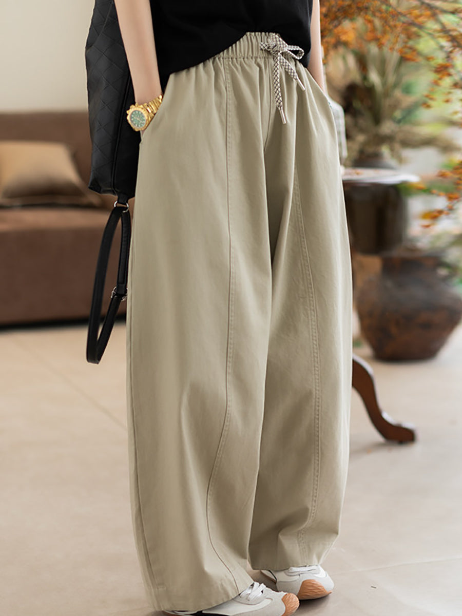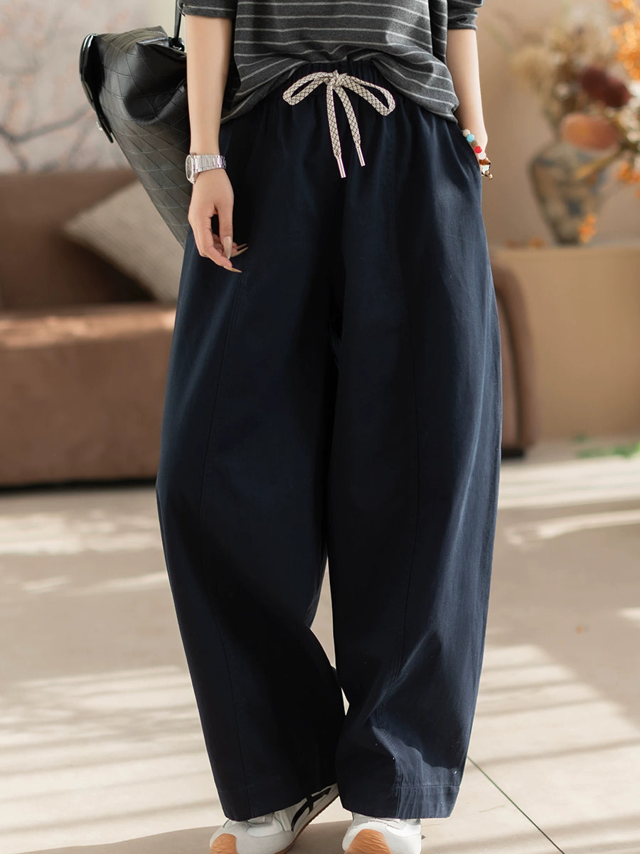 Kvinder Forårs Casual Ren Farve 100% Bomuld Lige Bukser