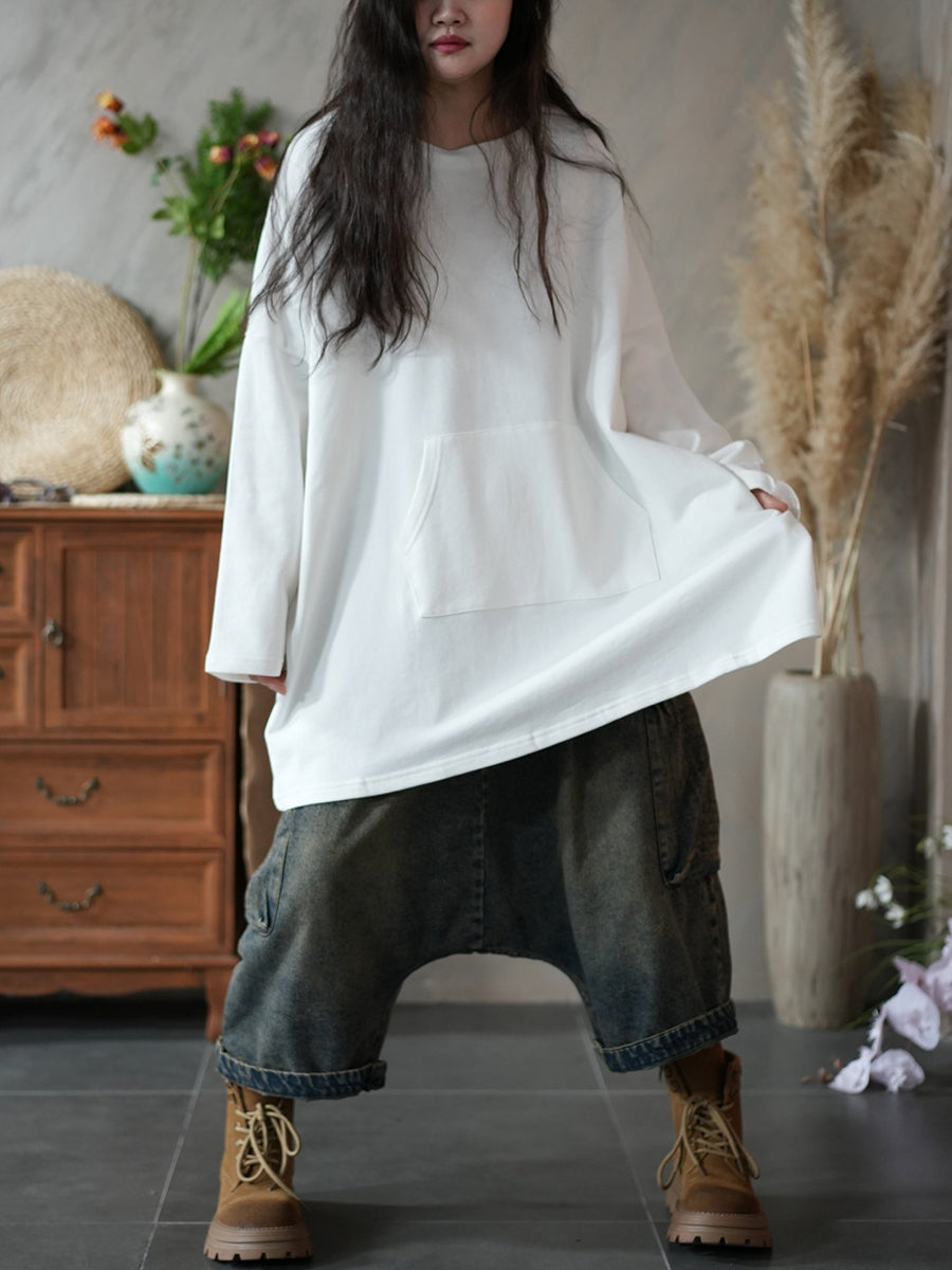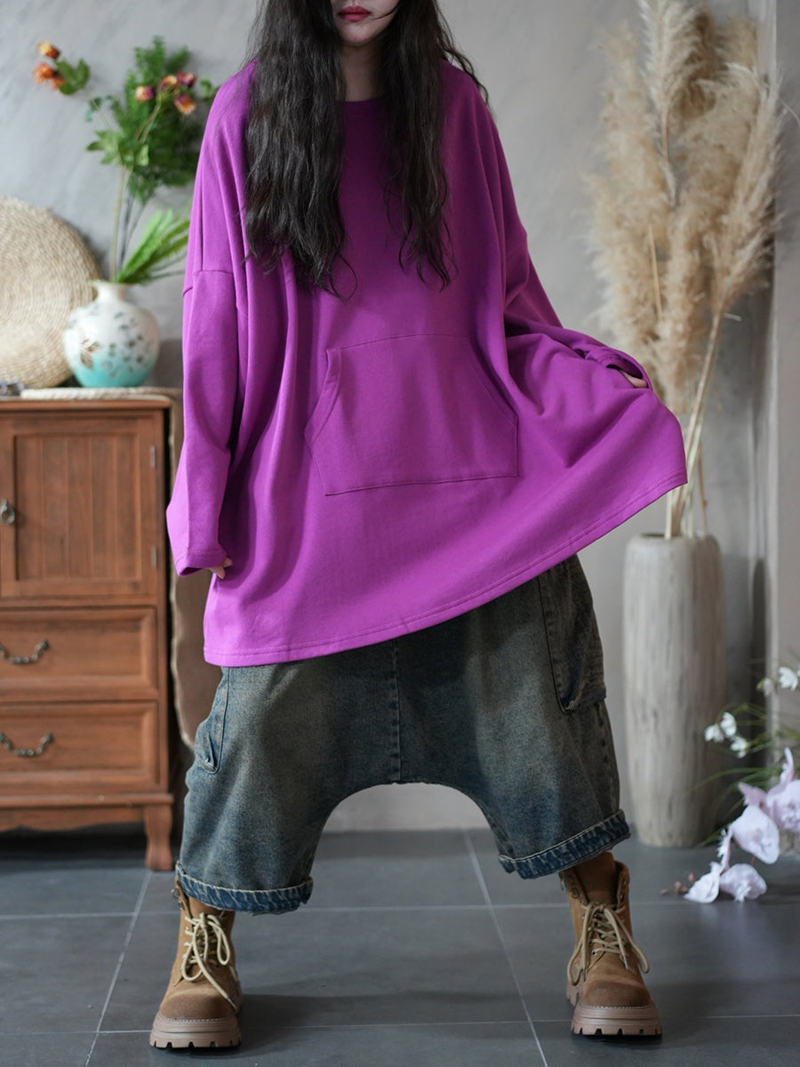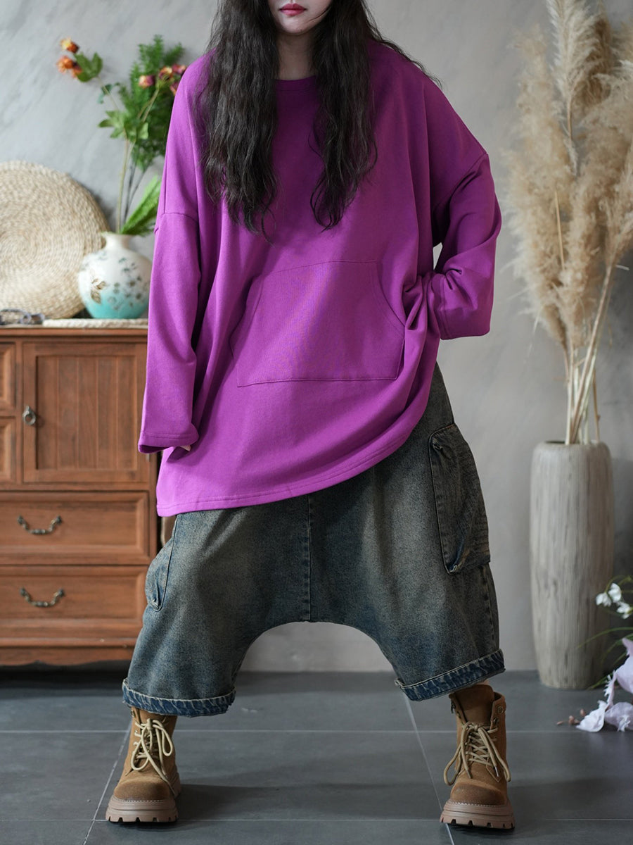 Kvinder Forårs Casual Ren Farve O-hals Bluse