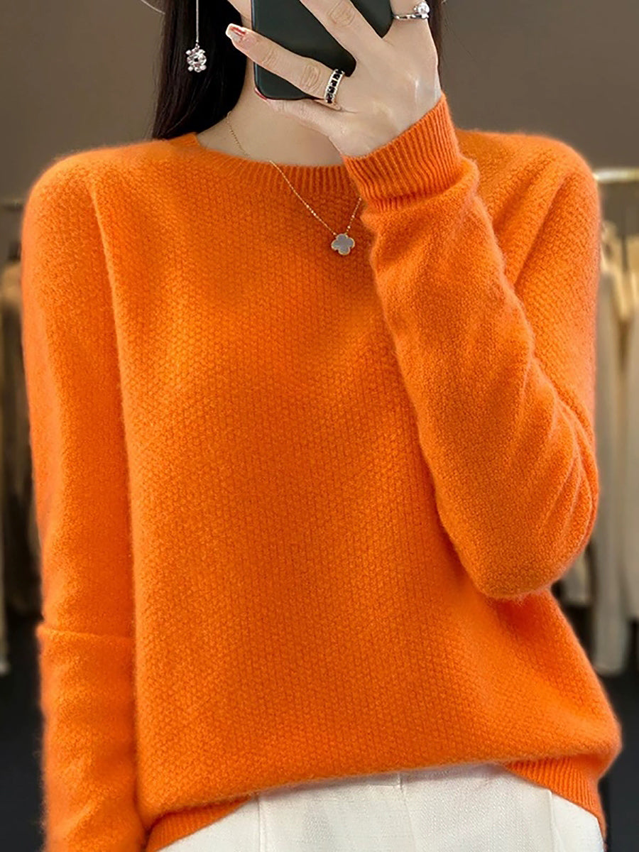 Kvinder Forårs Casual Ren Farve O-hals Sweater