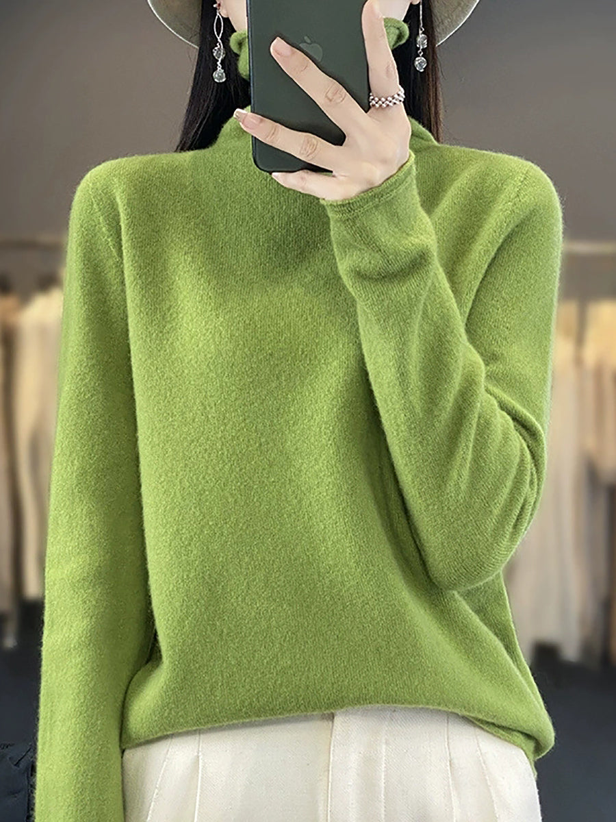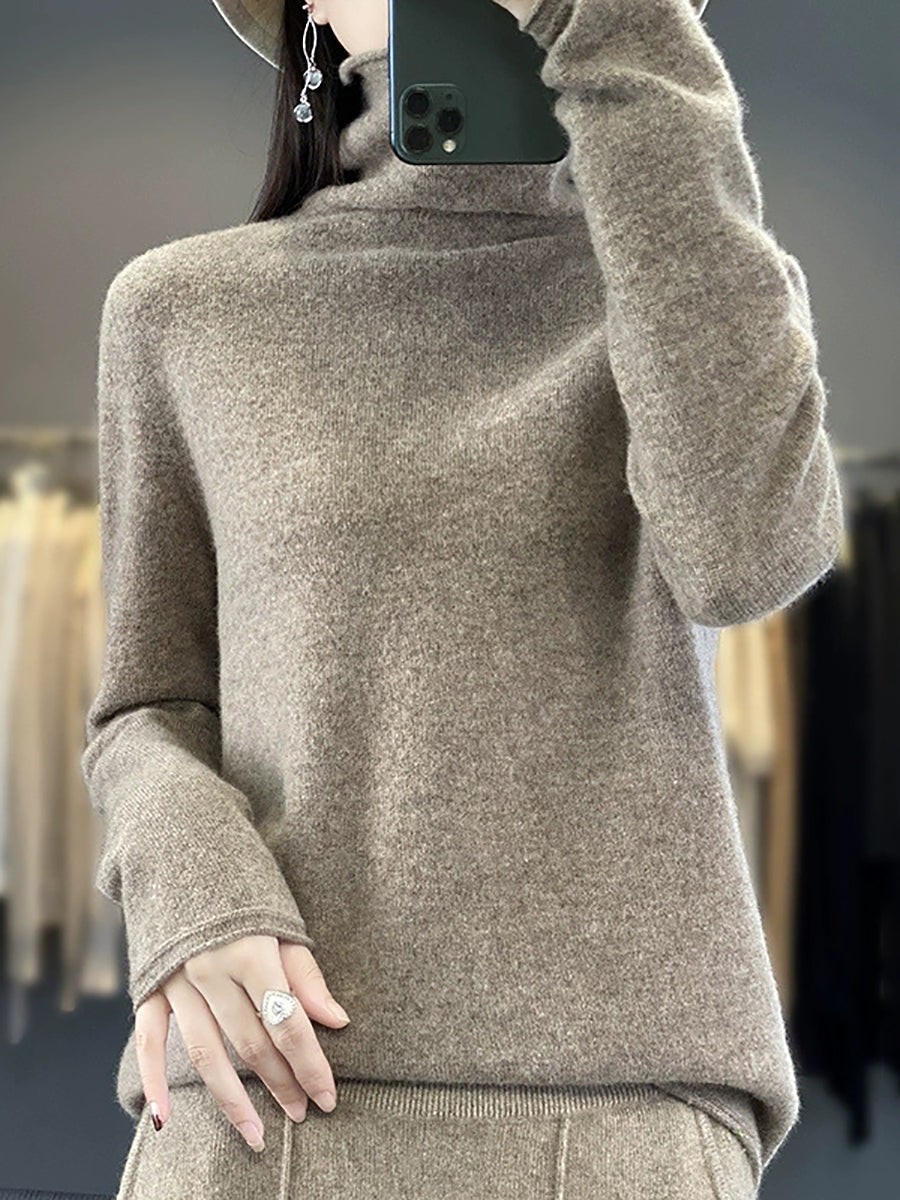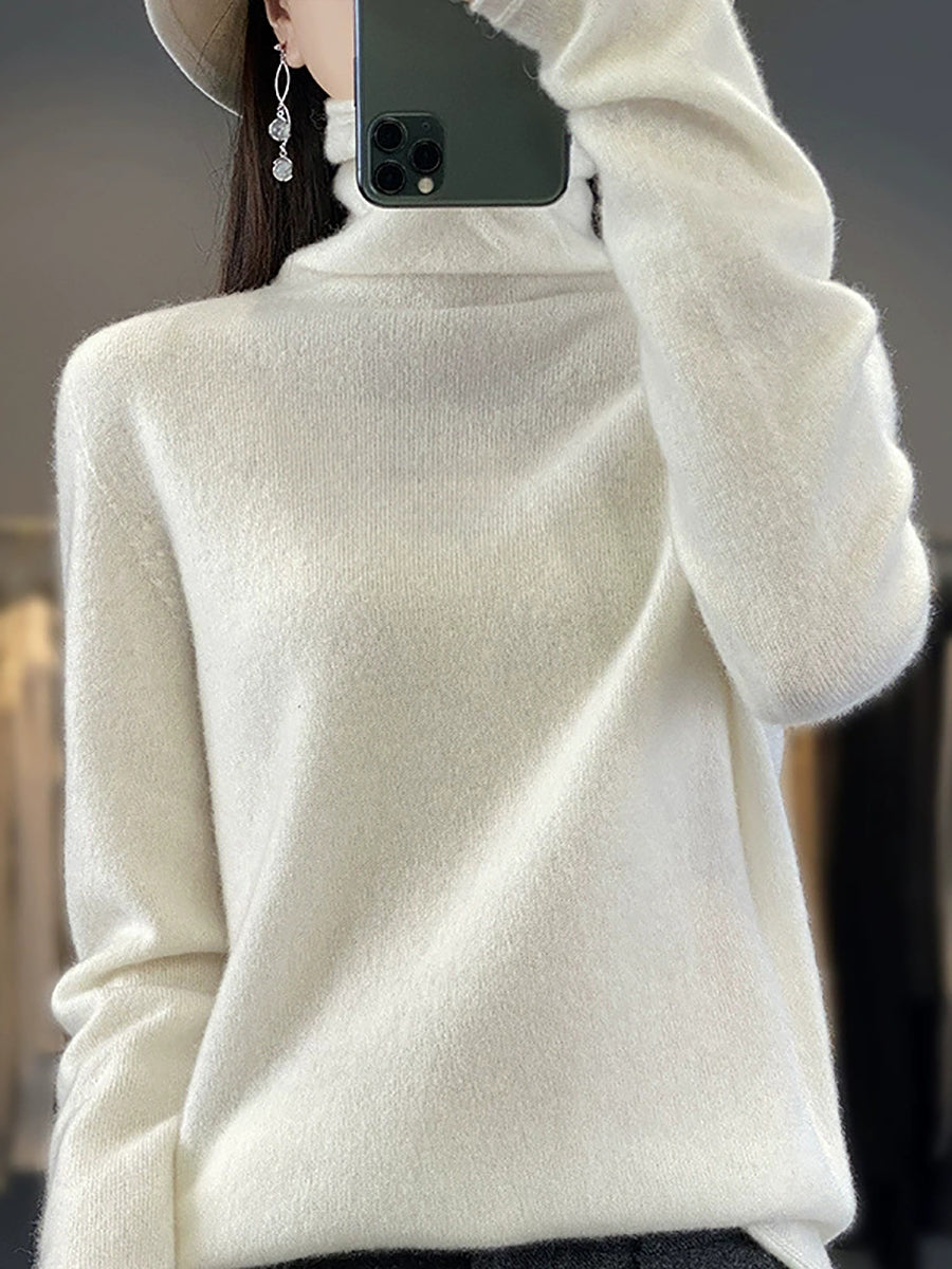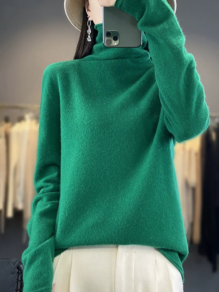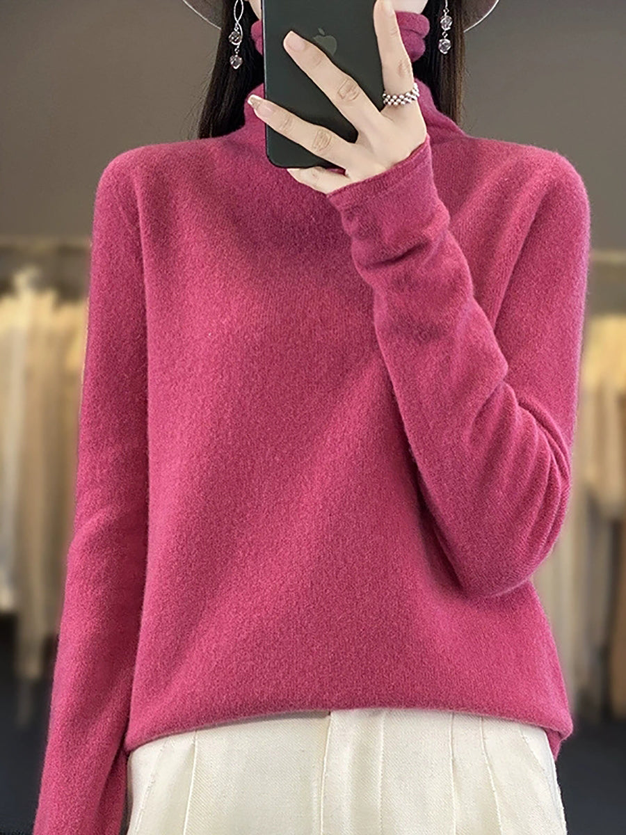 Kvinder Forår Casual Ren Farve Rullekravetrøje Uld