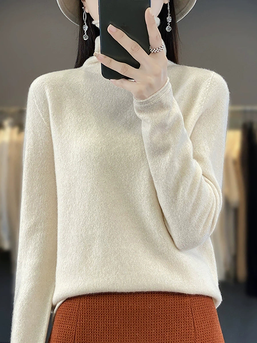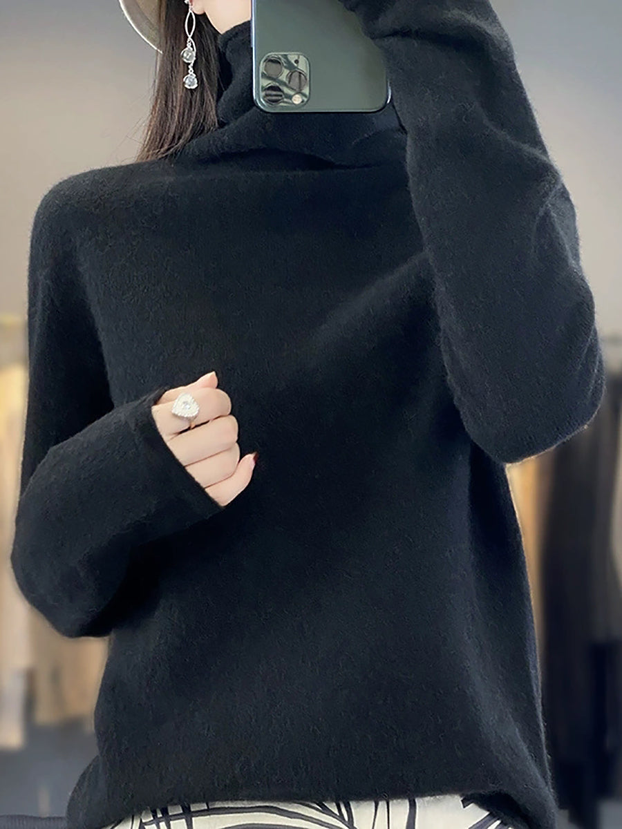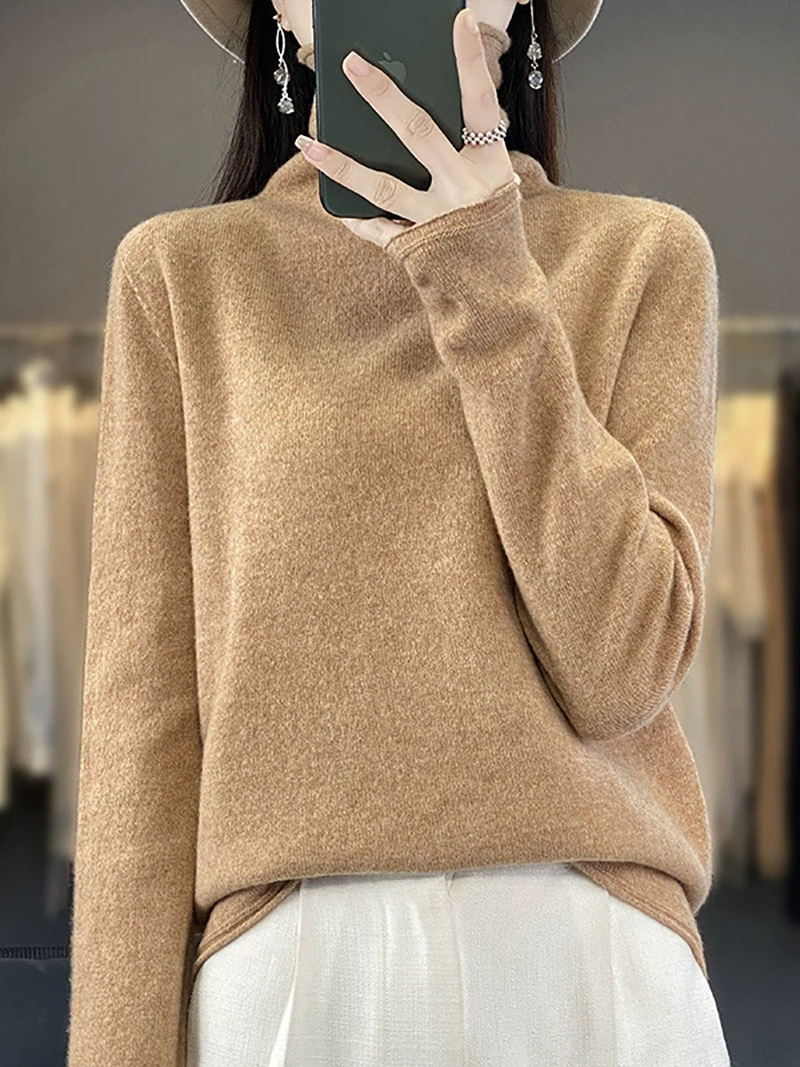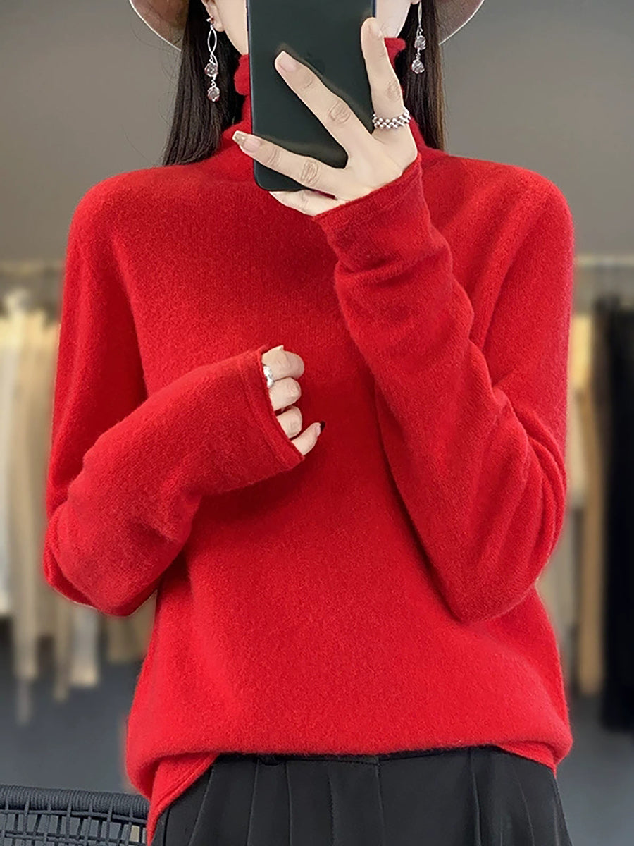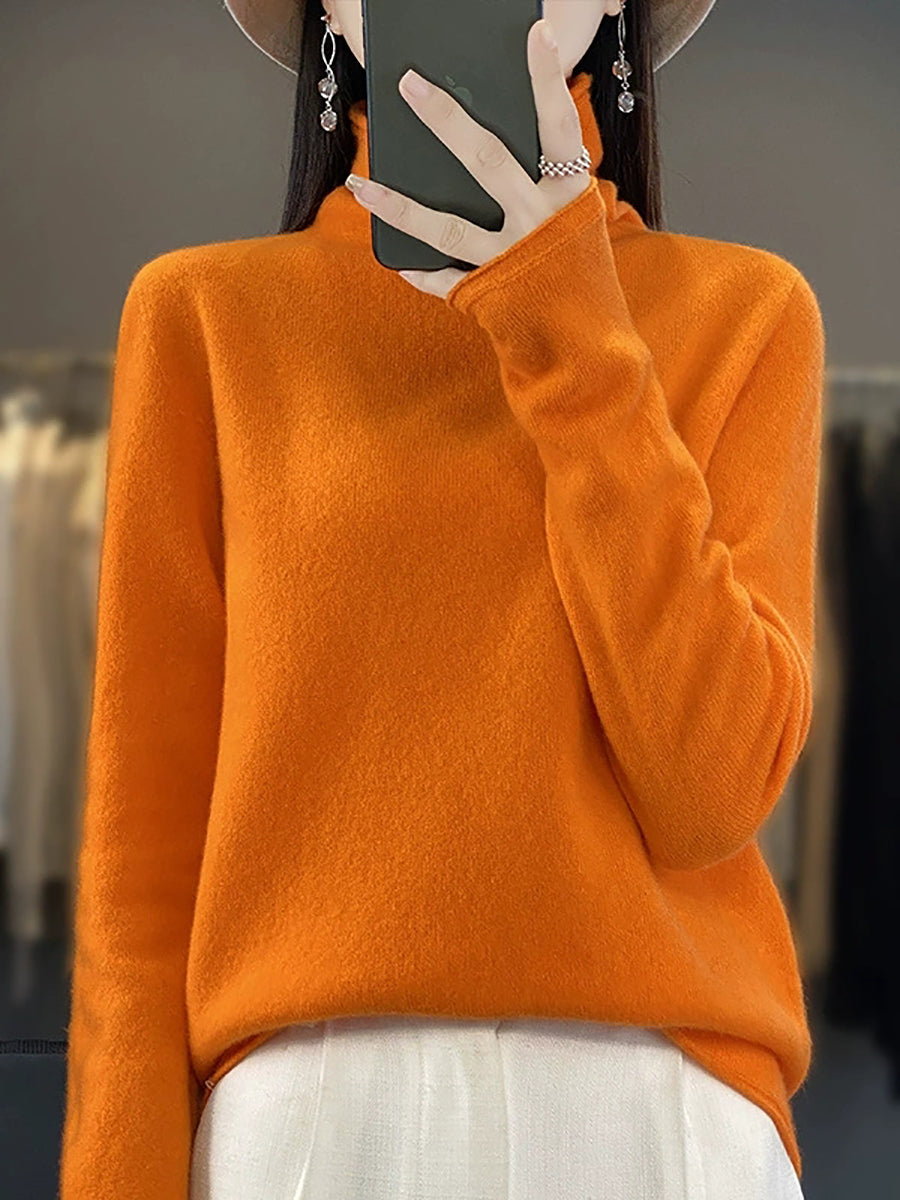 Kvinder Forår Casual Ren Farve Rullekravetrøje Uld