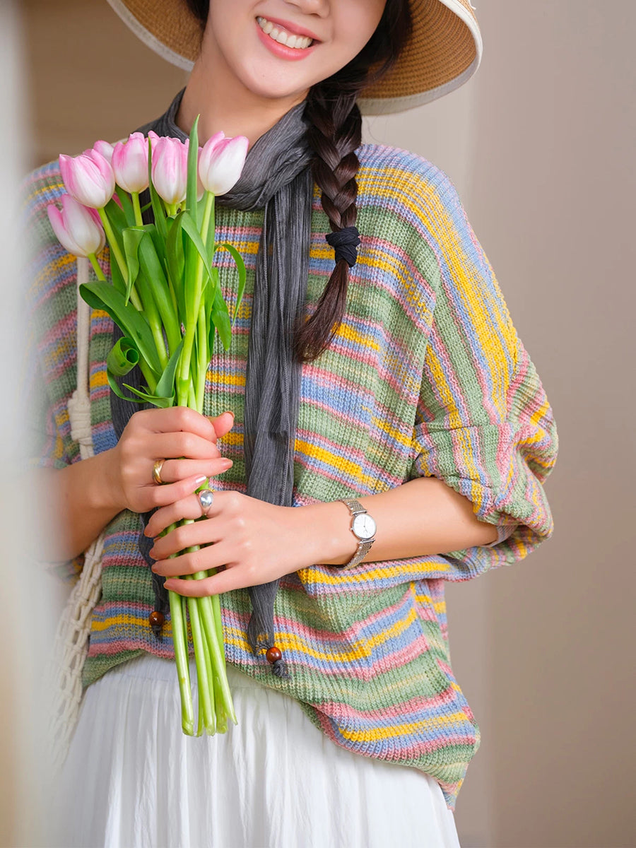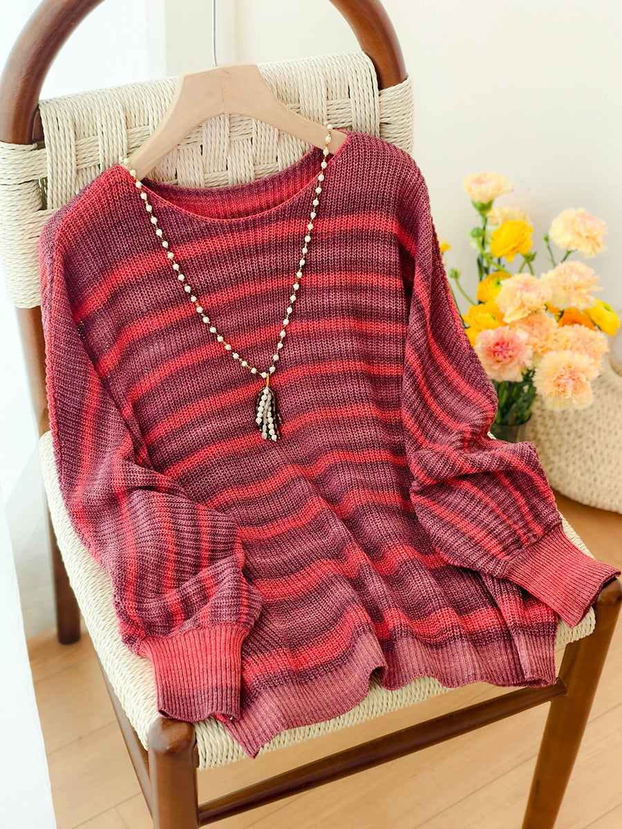 Kvinder Forår Casual Stribet Strikket O-Hals Bluse