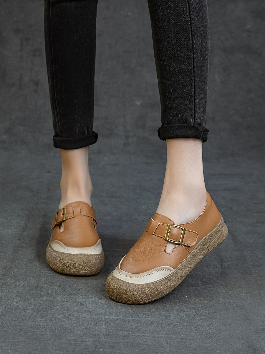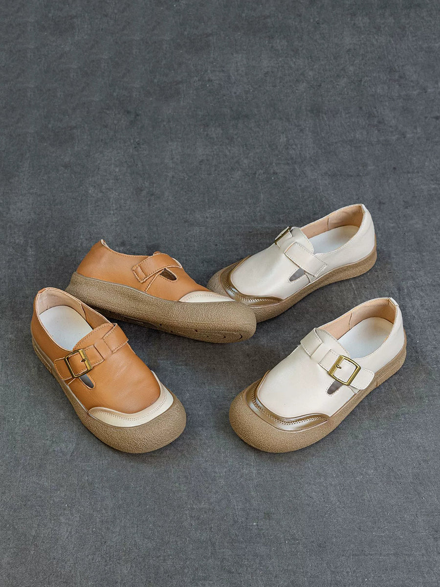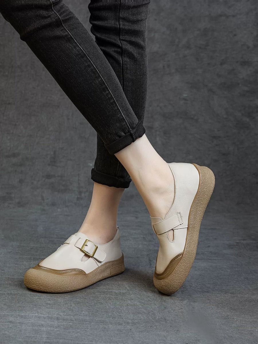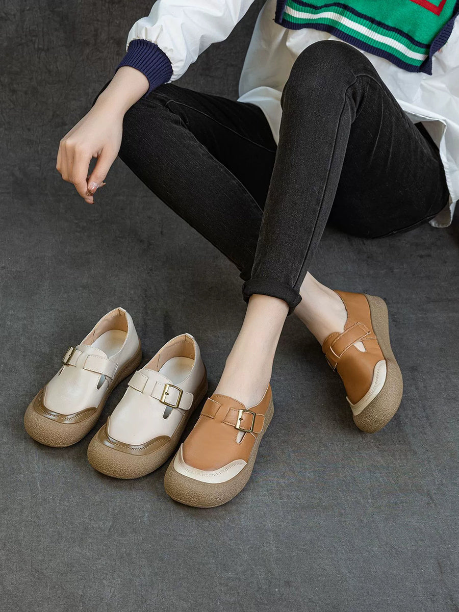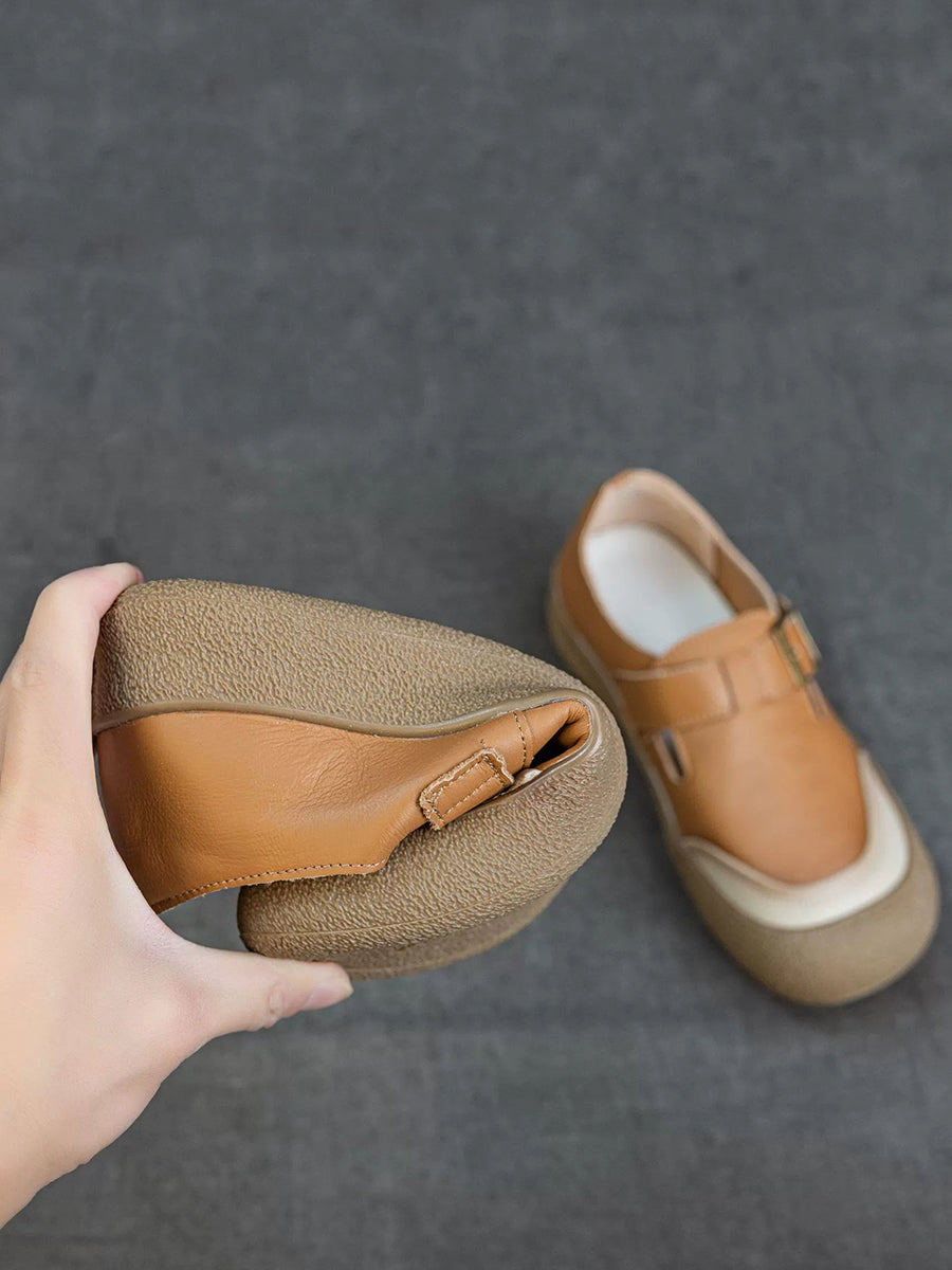 Kvinder Forårsfarveblok Flade Sko i Ægte Læder
