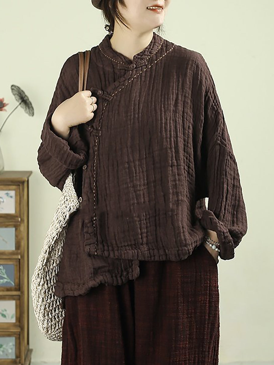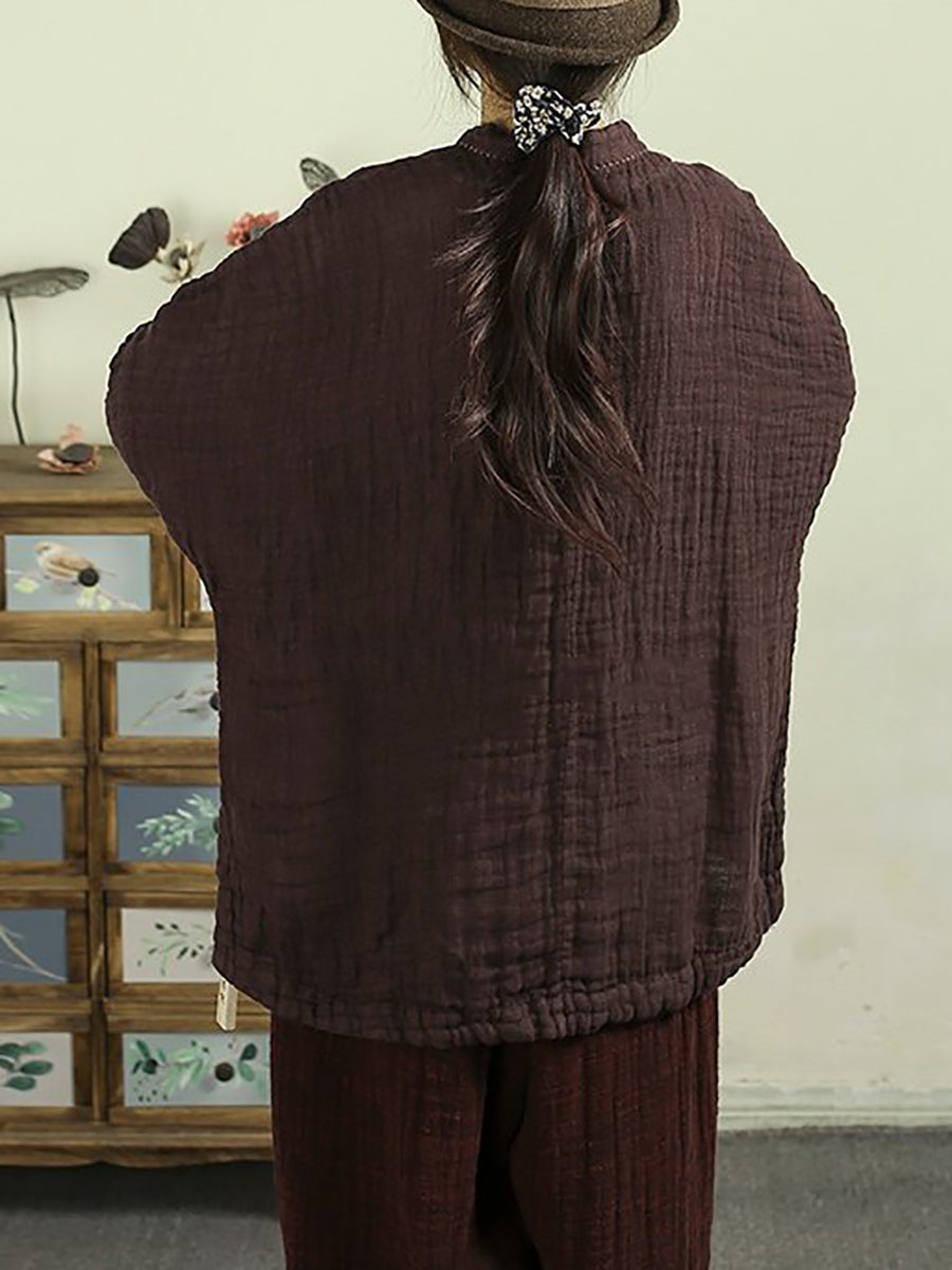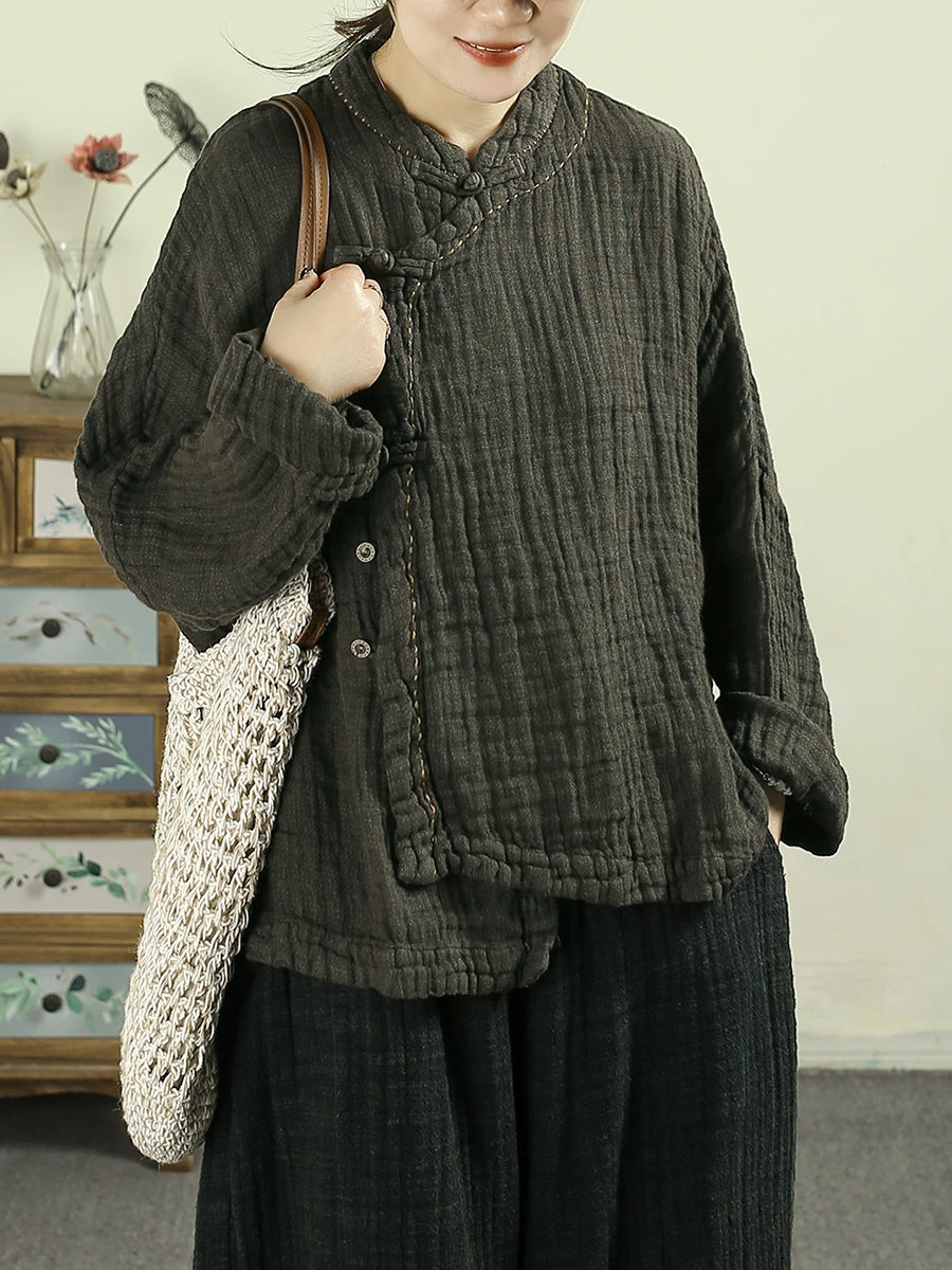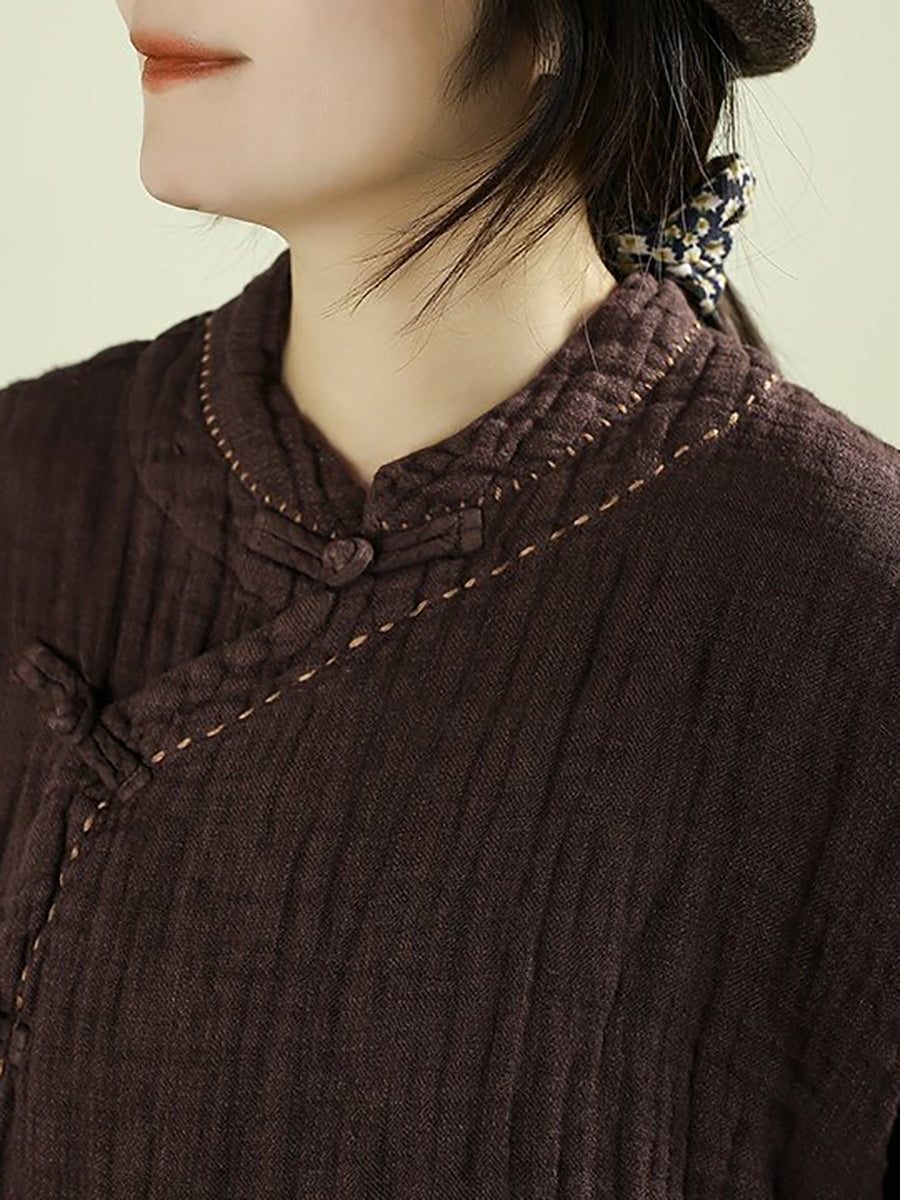 Kvinder Forår Etnisk Ren Farve Standkrave 100% Hørfrakke
