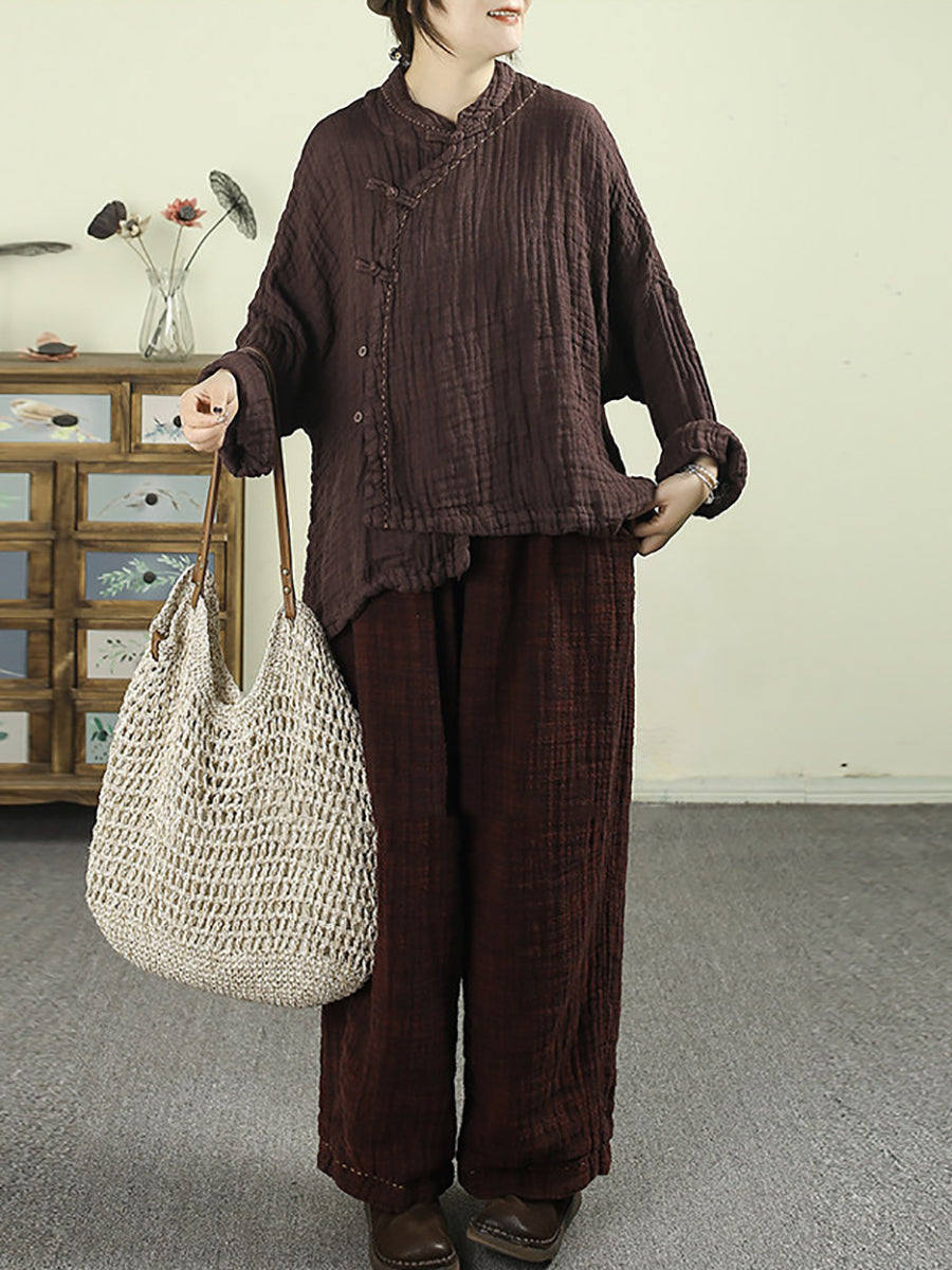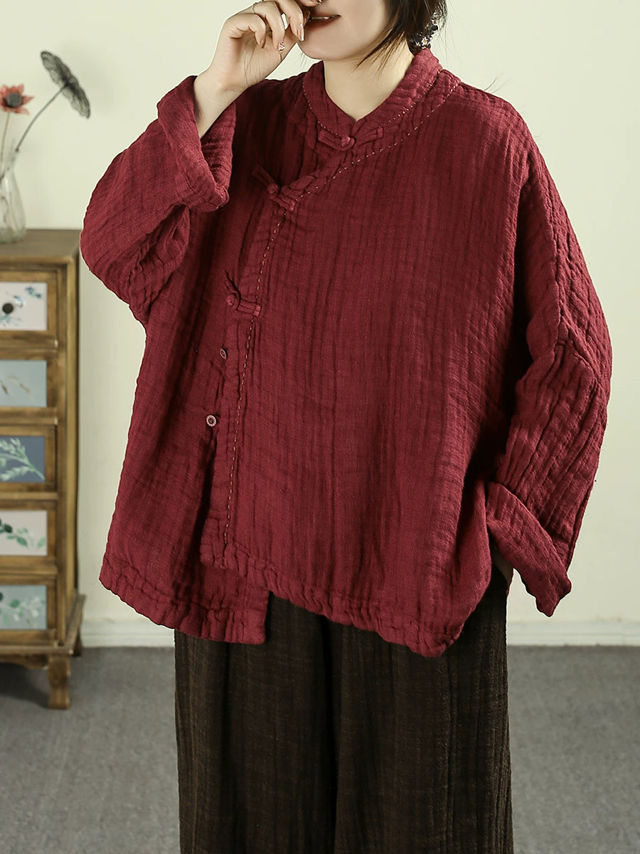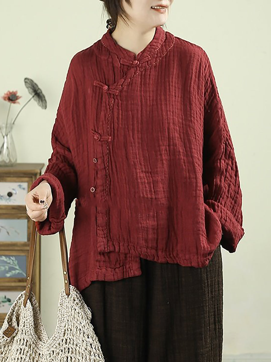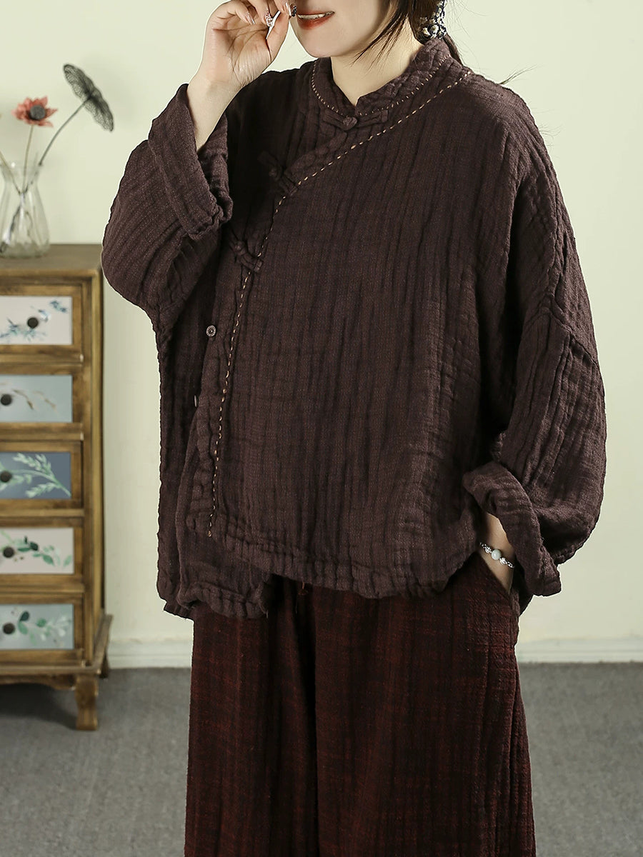 Kvinder Forår Etnisk Ren Farve Standkrave 100% Hørfrakke