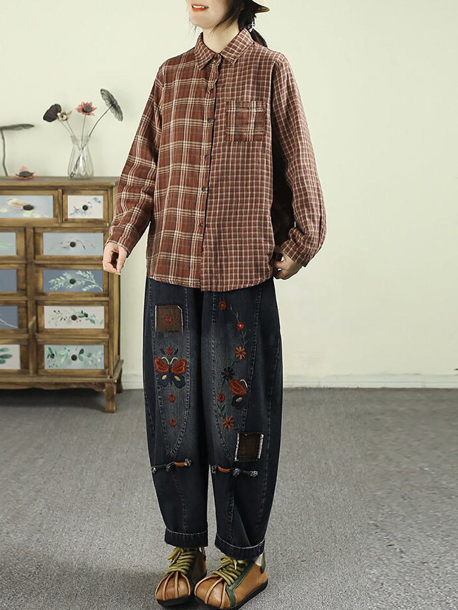 Kvinder Forårsblomst Broderi Denim Harem Bukser