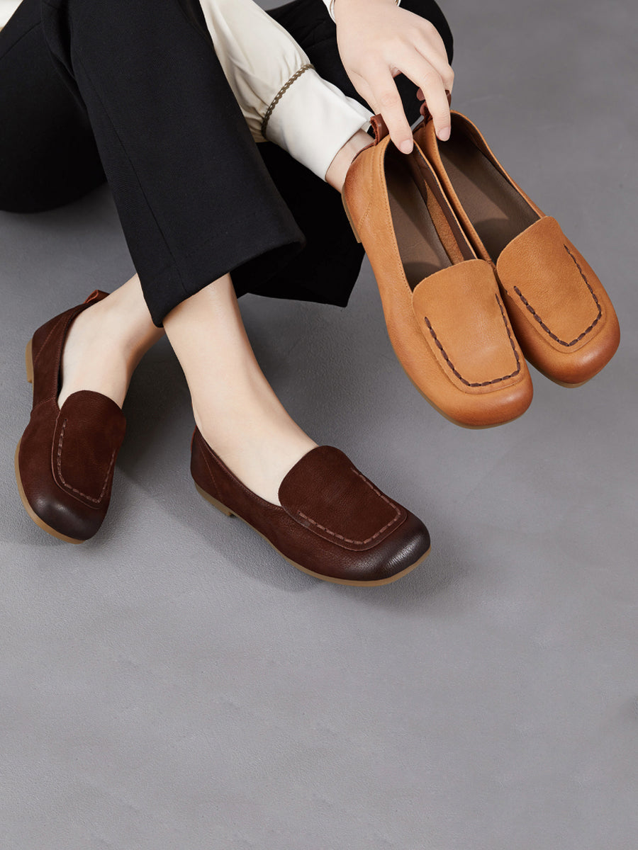 Kvinder Forårssko i ægte læder med firkantet tå