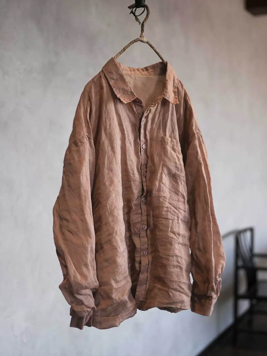 Forårsskjorte med ramie og nedadgående krave til kvinder i ren farve