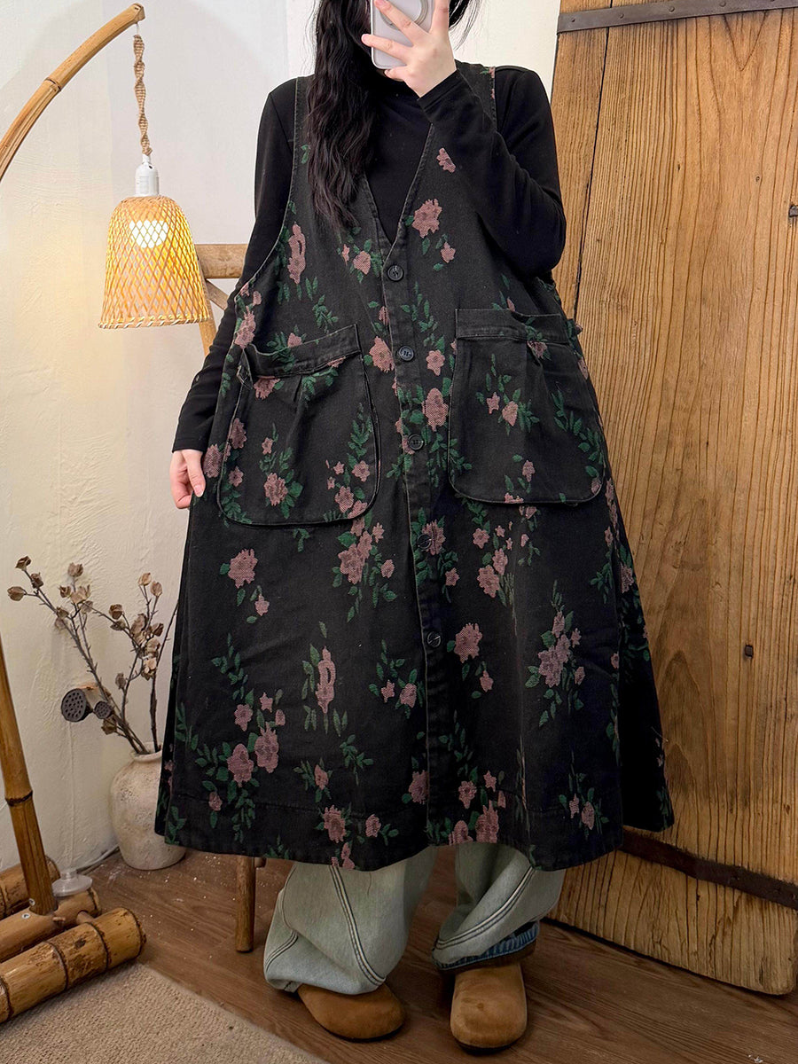 Denne ankellange vestkjole er fremstillet af bomuld og har et karakteristisk prikmønster og et kunstnerisk design. Den er ideel til efterår og vinter og kombinerer komfort med kreativ stil.
