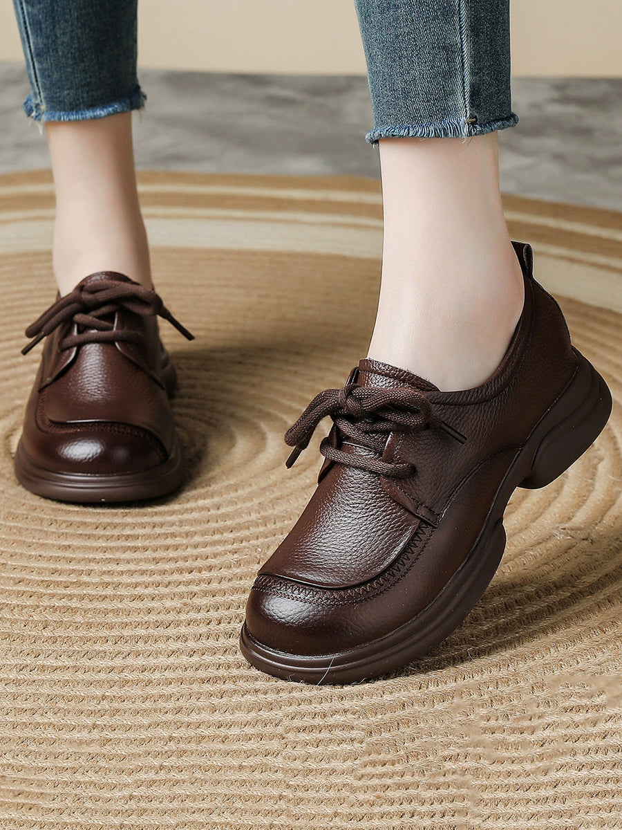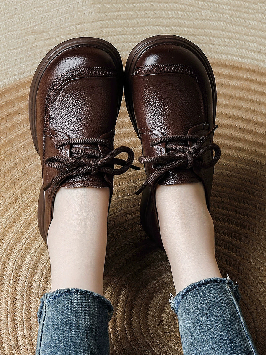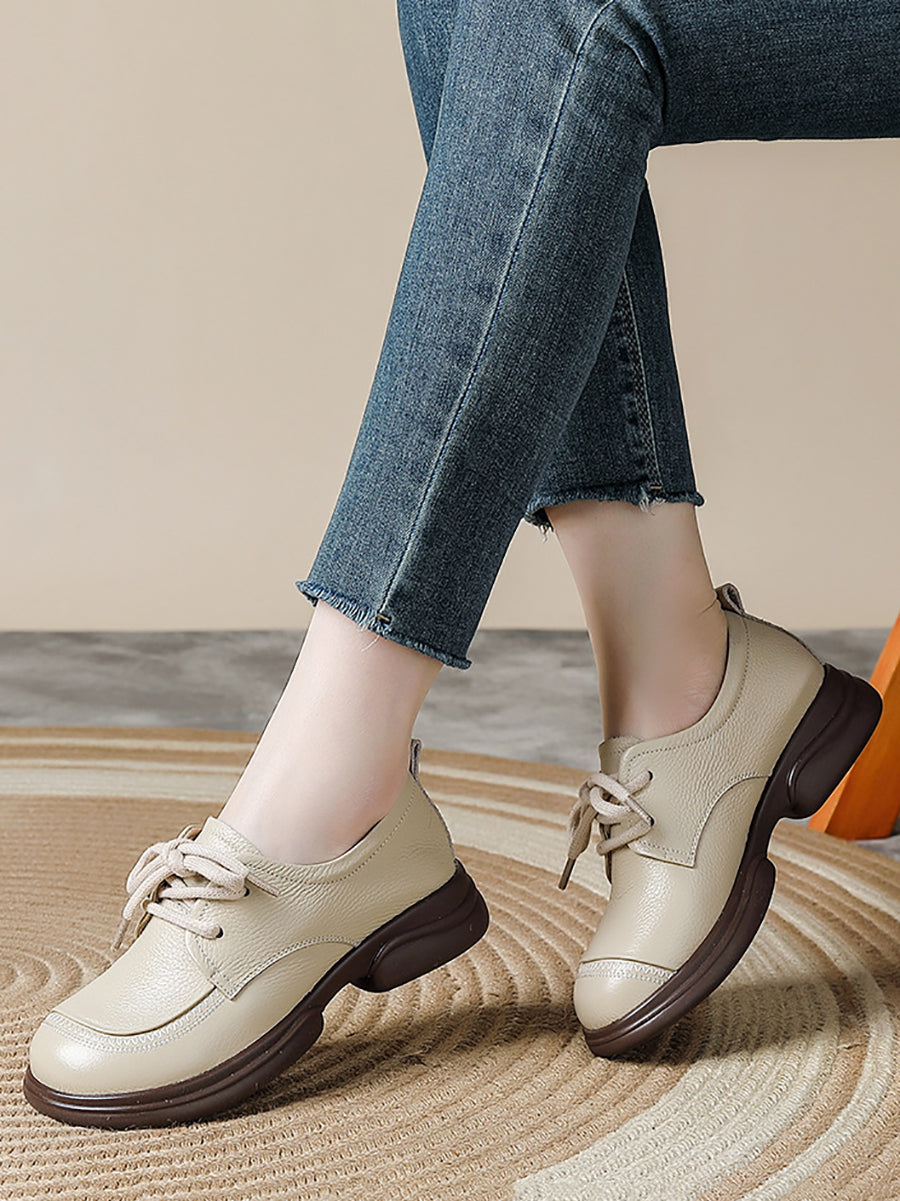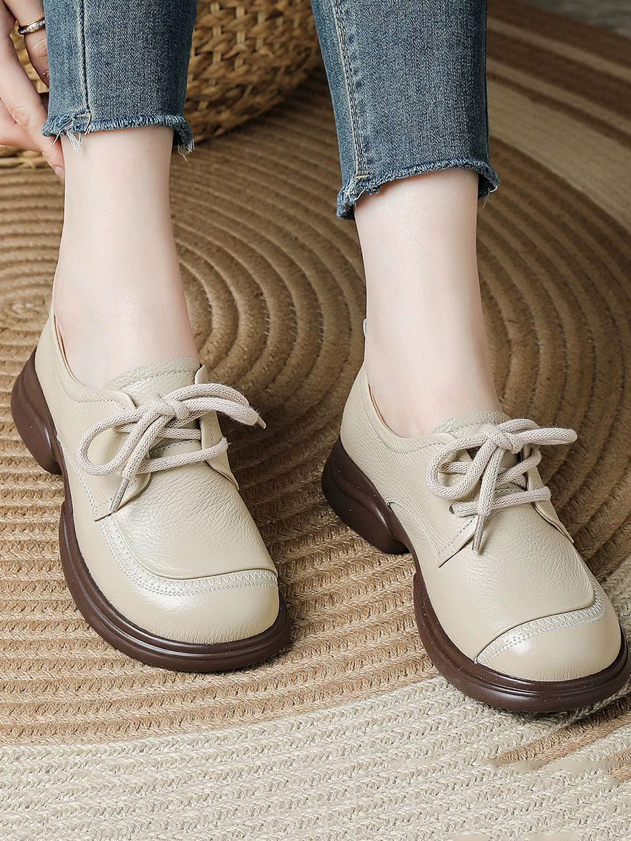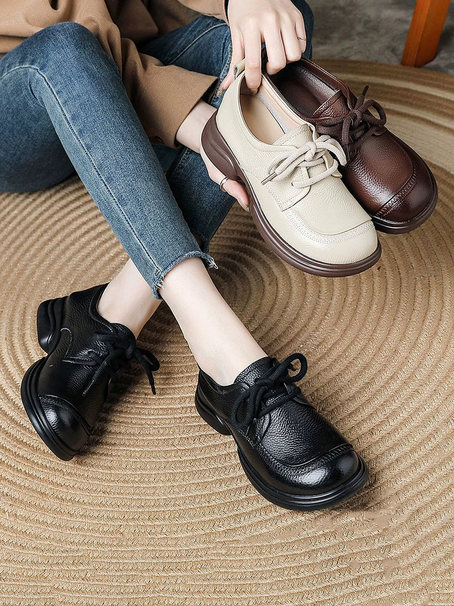 Kvinder Forår Retro Ægte Læder Lavhælede Sko