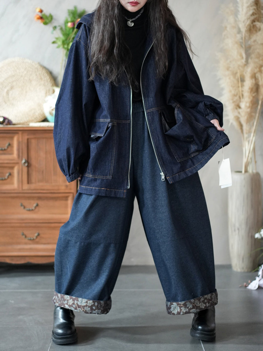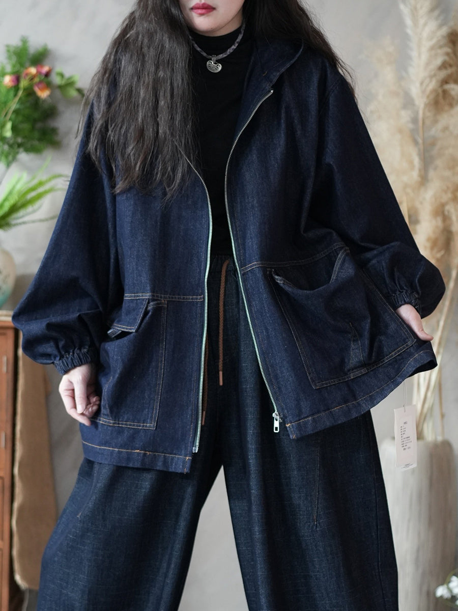 Kvinder Forår Retro Ren Farve Denim Hættetrøje