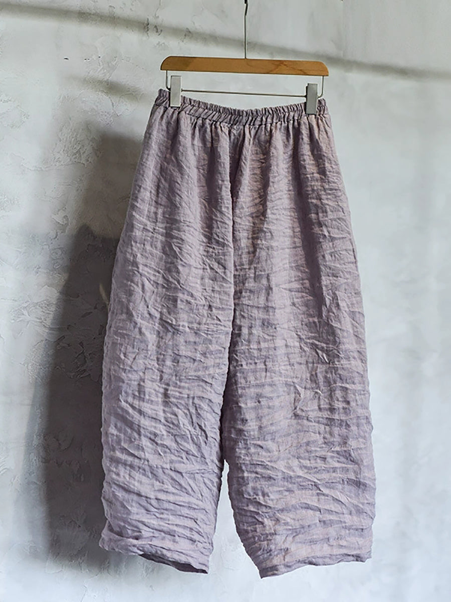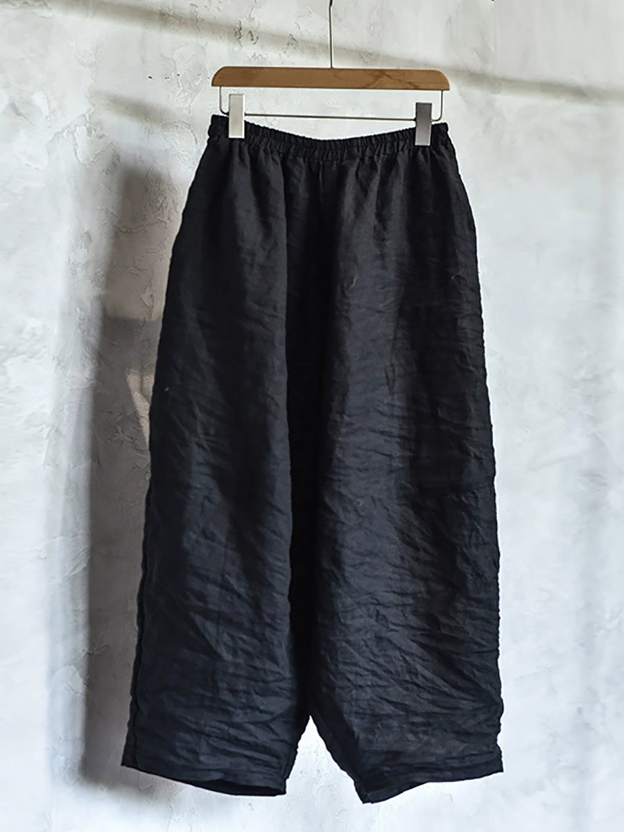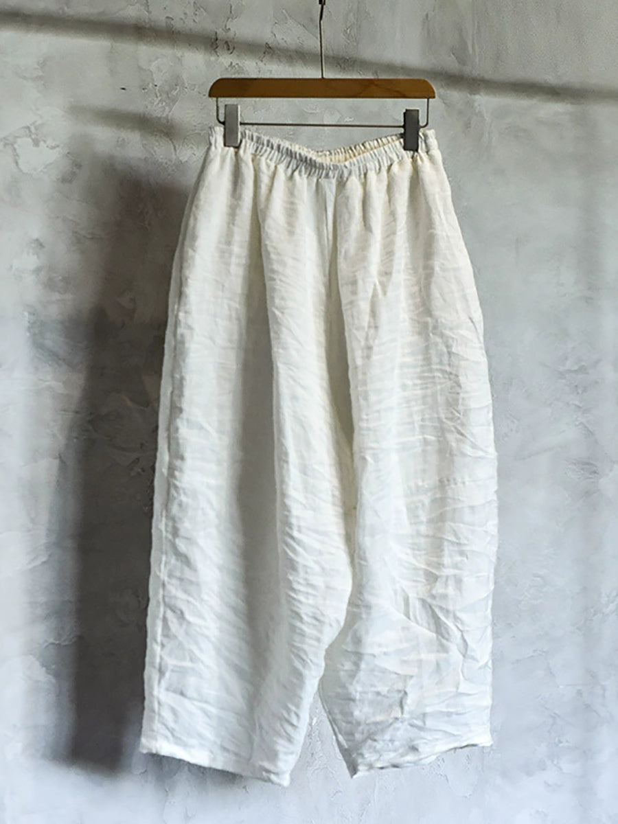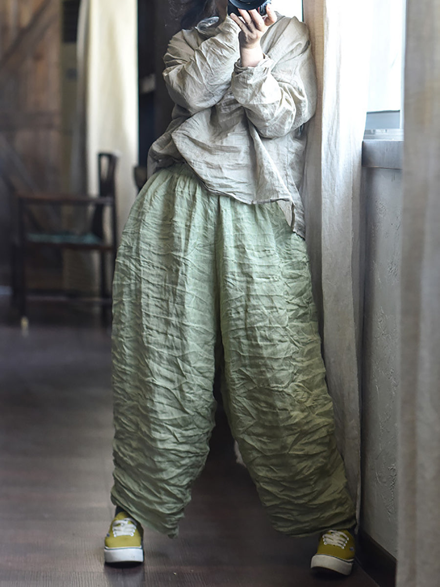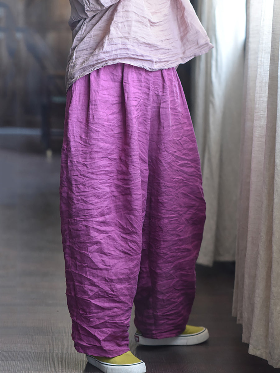 Kvinder Forår Retro Ren Farve Hør Bukser Med Brede Ben