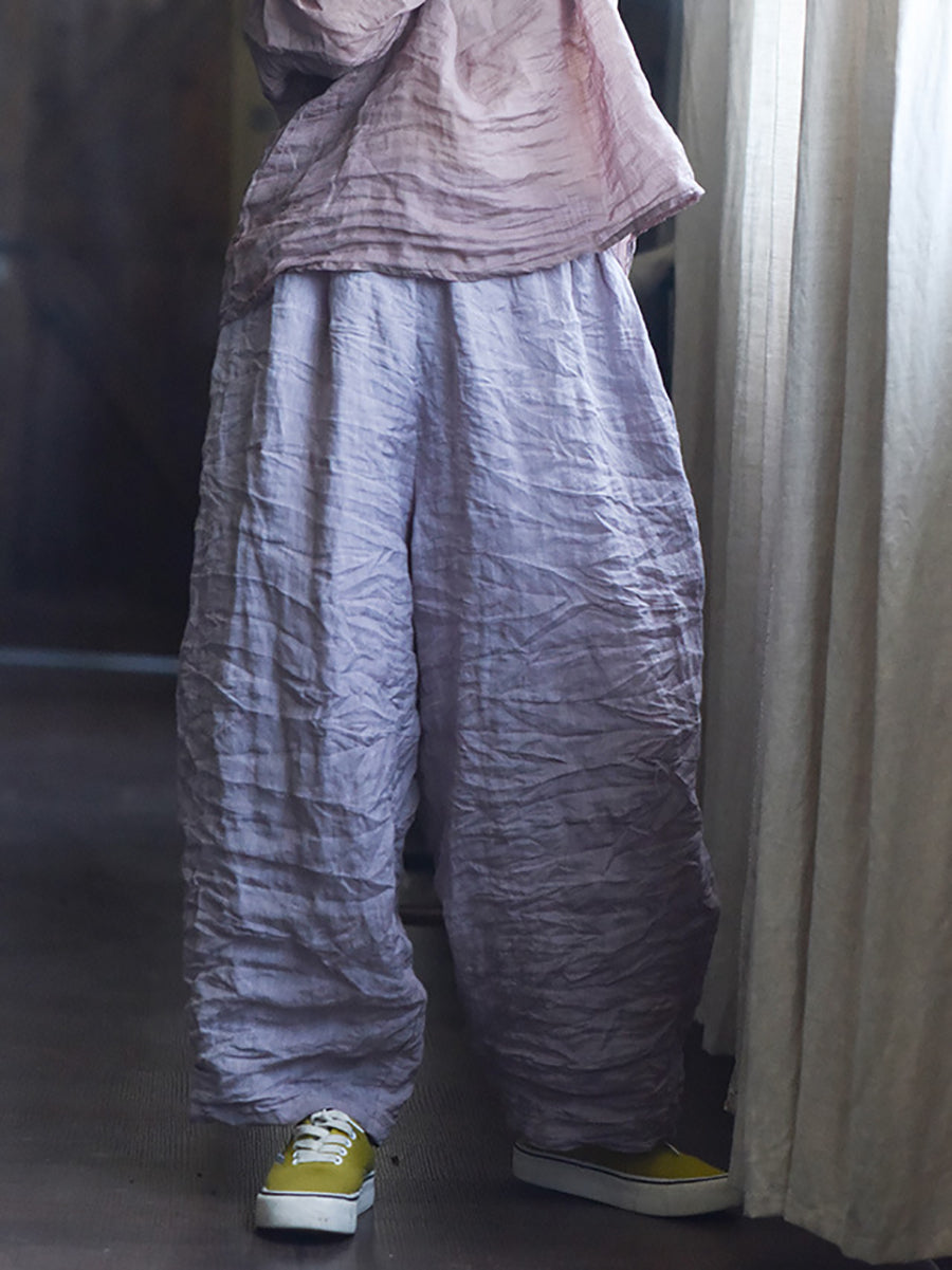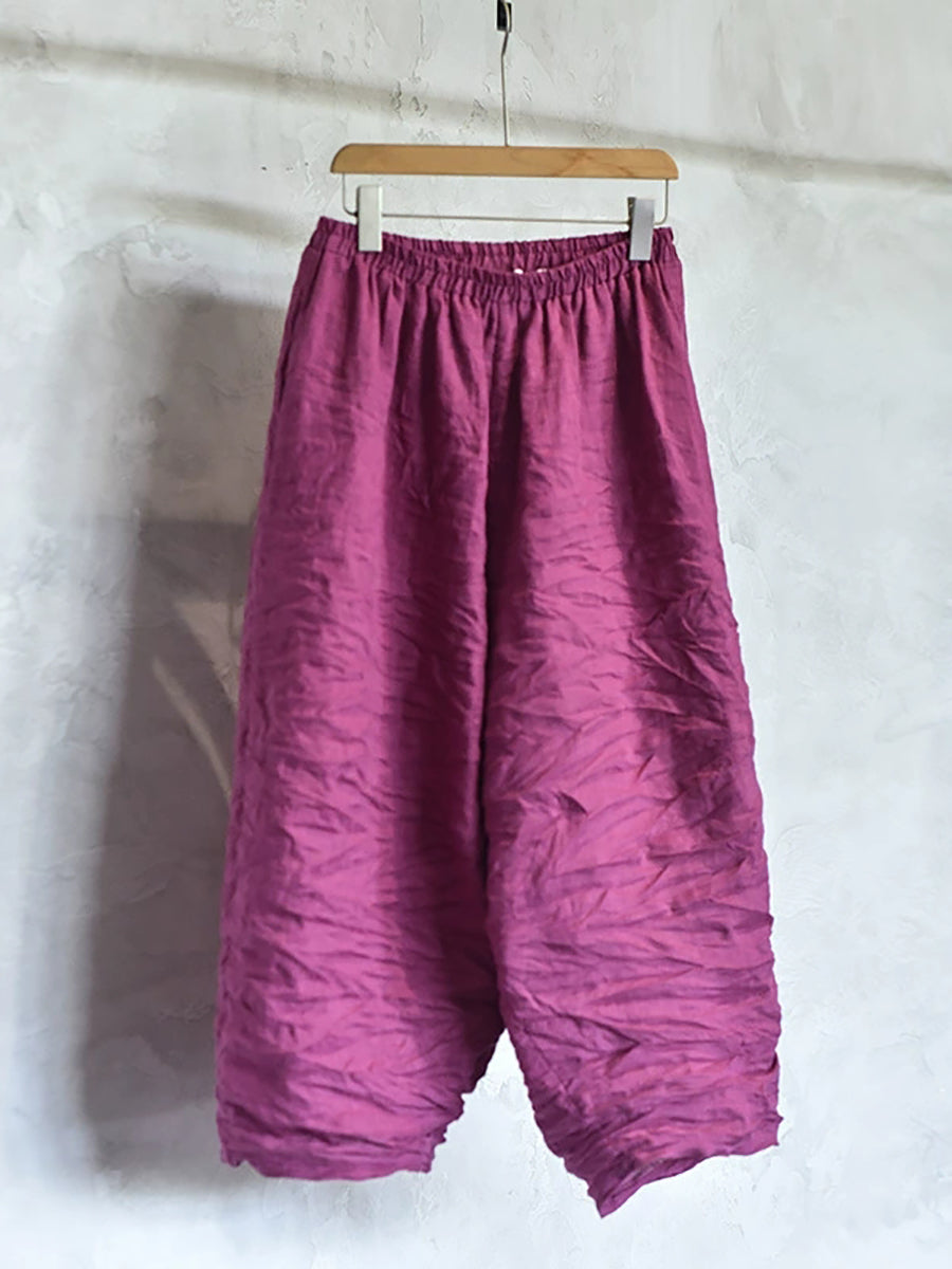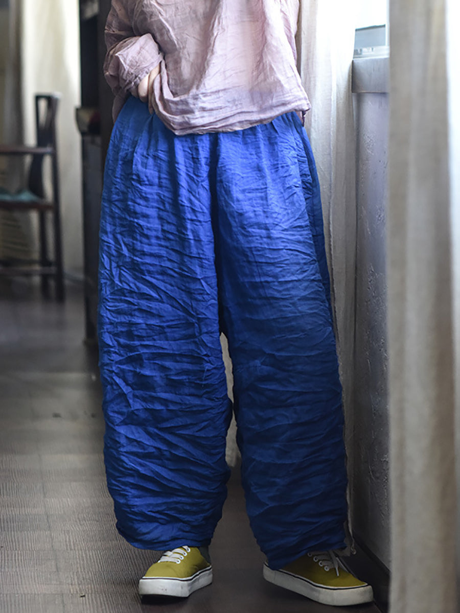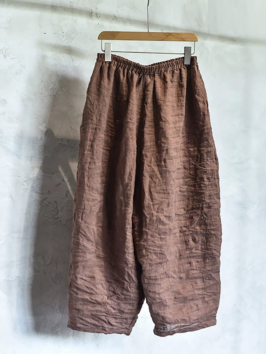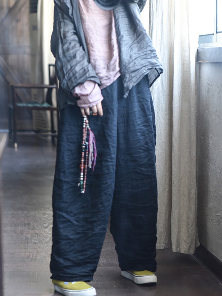 Kvinder Forår Retro Ren Farve Hør Bukser Med Brede Ben