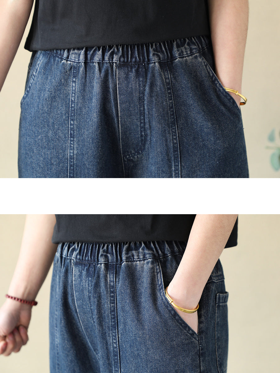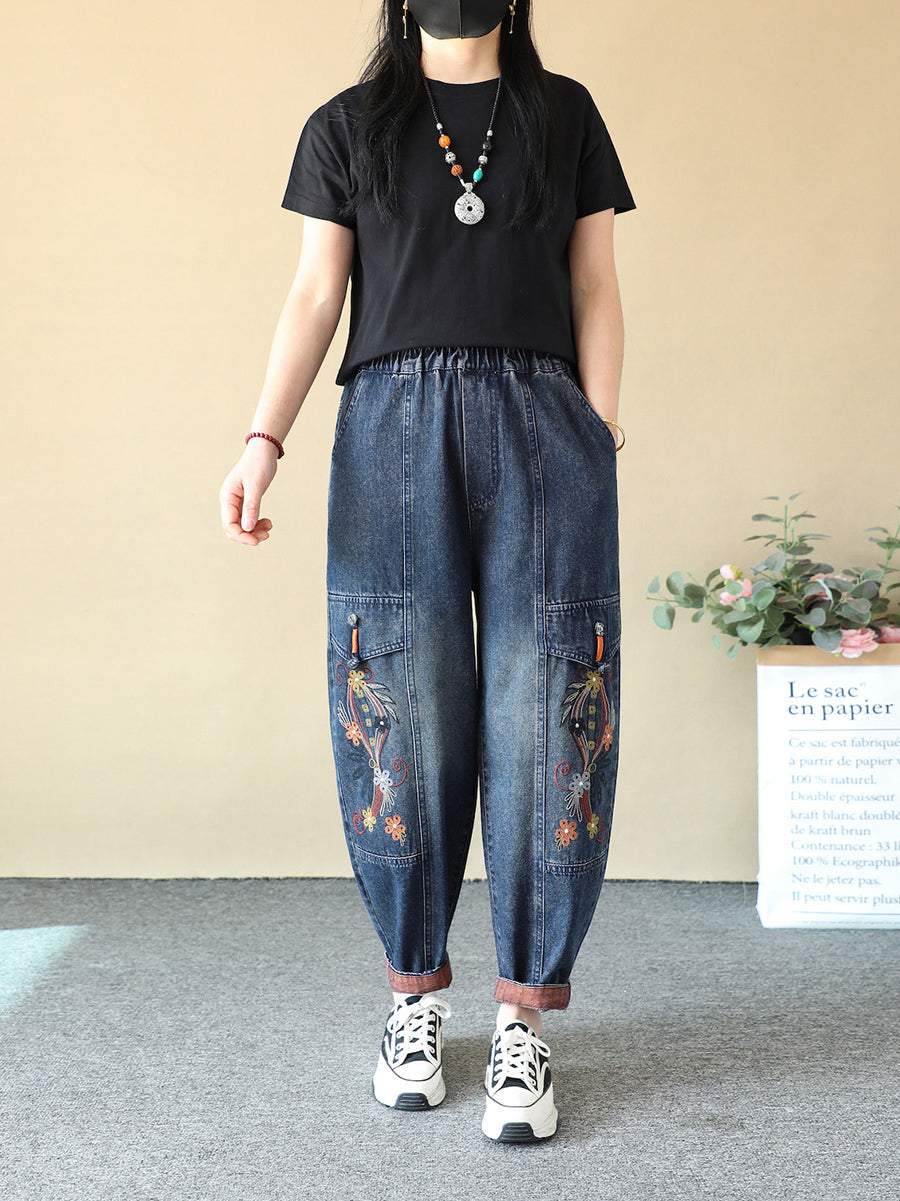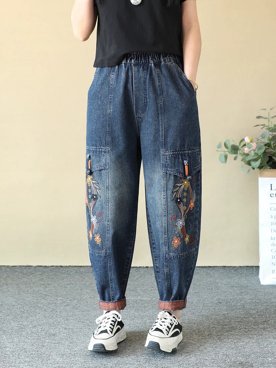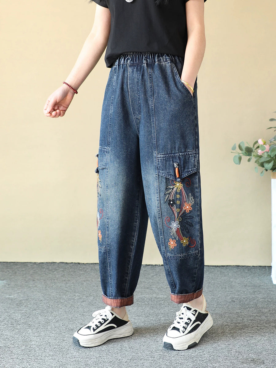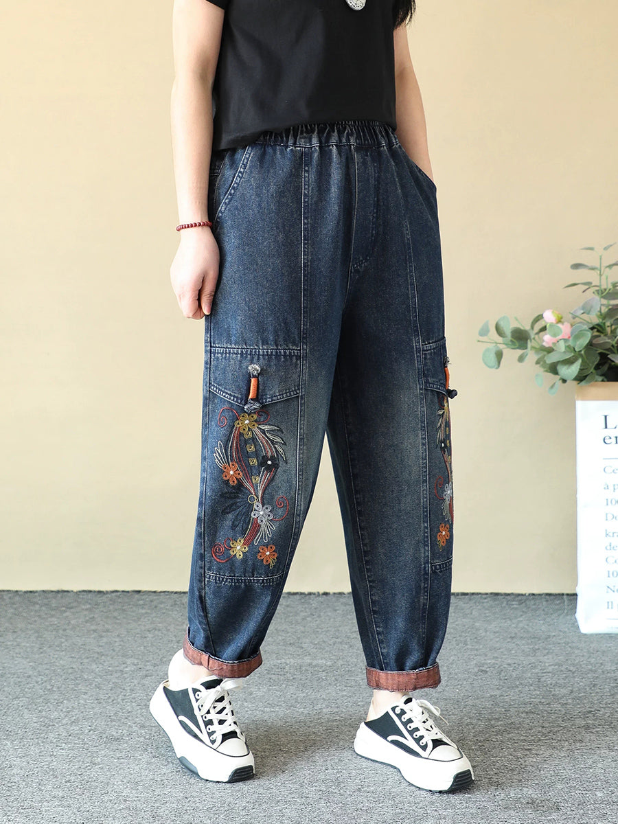 Kvinder Forår Vintage Denim Broderi Harembukser