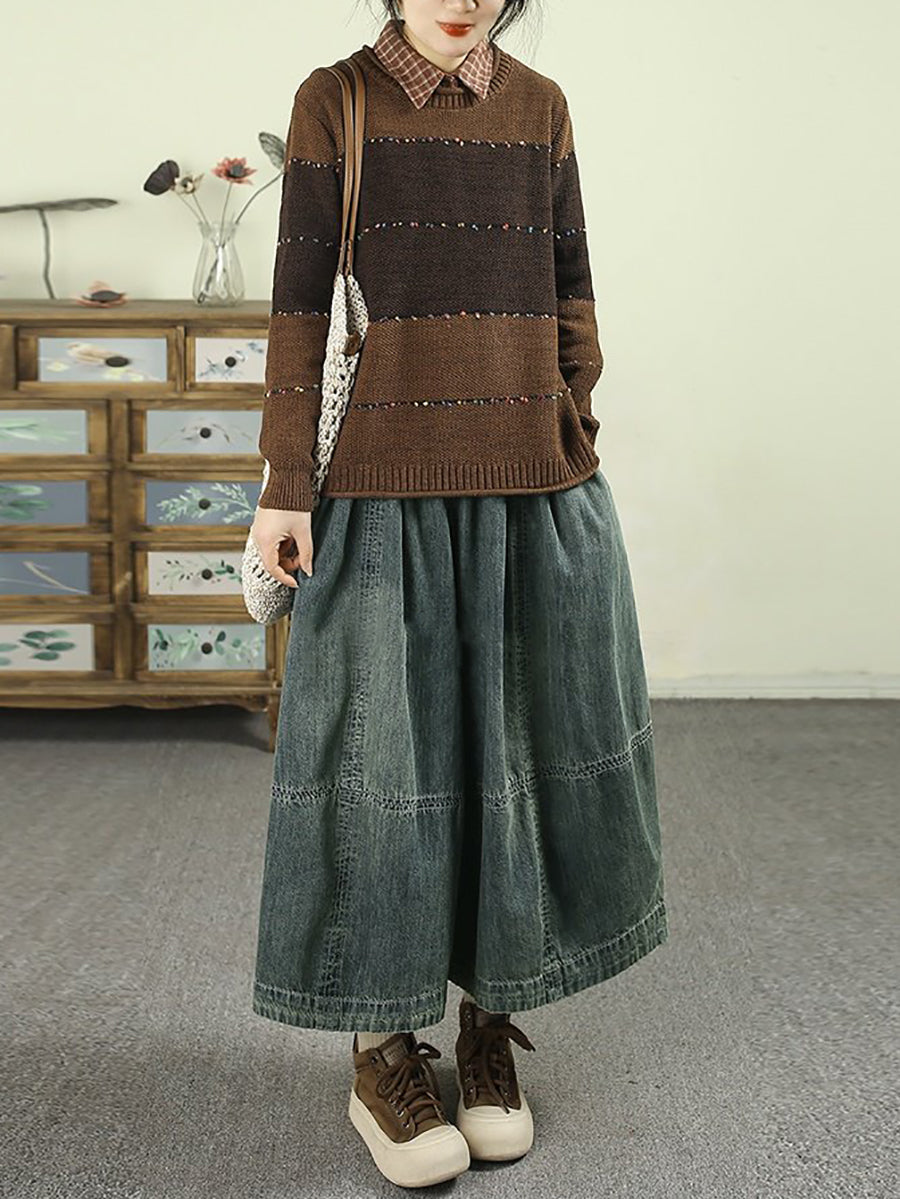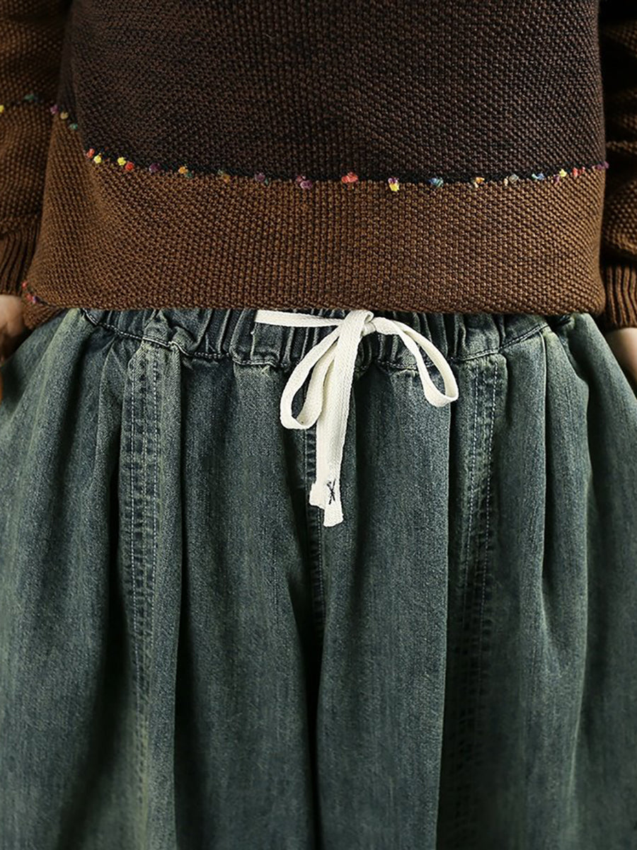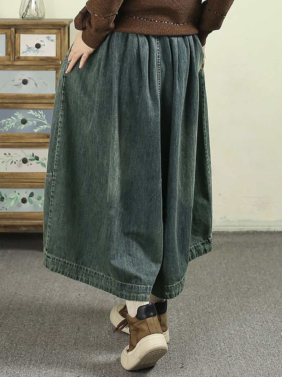 Kvinders forårsbukser med brede ben i denim med vintage-design