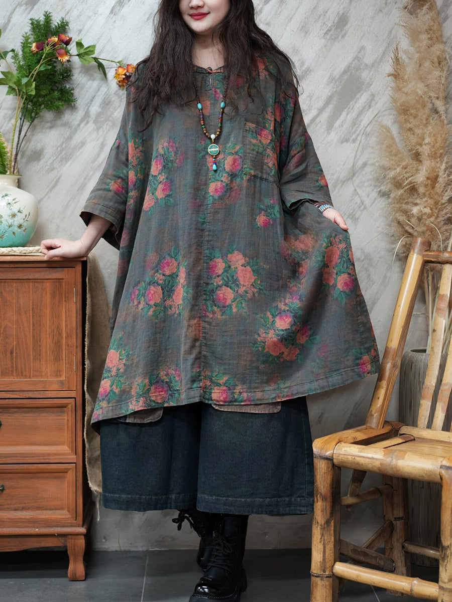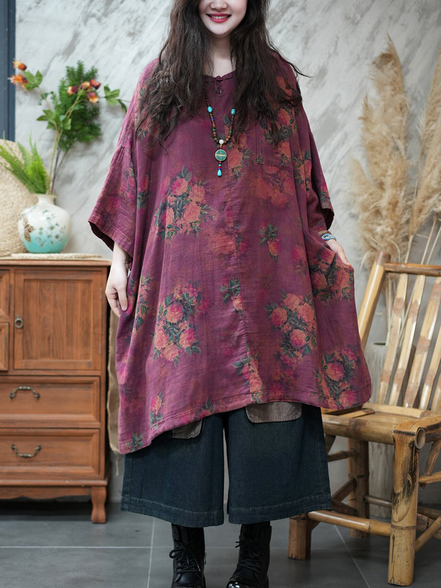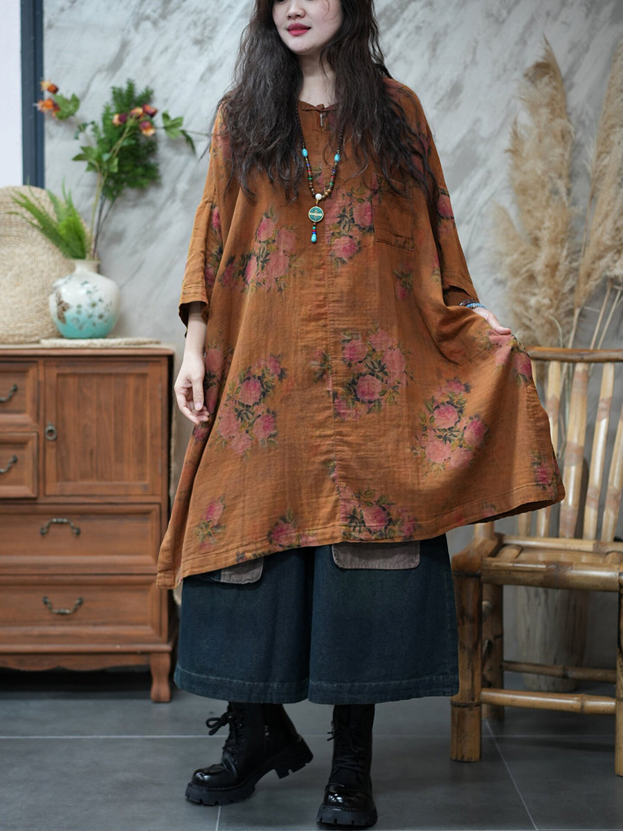Kvinder Sommer Vintage Blomster O-hals Lang T-shirt