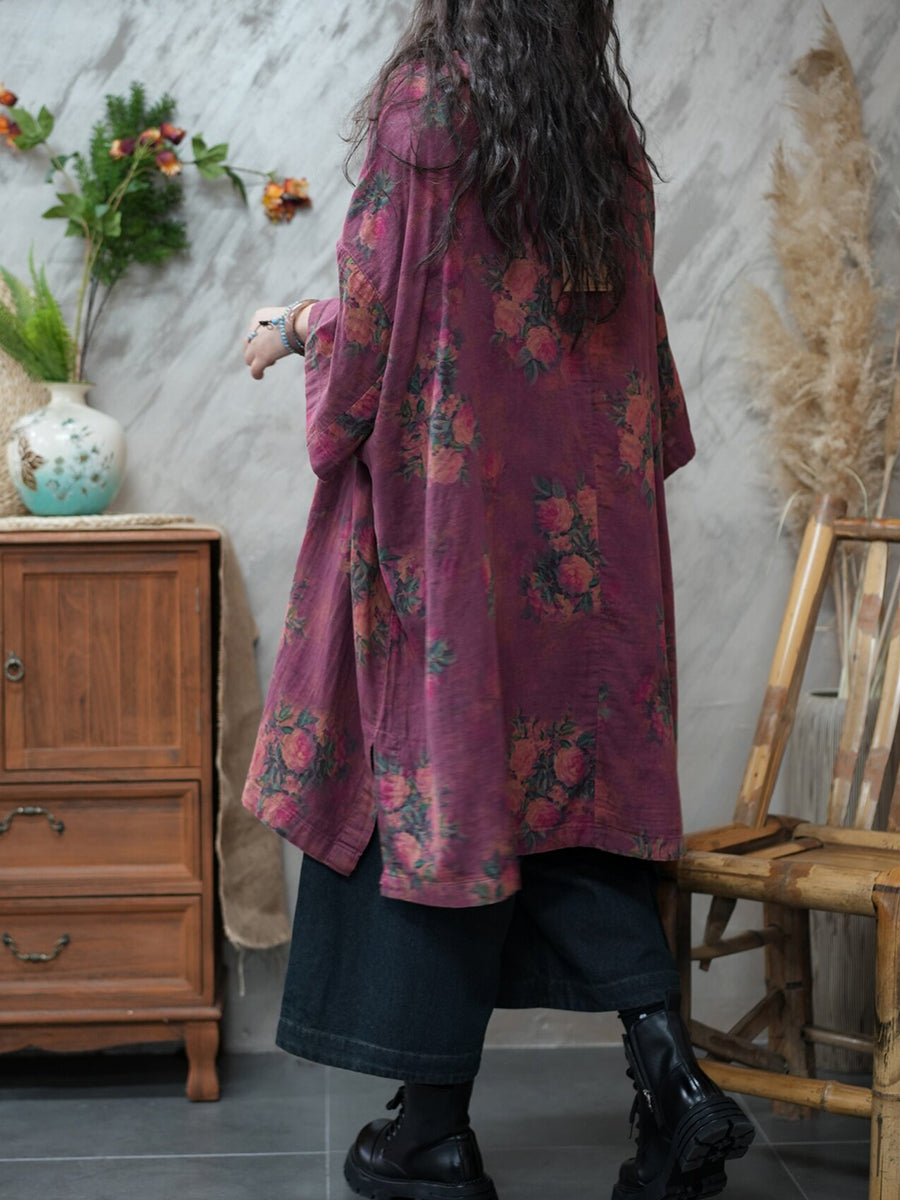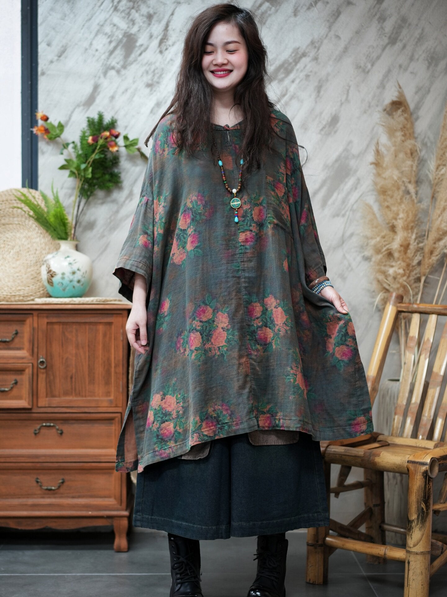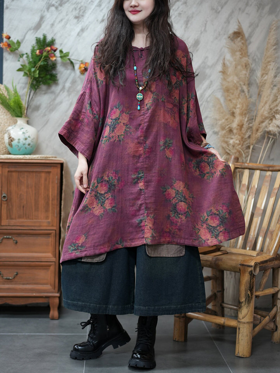 Kvinder Sommer Vintage Blomster O-hals Lang T-shirt